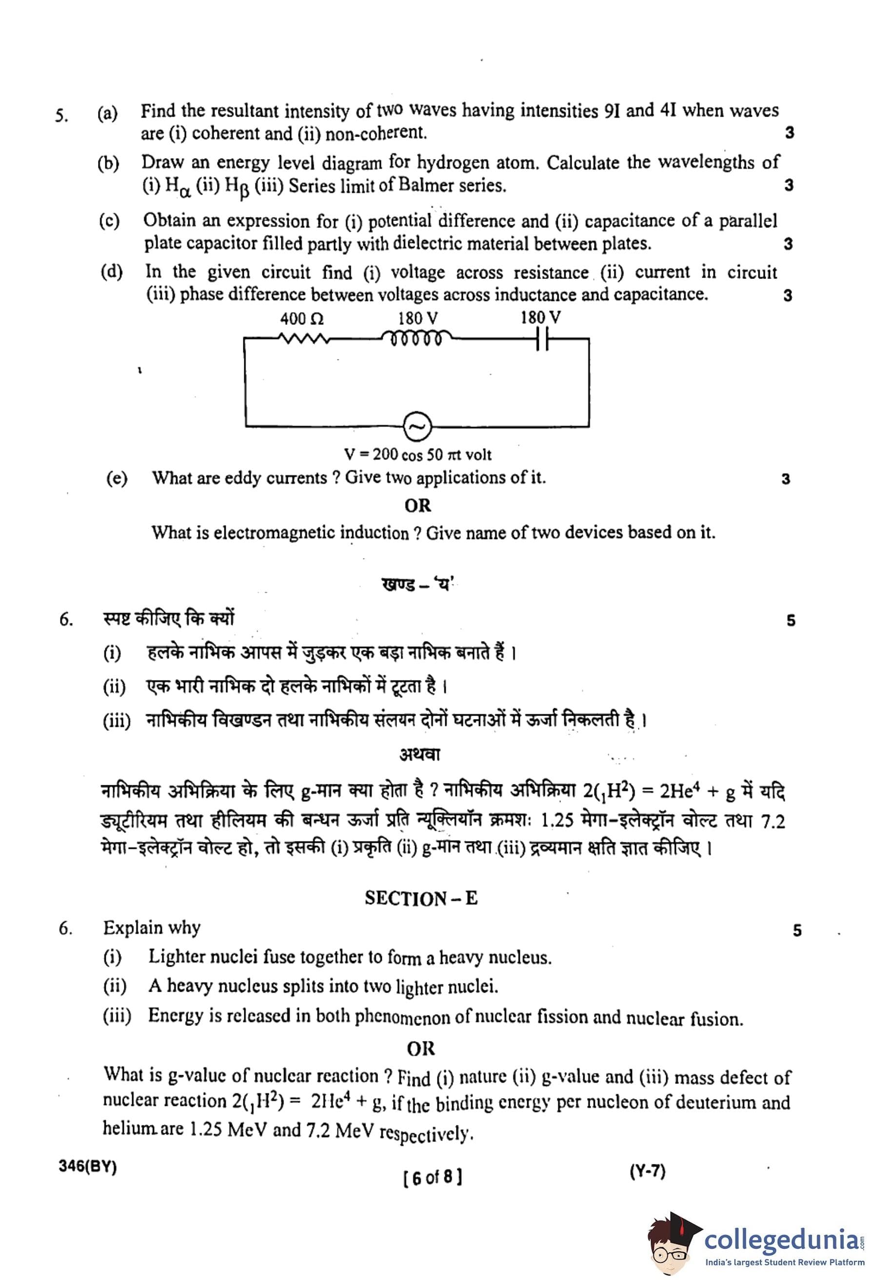 UP Board Class 12 Physics (Code 346 BY) Question Paper 2023 with Solutions PDF