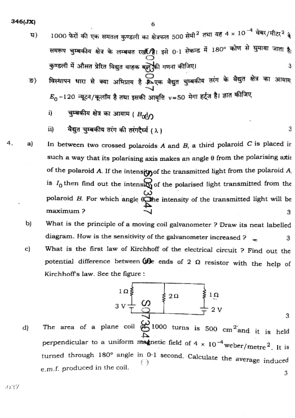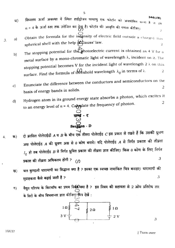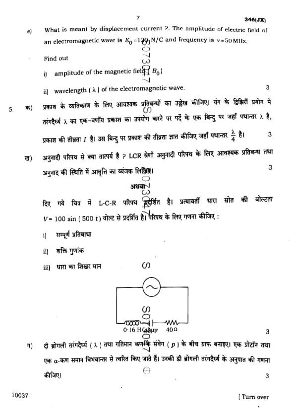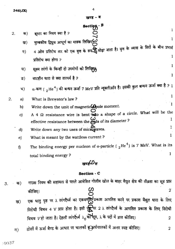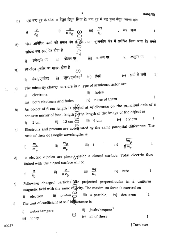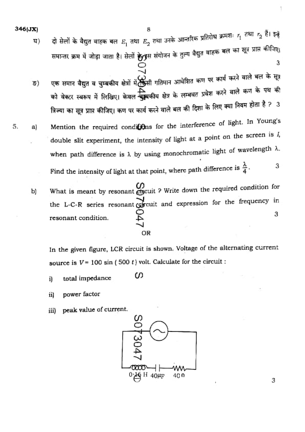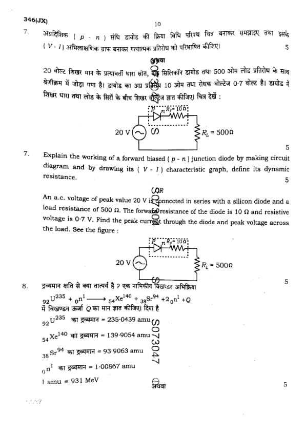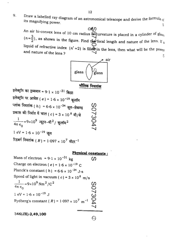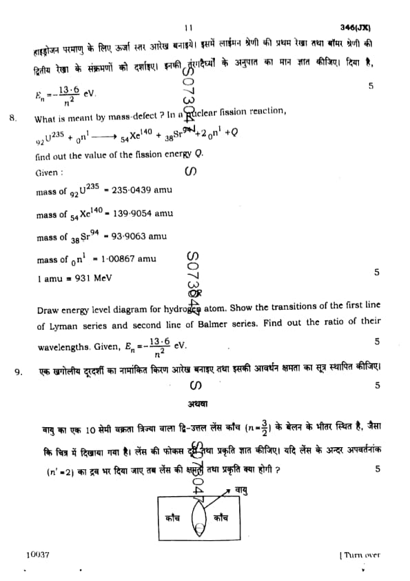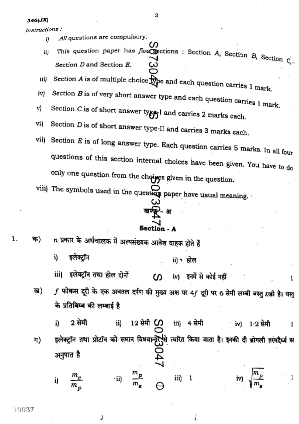 UP Board Class 12 Physics Question Paper 2025 (Code 346 JX) with Solutions