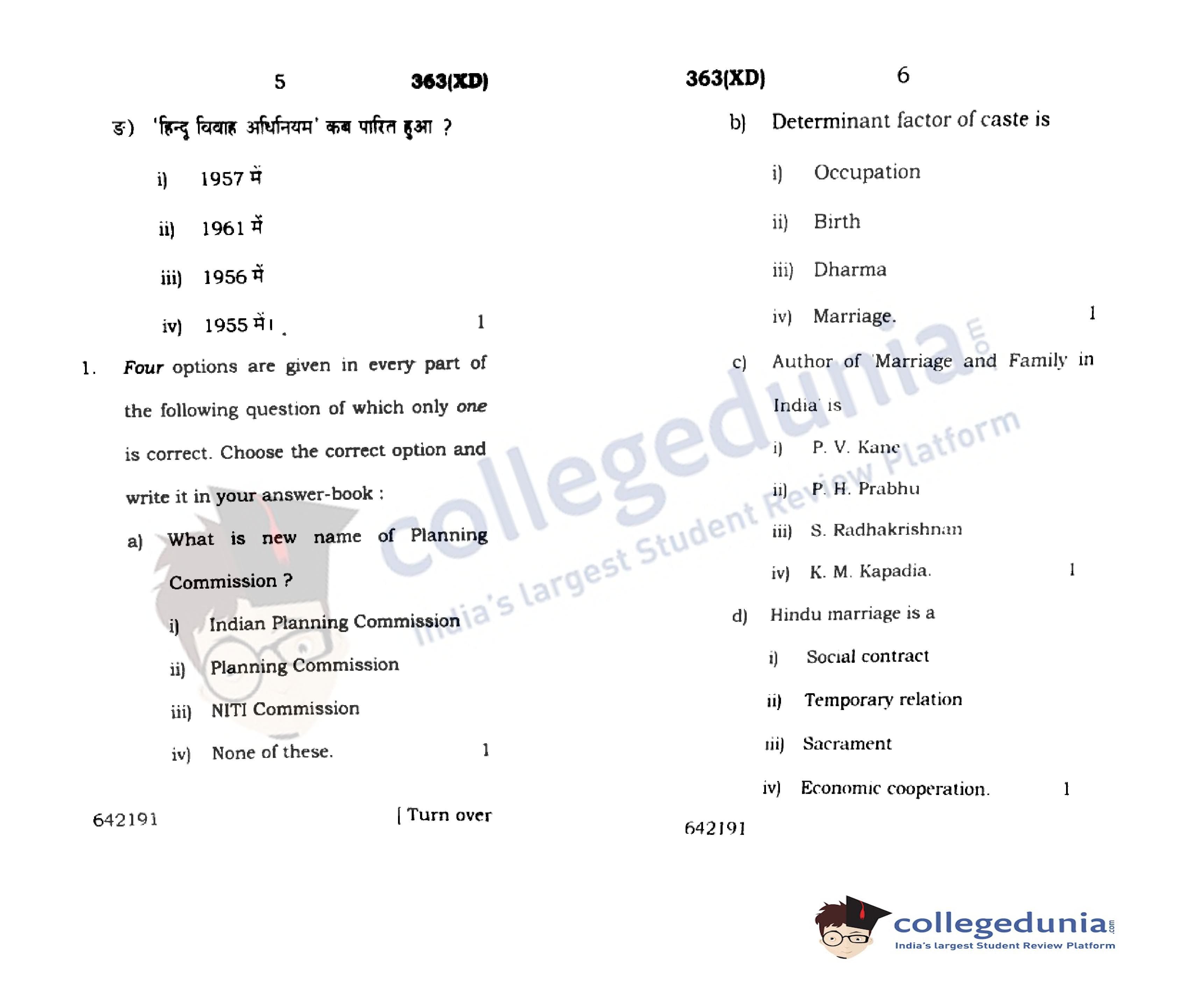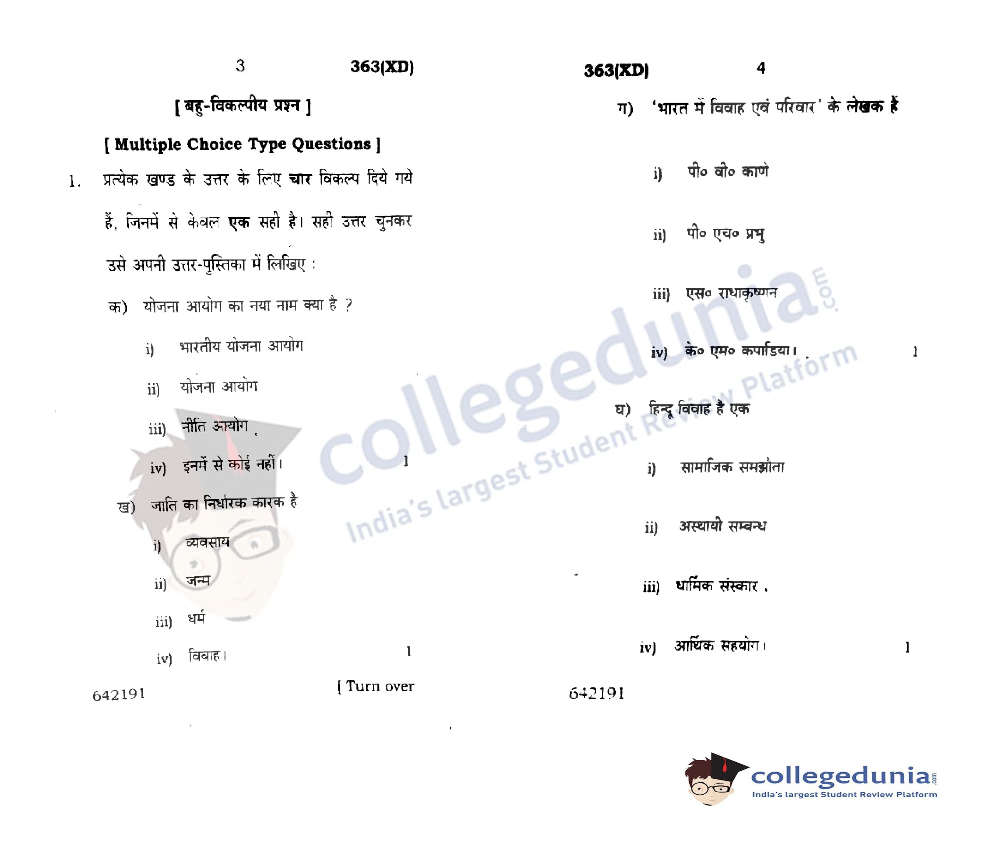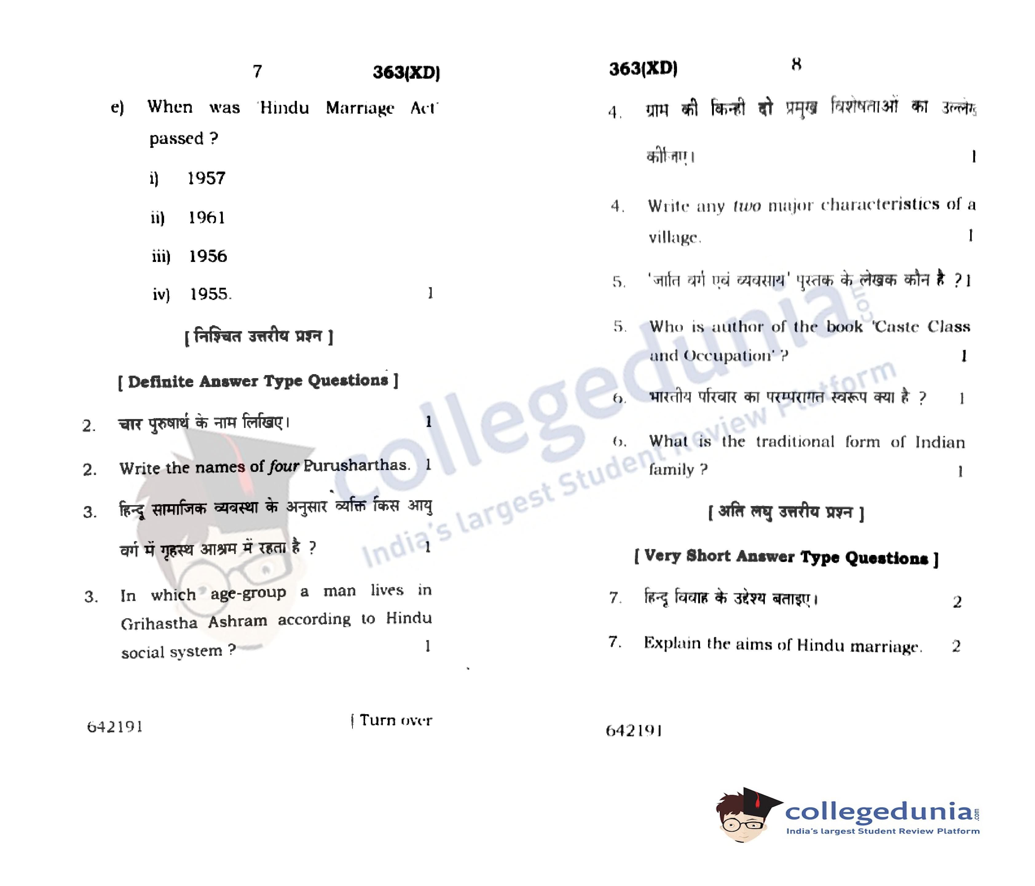 UP Board Class 12 Sociology-2 Question Paper 2016 with Answer Key Code 363(XD) is available for download. The exam was conducted by the Uttar Pradesh Madhyamik Shiksha Parishad (UPMSP) on March 15, 2016 in the Morning Session 7:30 AM to 10:45 AM. The medium of paper was English and Hindi. The question paper comprised a total of 17 questions.