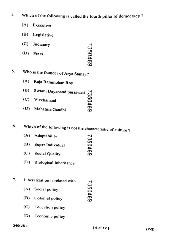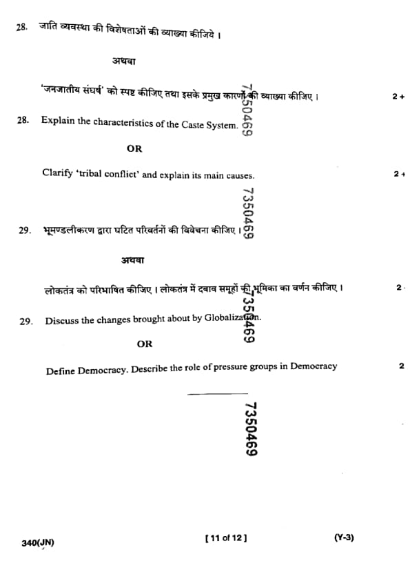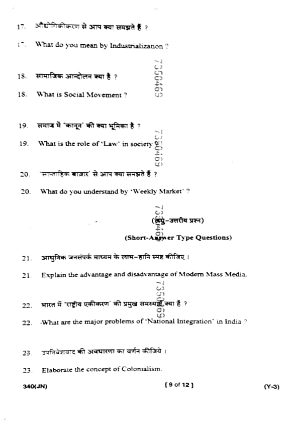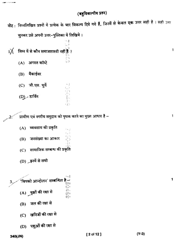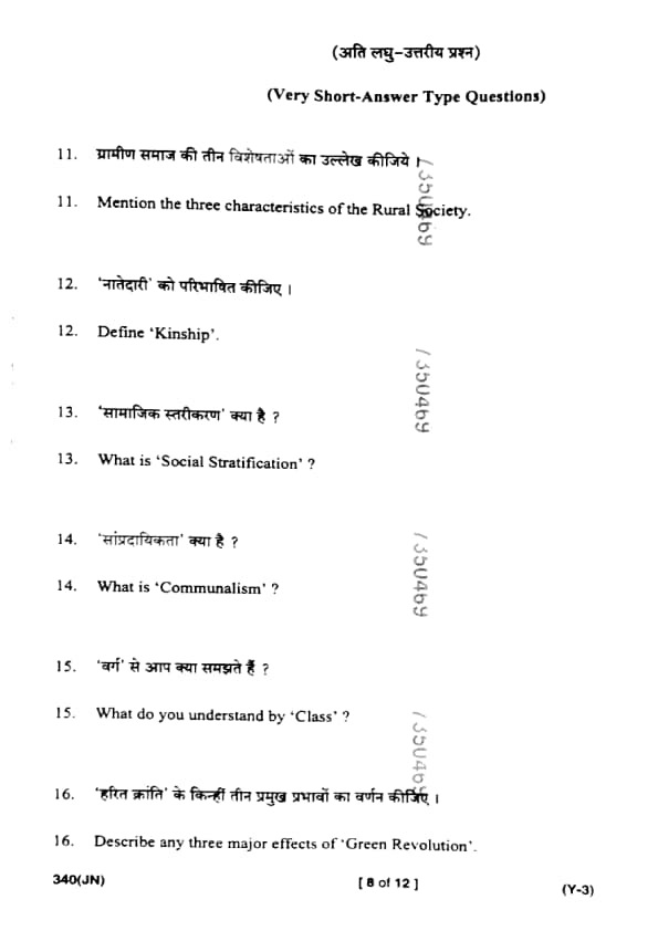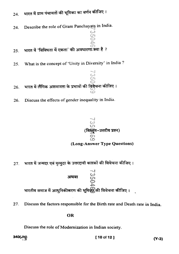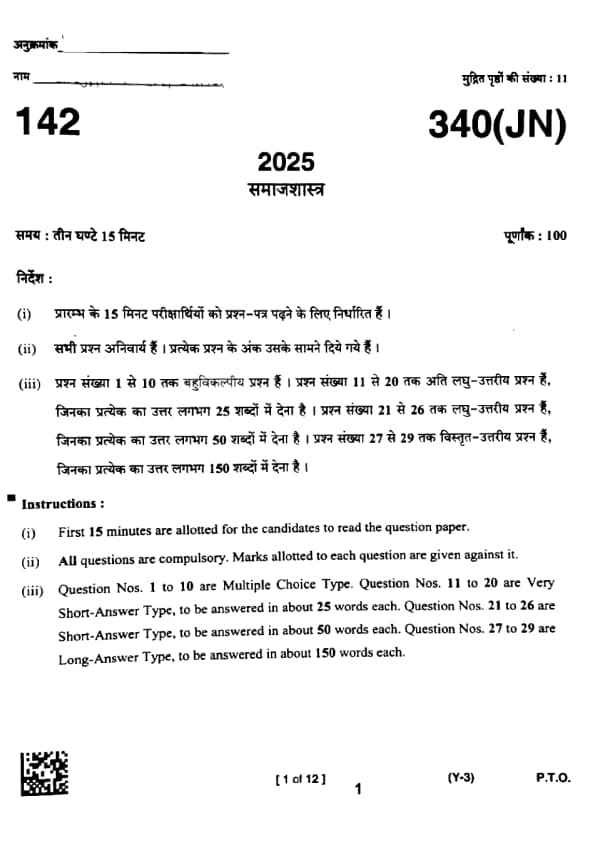 UP Board Class 12 Sociology Question Paper 2025 (Code 340 JN) with Solutions
