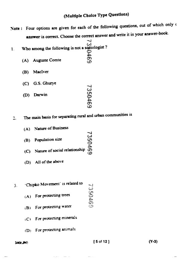 | UP Board Class Sociology Question Paper with Answer Key | Check Solutions |