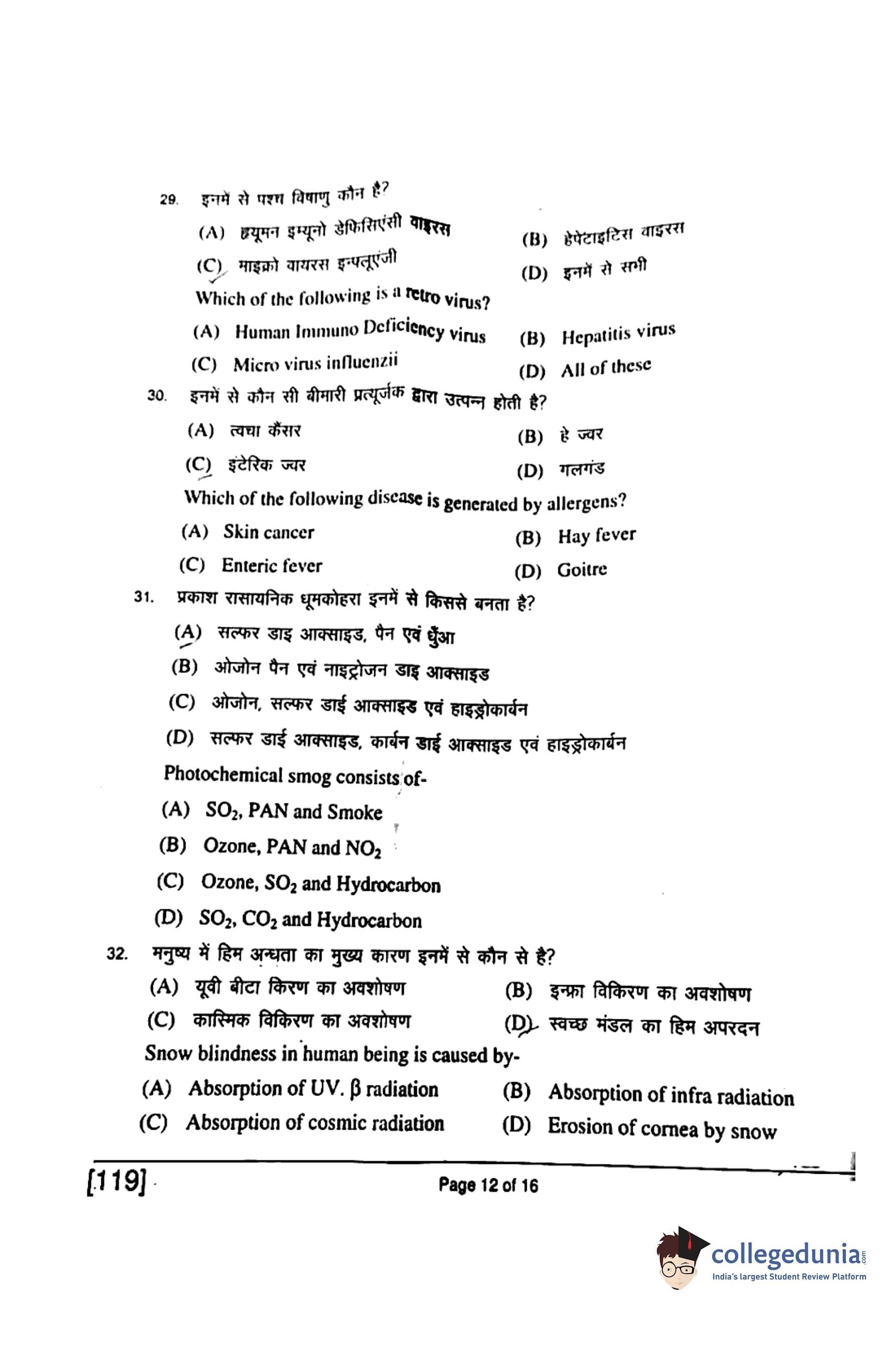 Bihar Board Class 12 Biology Code 119 Question Paper 2018 with Answer Key (February 6 )