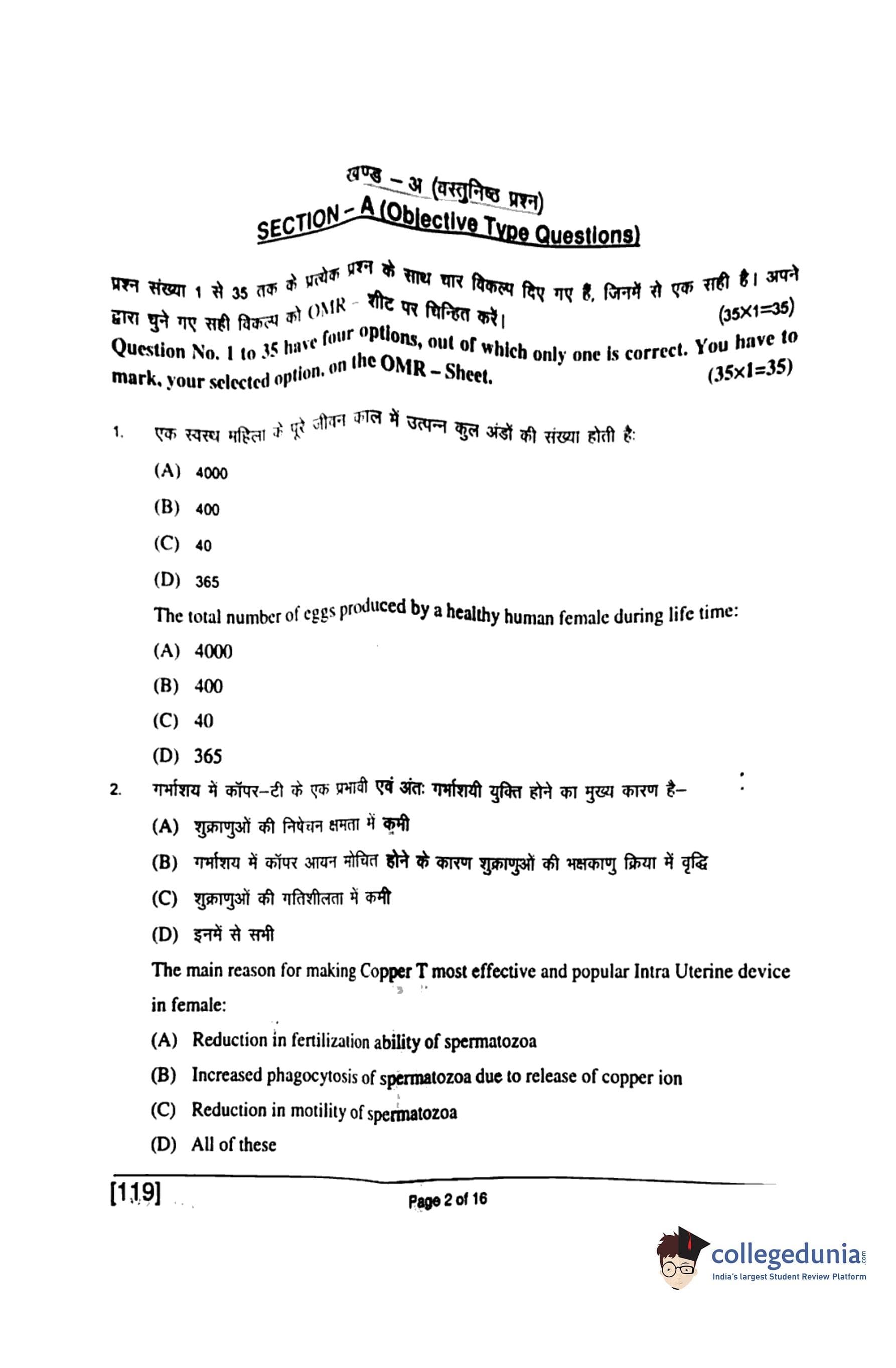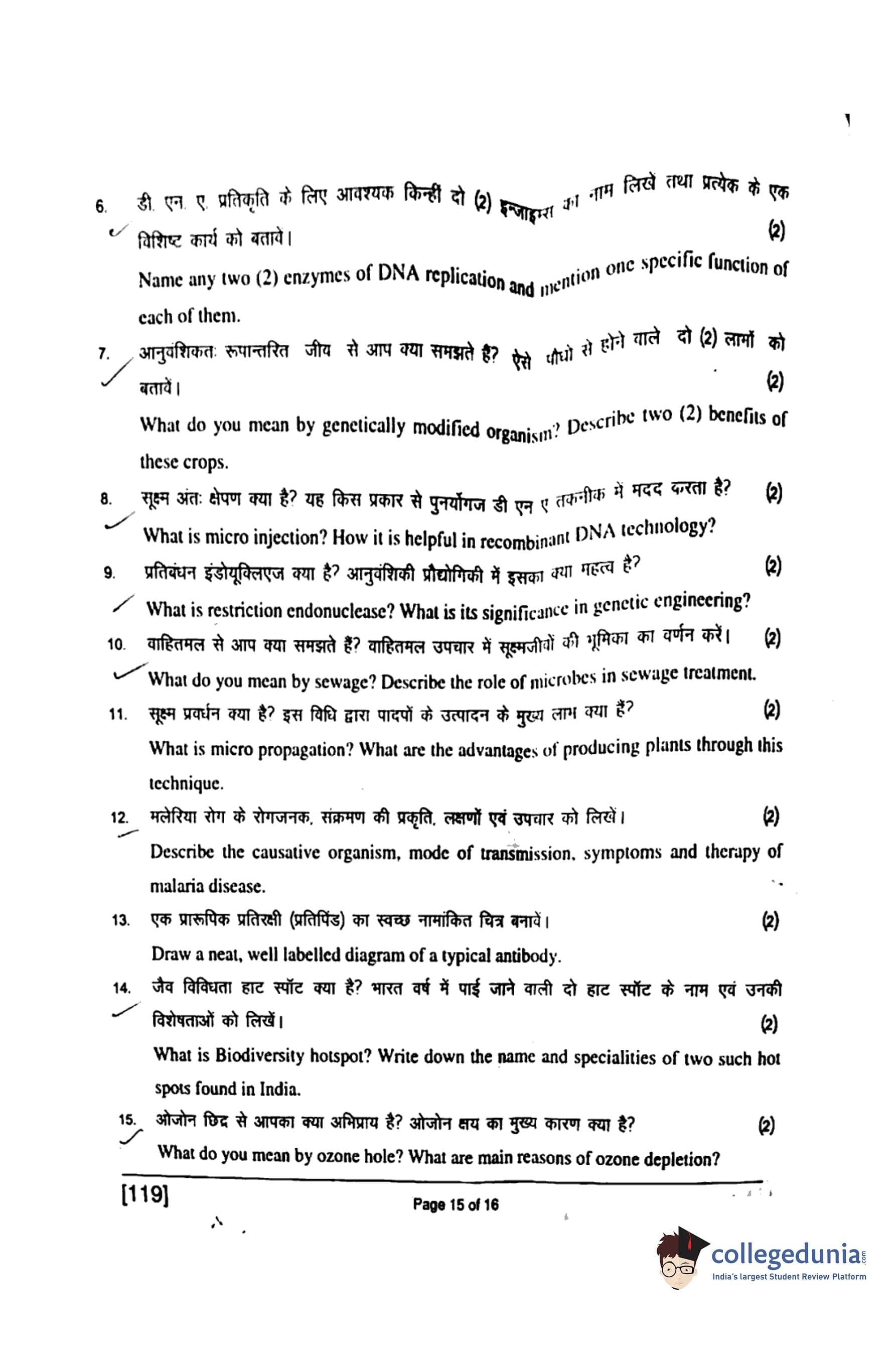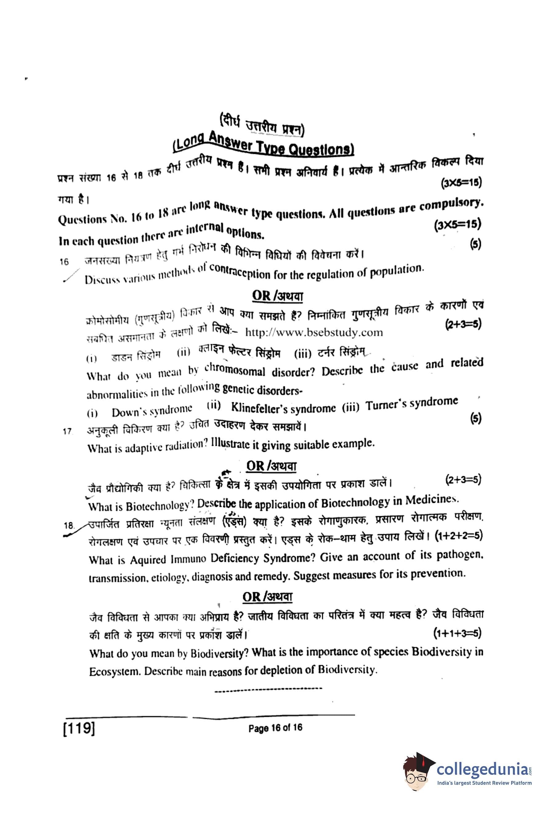 Bihar Board Class 12 Biology Question Paper 2018 with Answer Key Code 119 is available for download. The exam was conducted by the BSEB on February 6 in the Morning Session 9:45 AM to 1 PM. The medium of paper was English and Hindi. The question paper comprised a total of 53 questions divided among 2 sections.