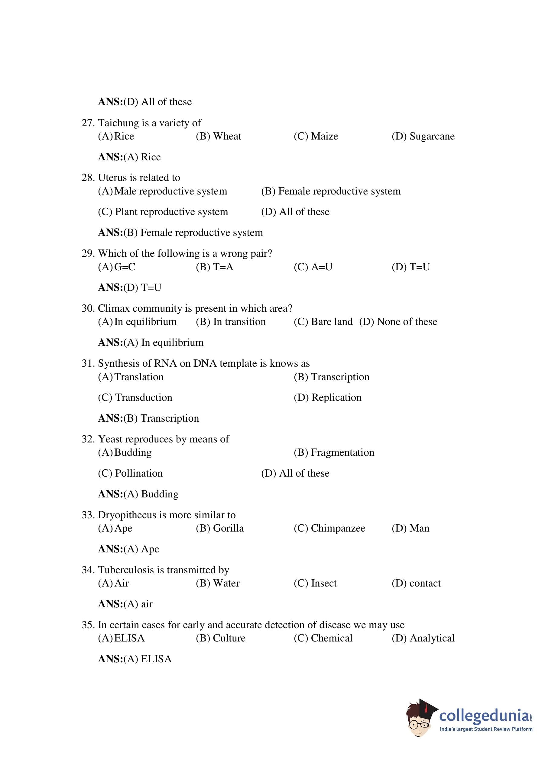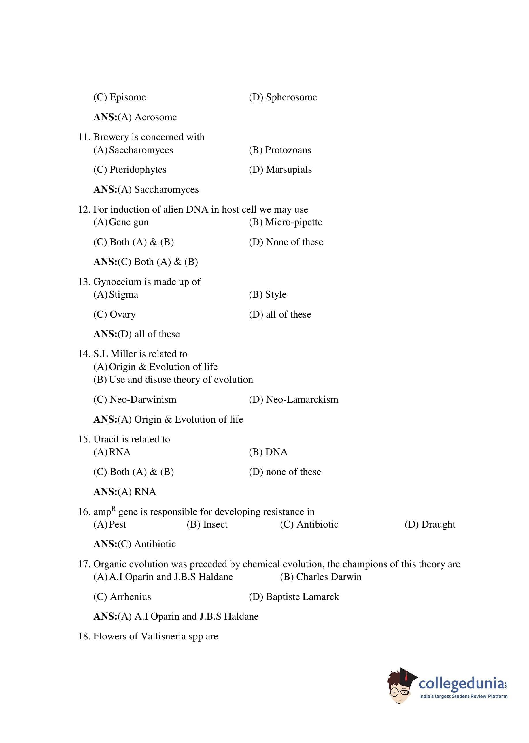 Bihar Board Class 12 Biology Question Paper 2019 with Answer Key (February 6 )