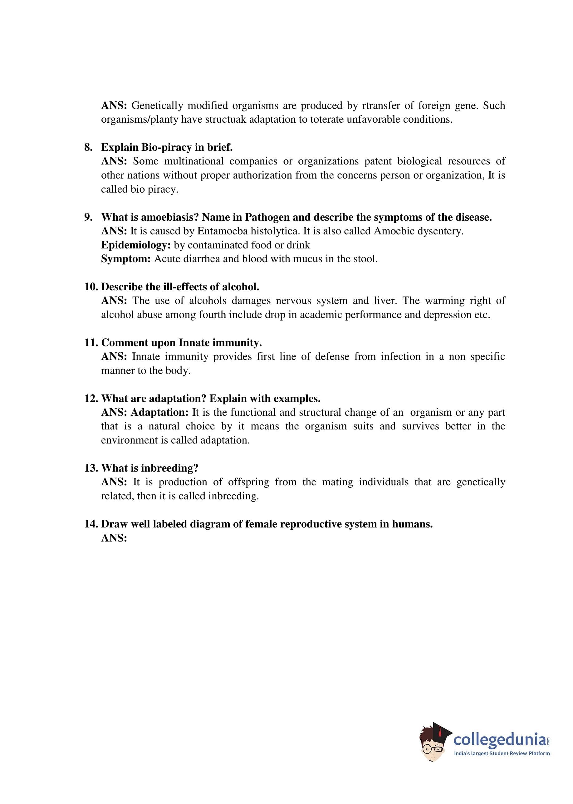 | Bihar Board Class 12 Biology Question Paper 2019 PDF | Bihar Board Class 12 Biology Answer Key 2019 PDF |