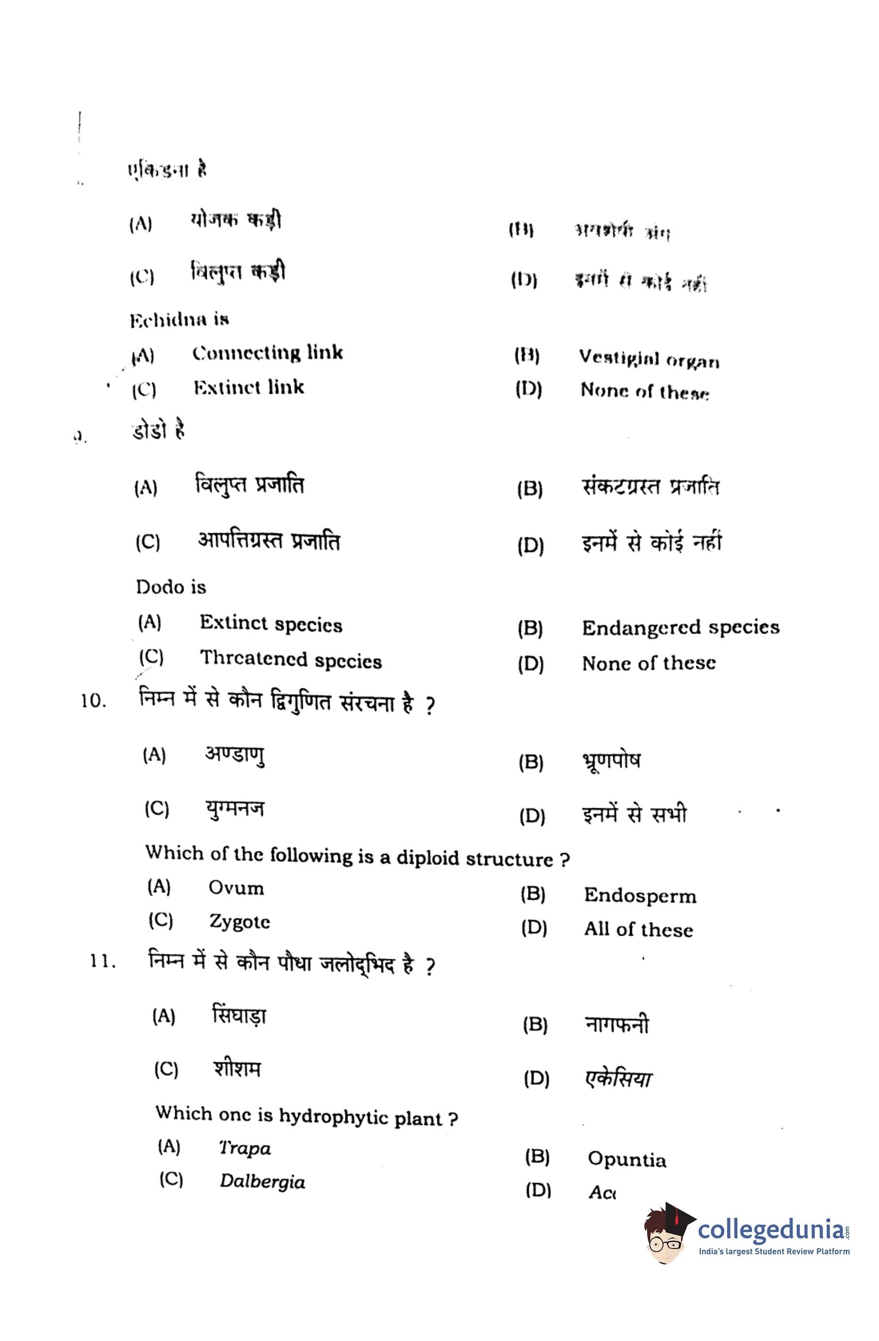 Bihar Board Class 12 Biology Code 119-G Question Paper 2021 with Answer Key (February 6 )