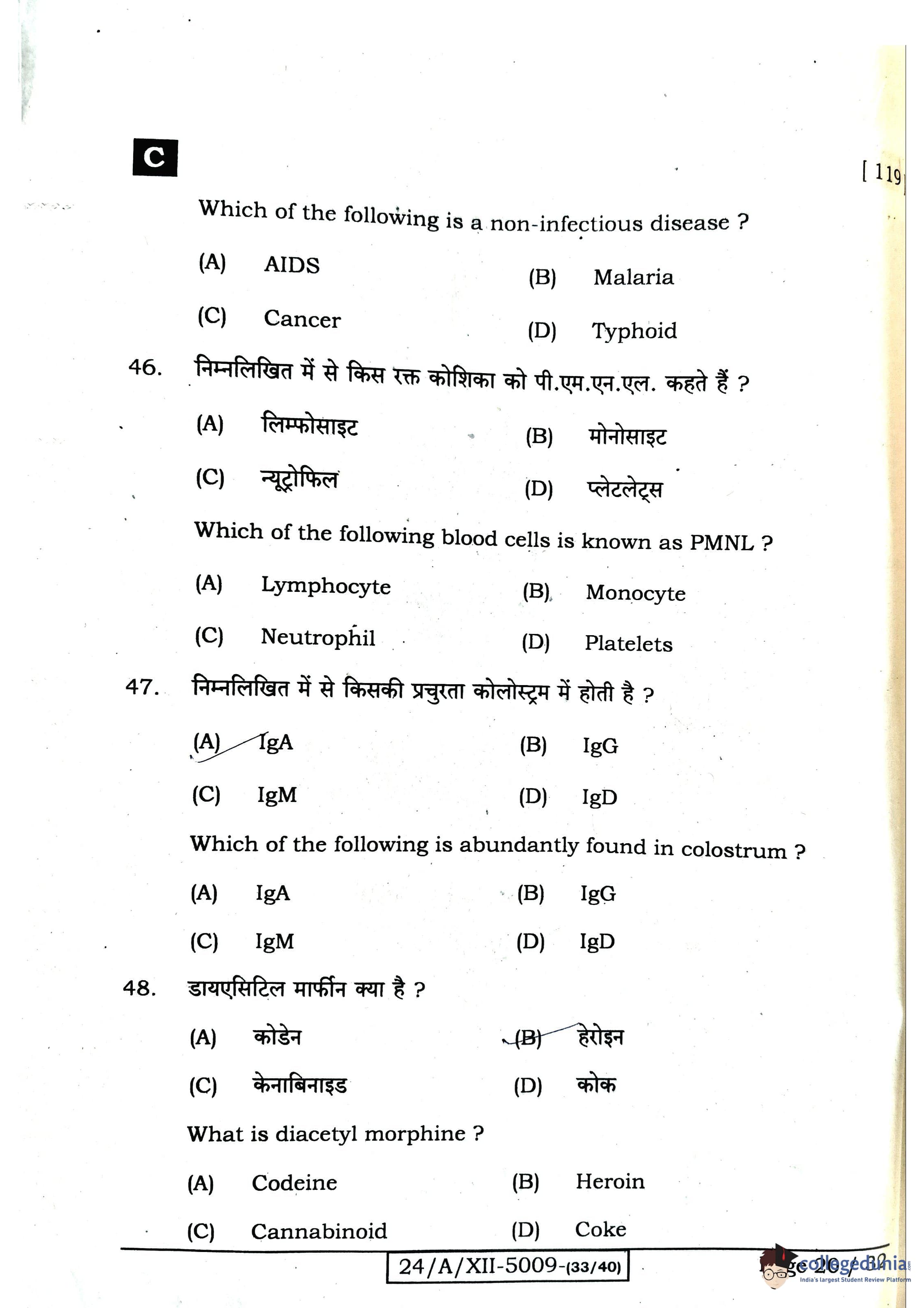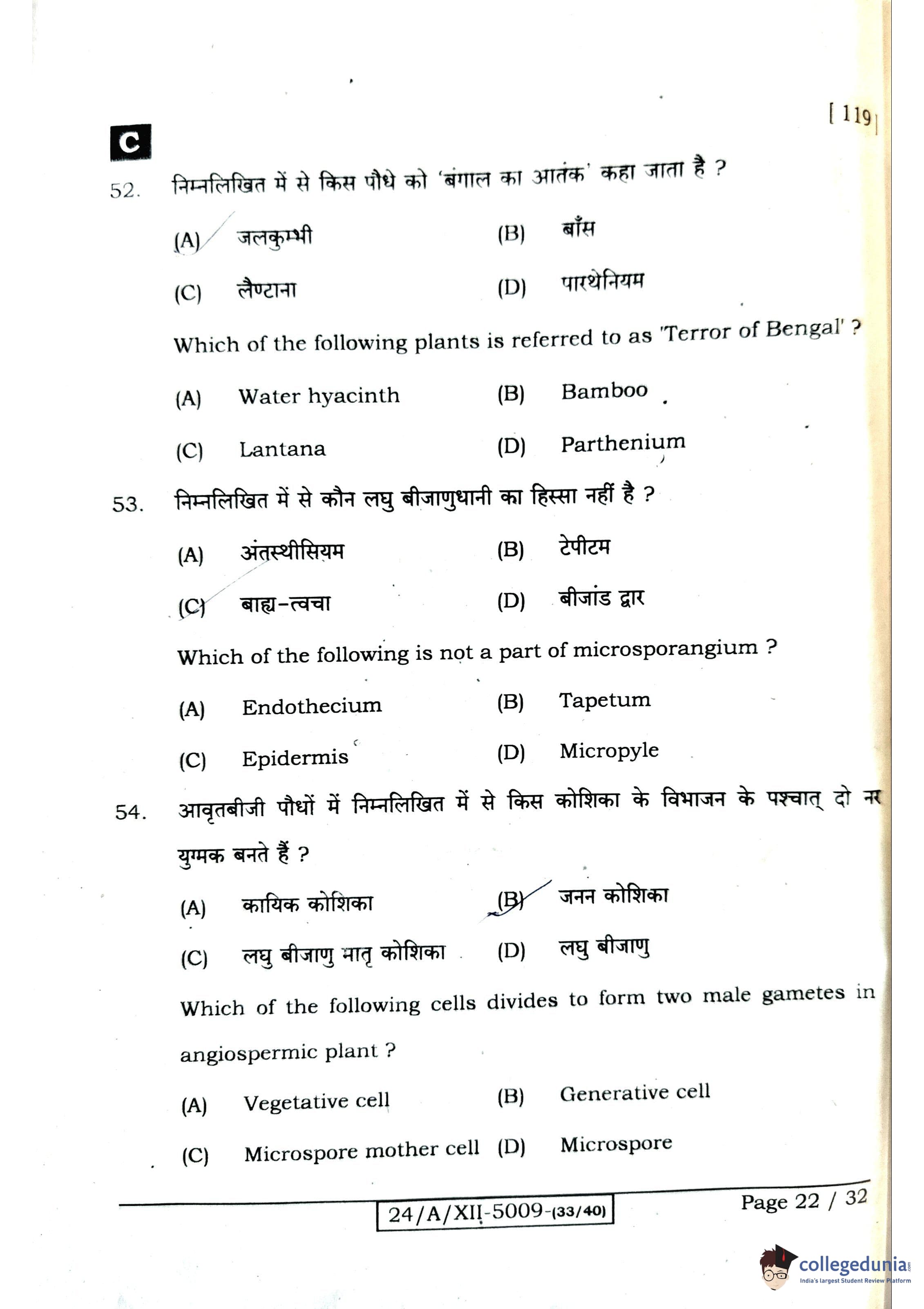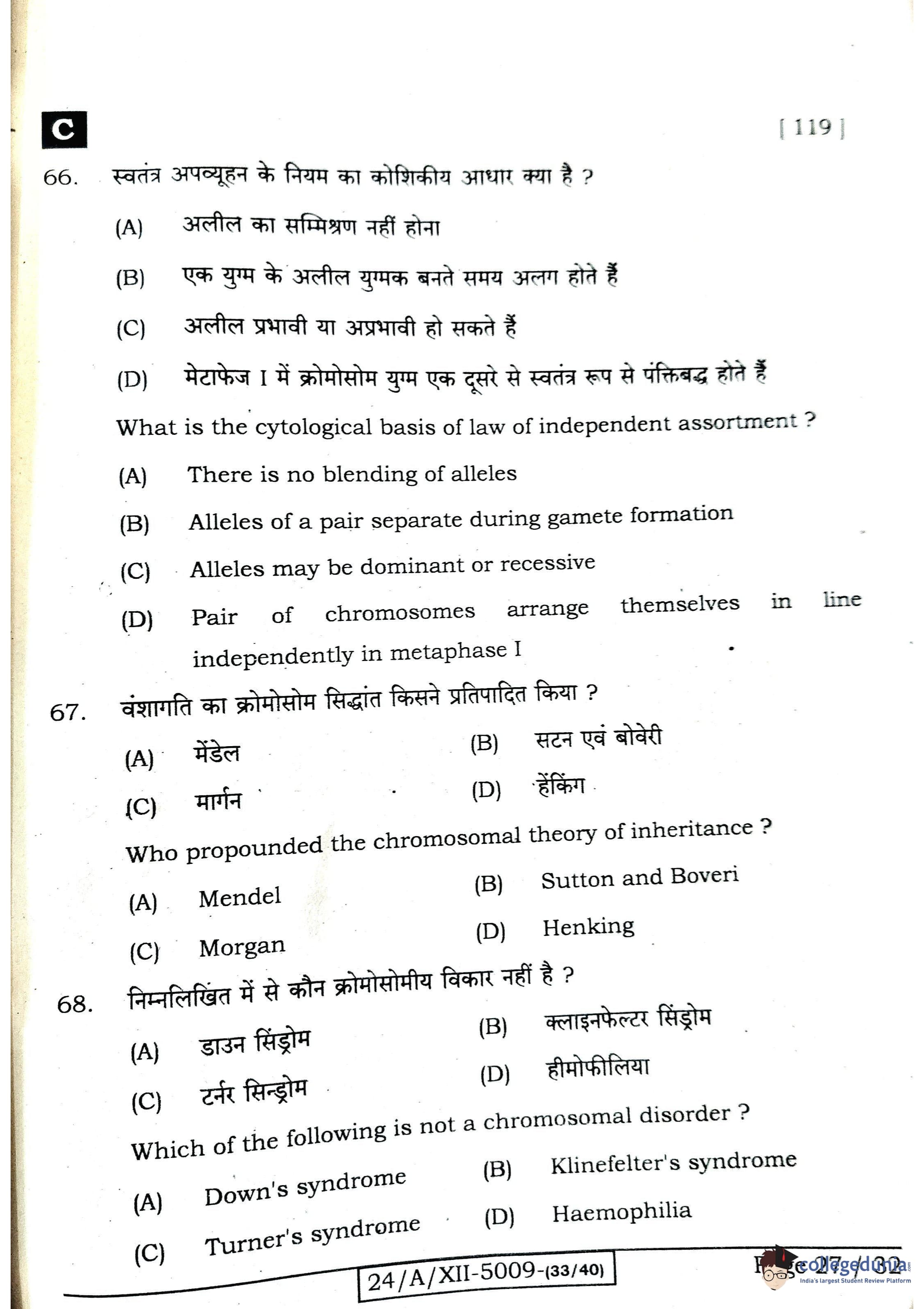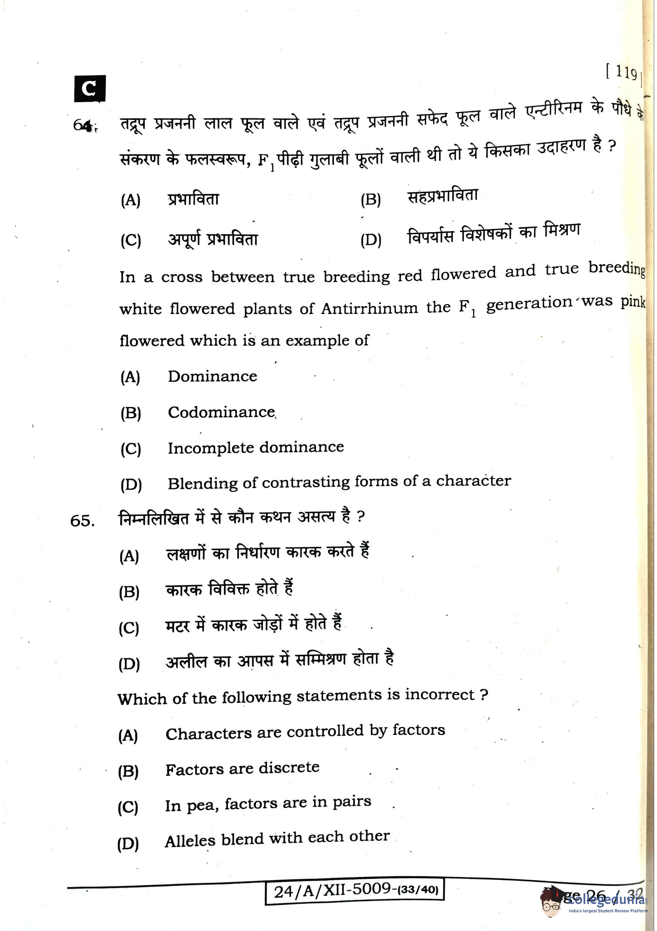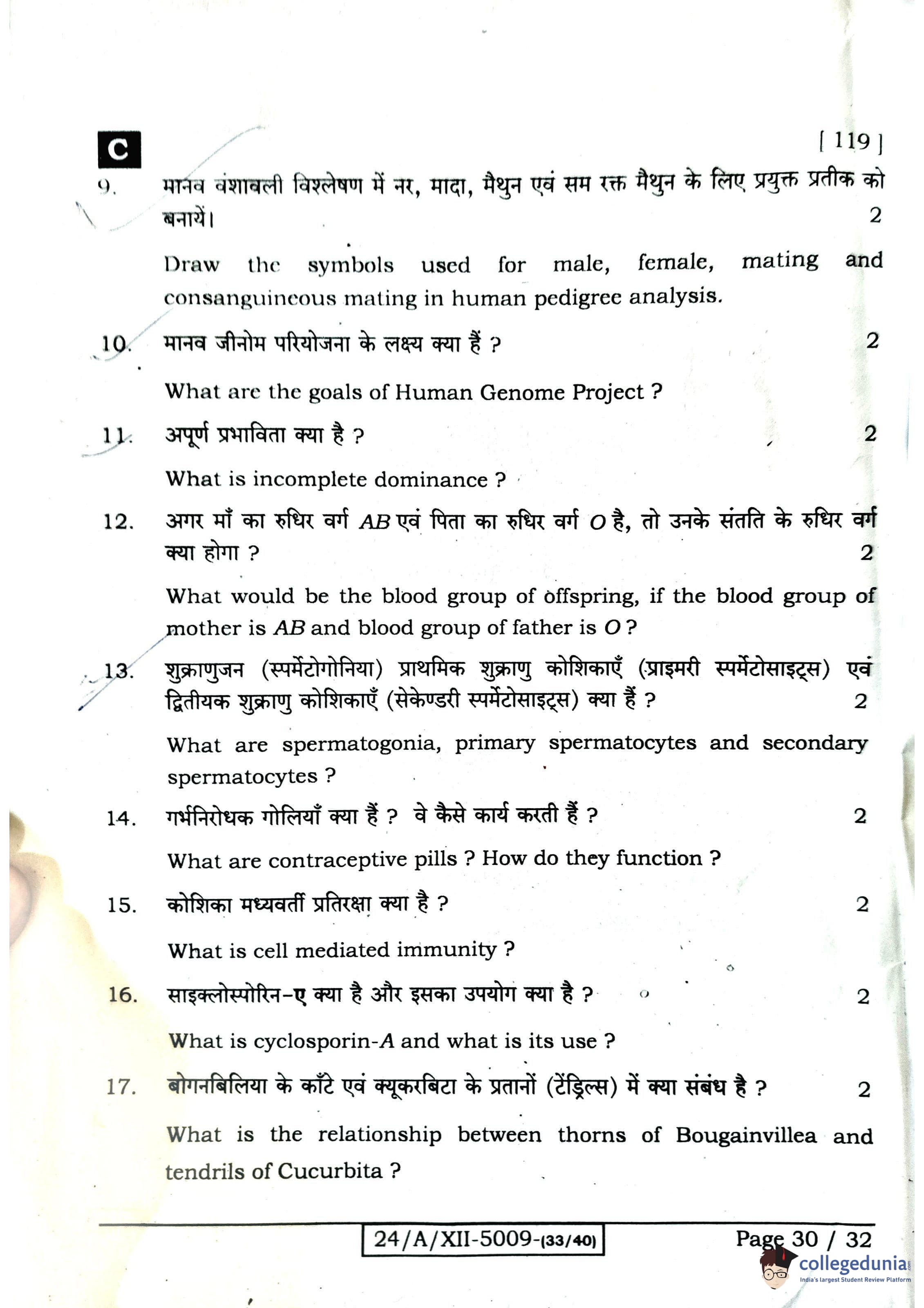 Bihar Board Class 12 Biology Question Paper 2024 with Answer Key