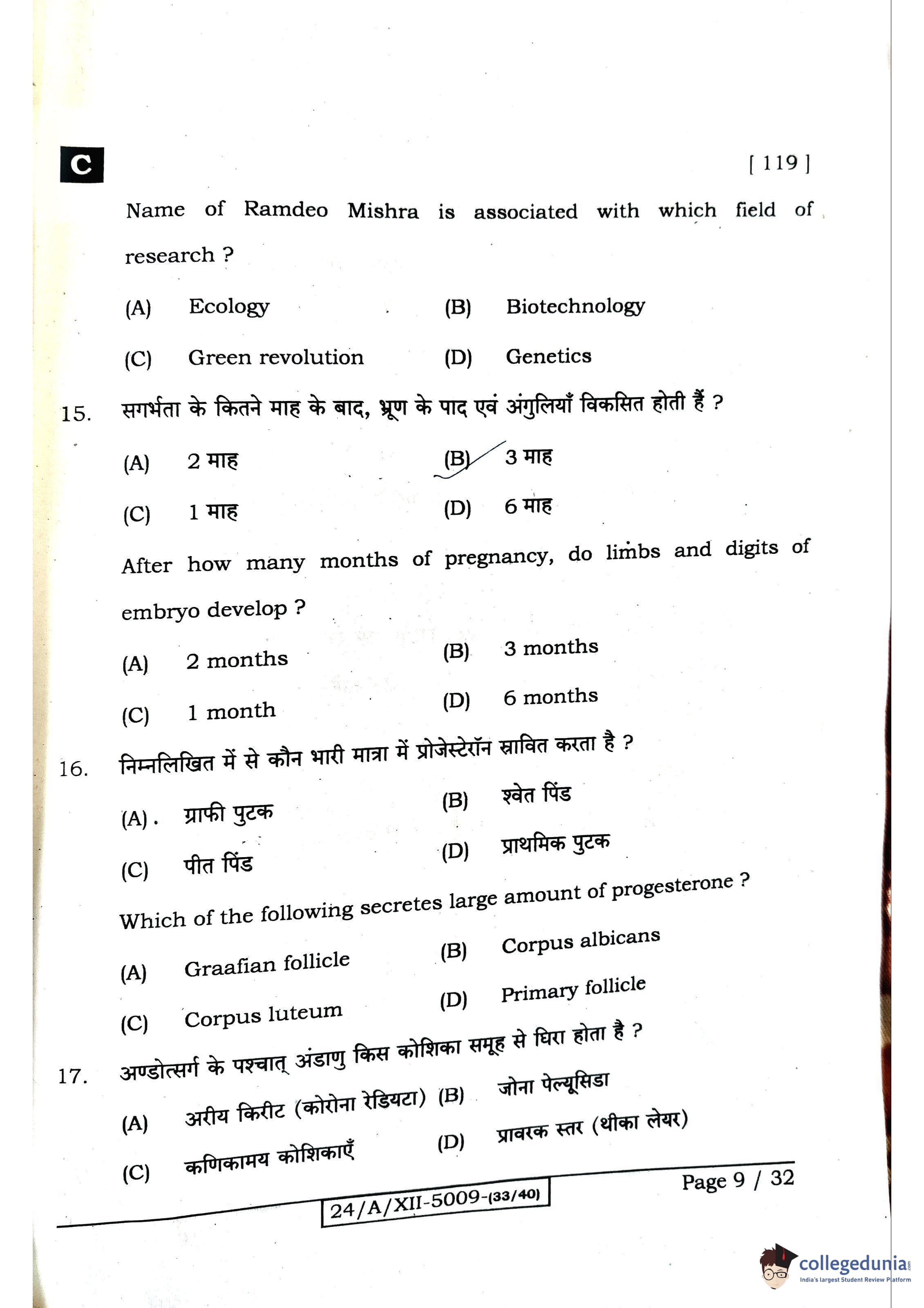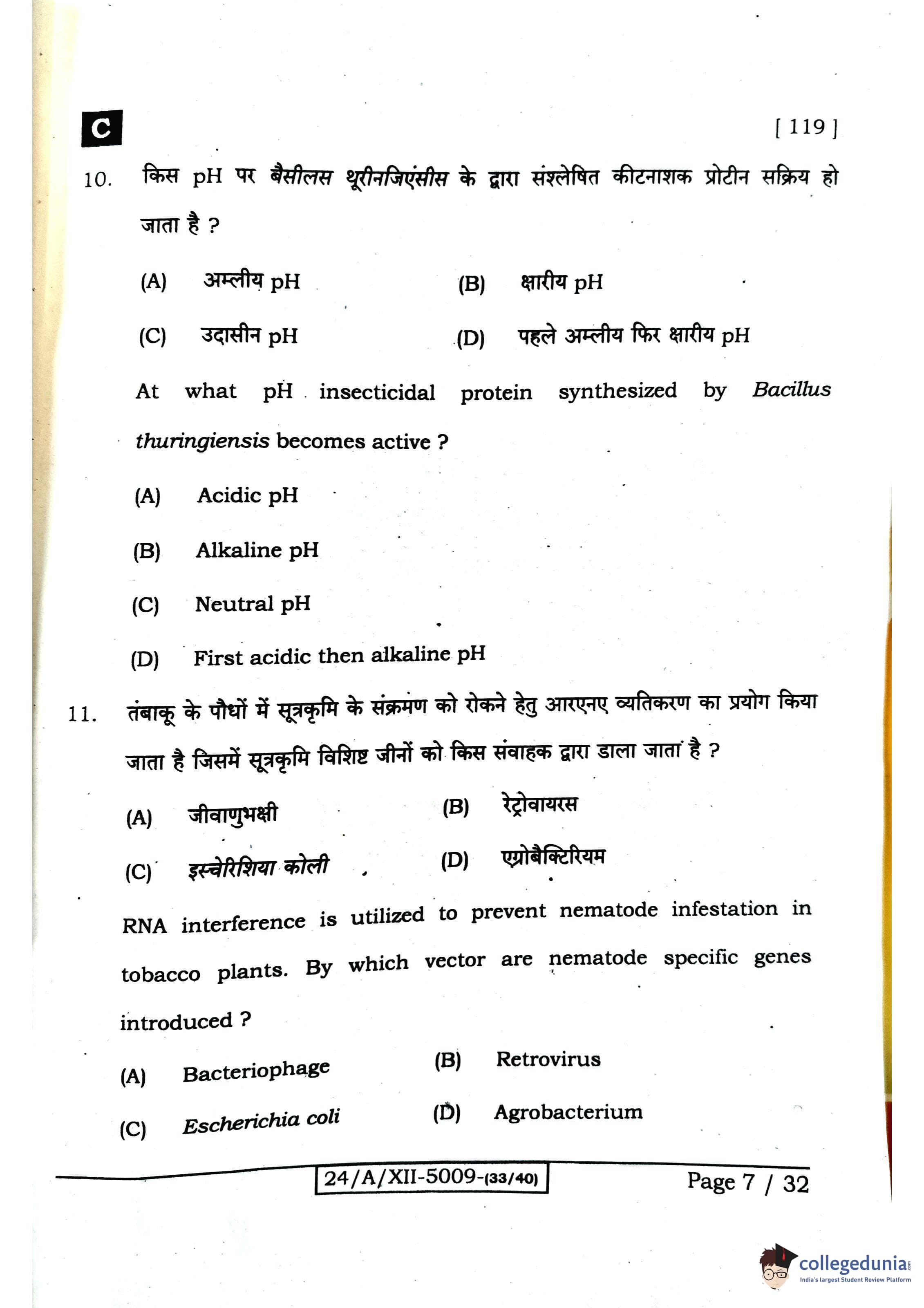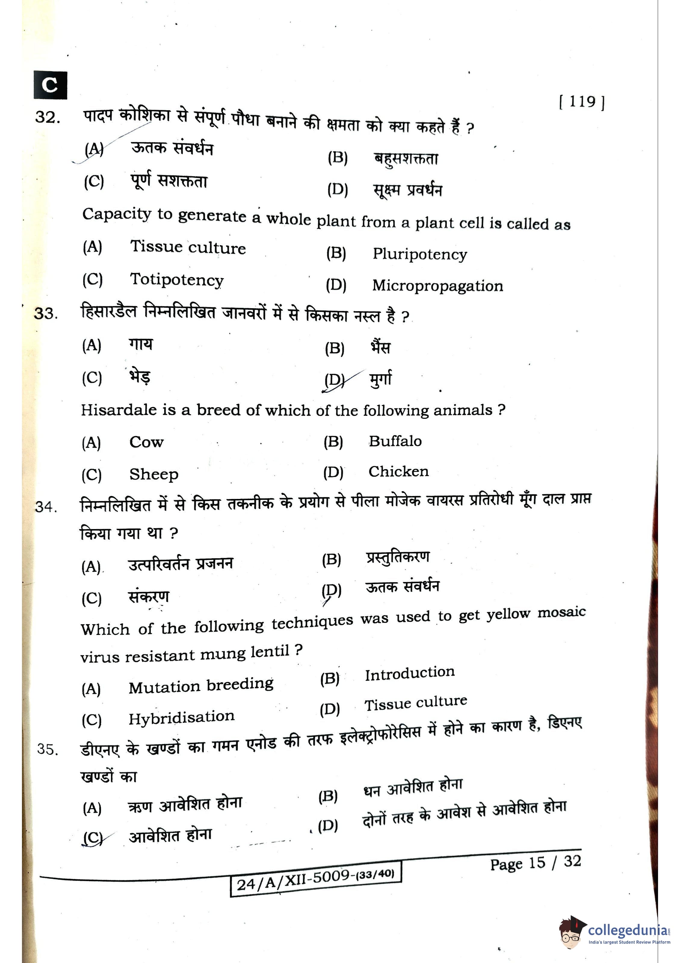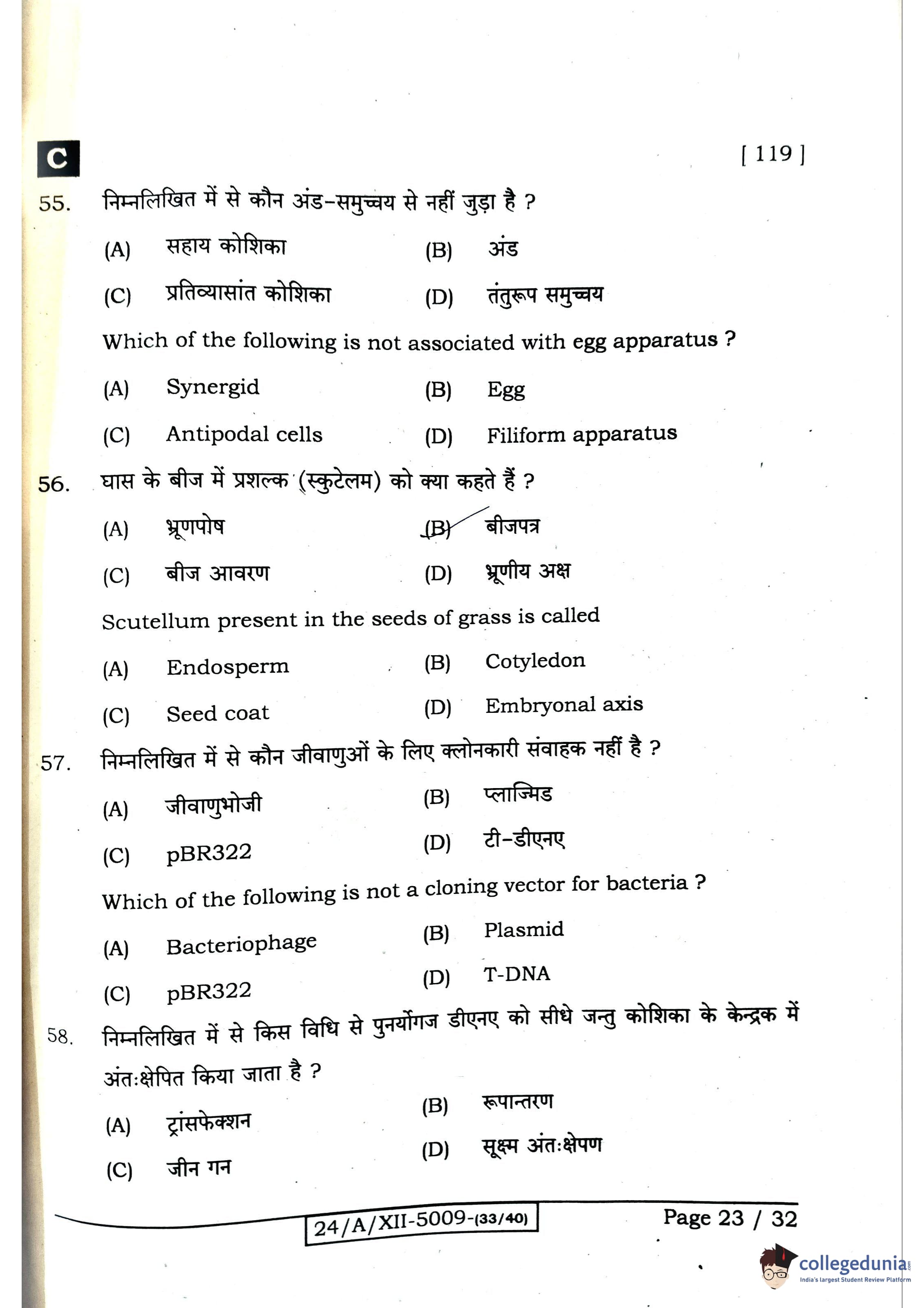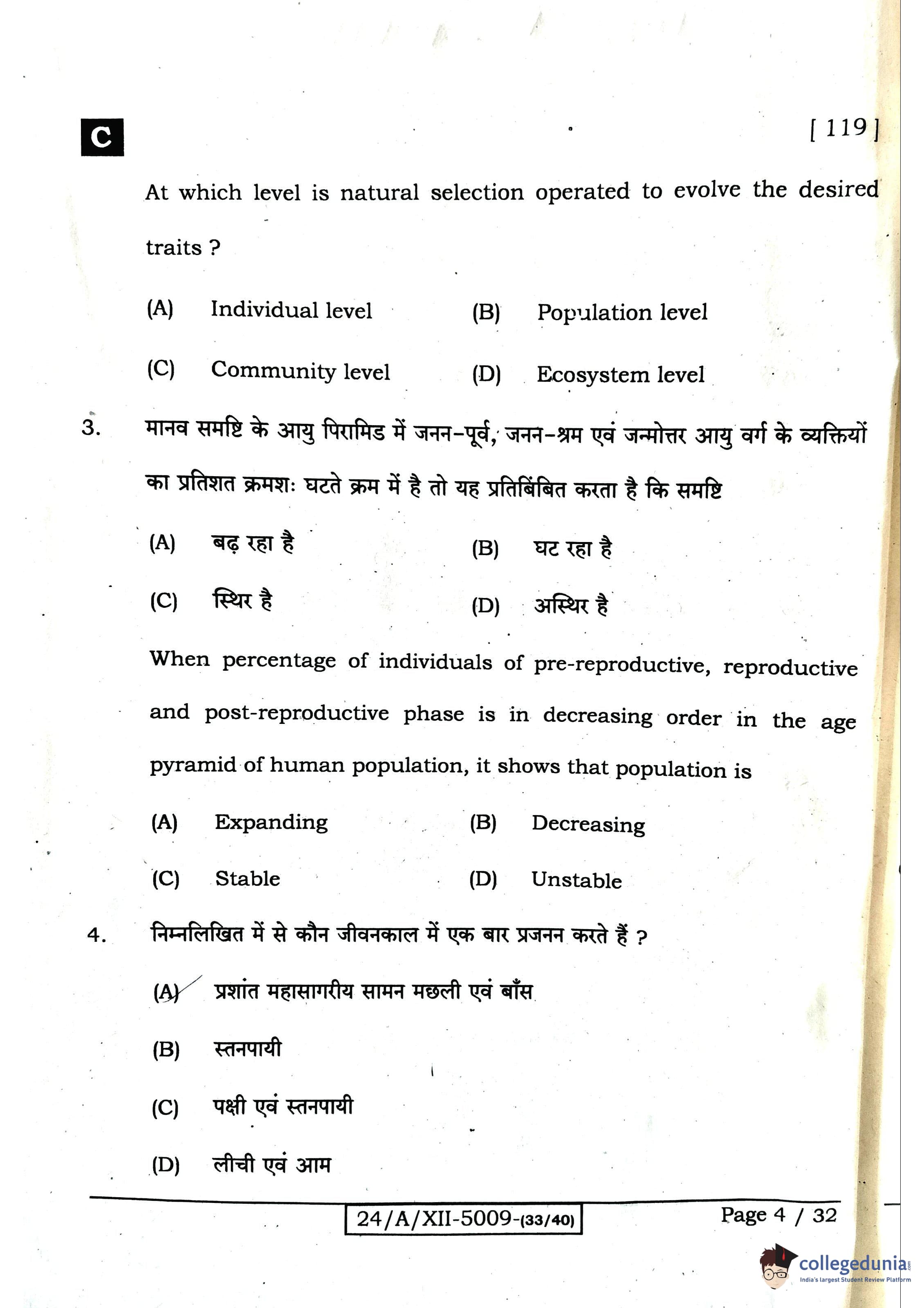 Bihar Board Class 12 Biology Question Paper 2024 with Answer Key
