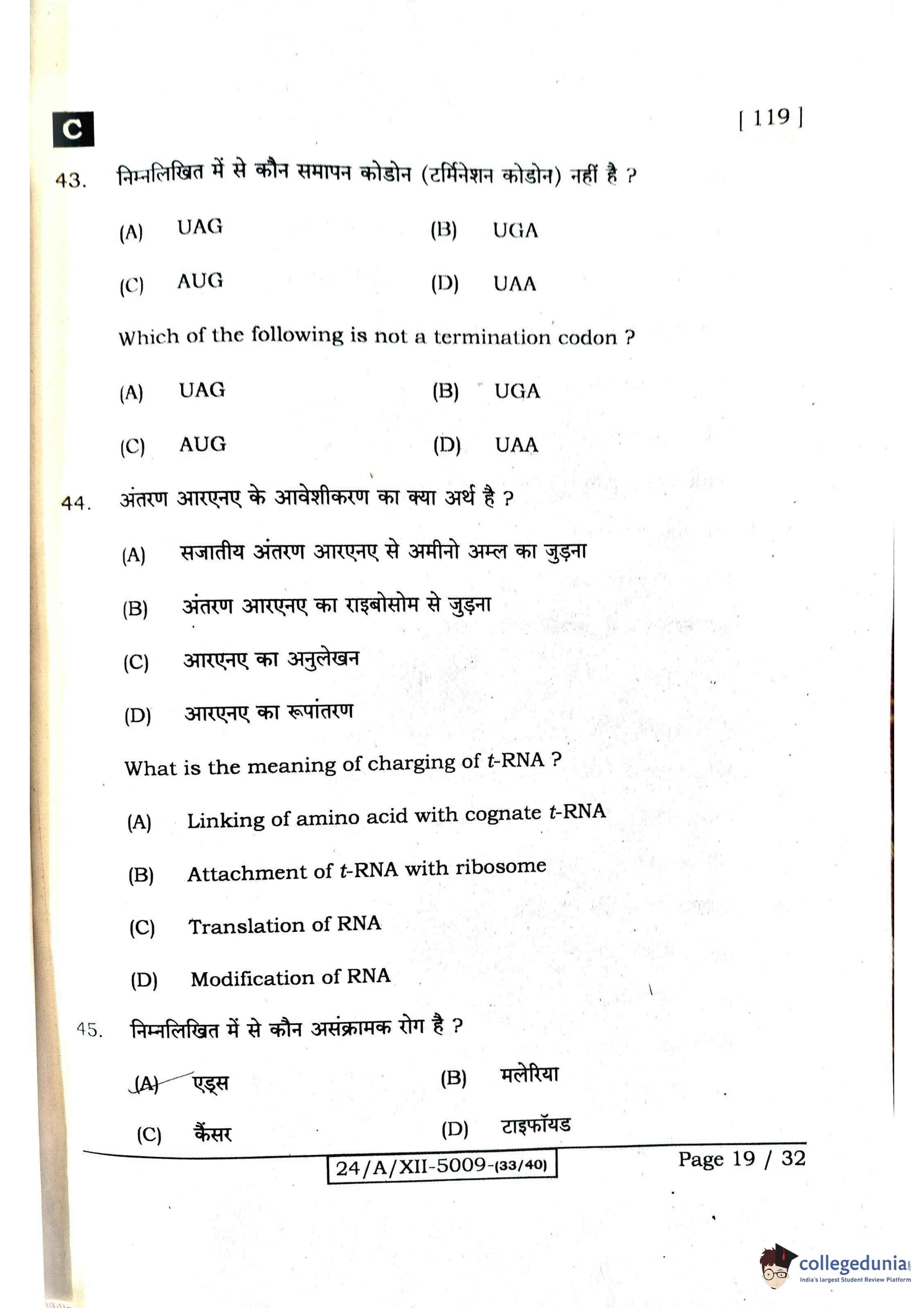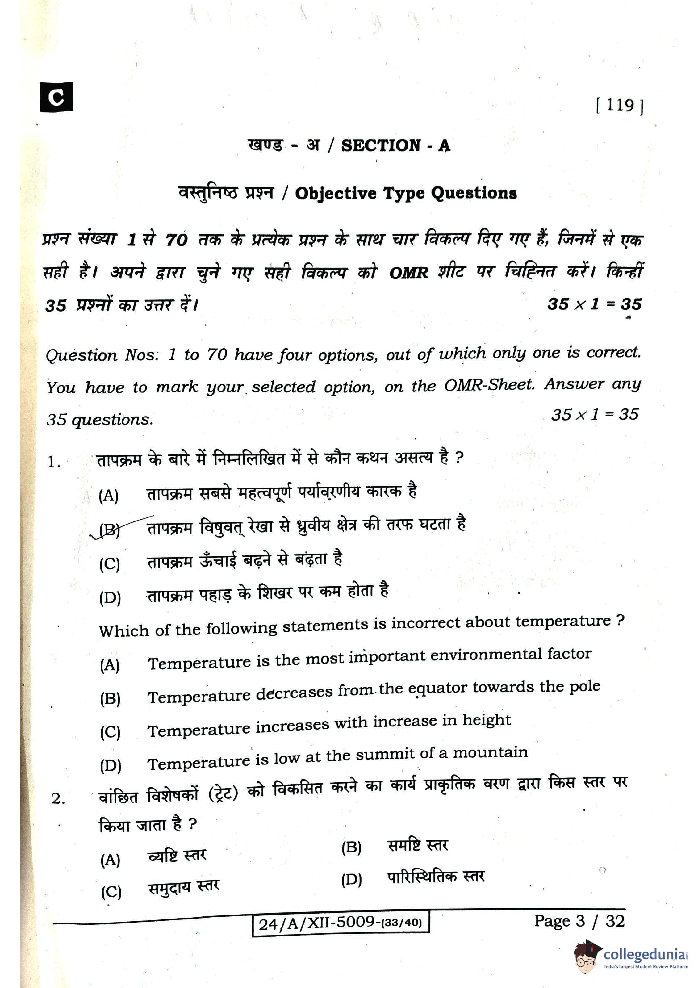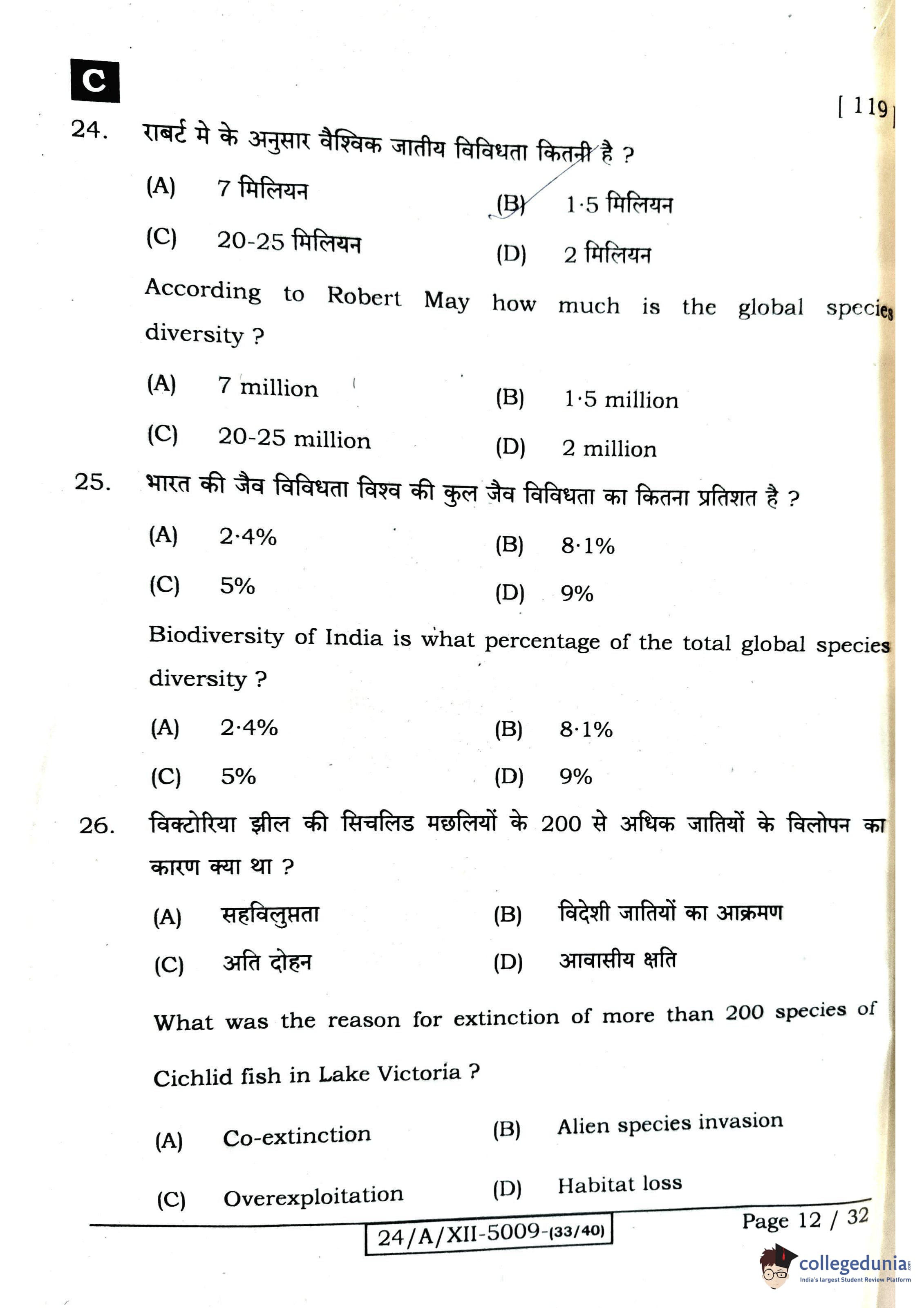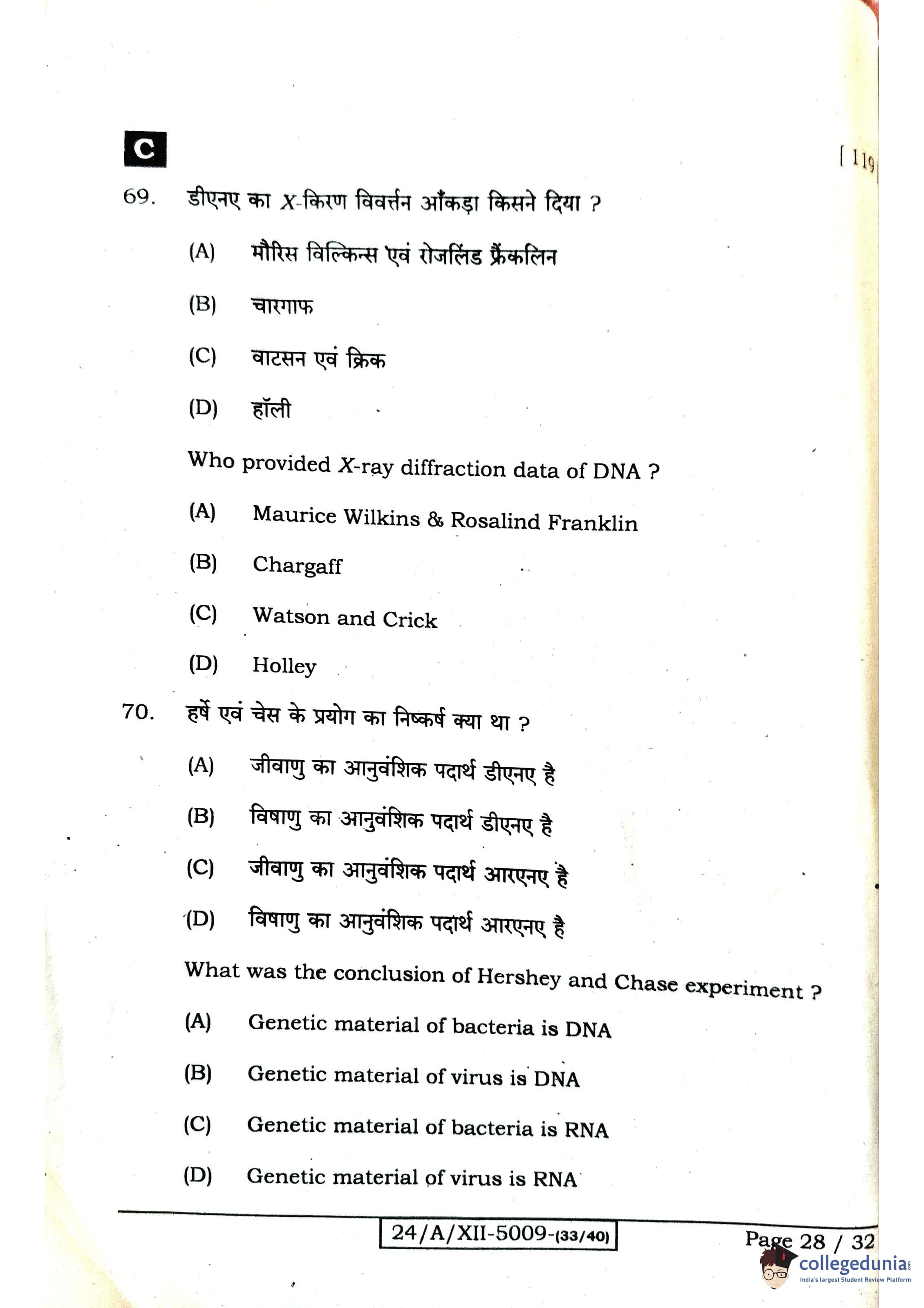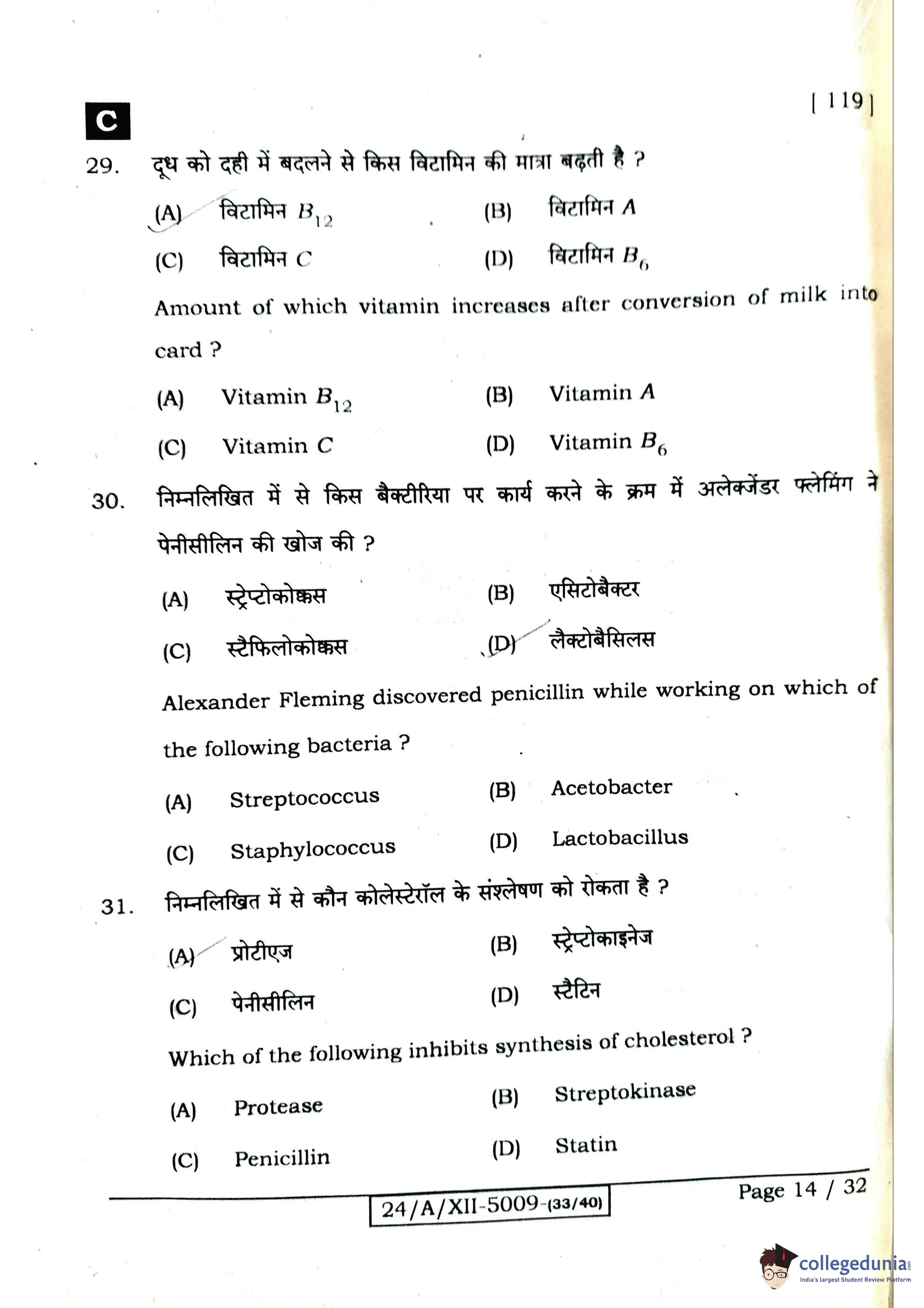 Bihar Board Class 12 Biology Question Paper 2024 with Answer Key