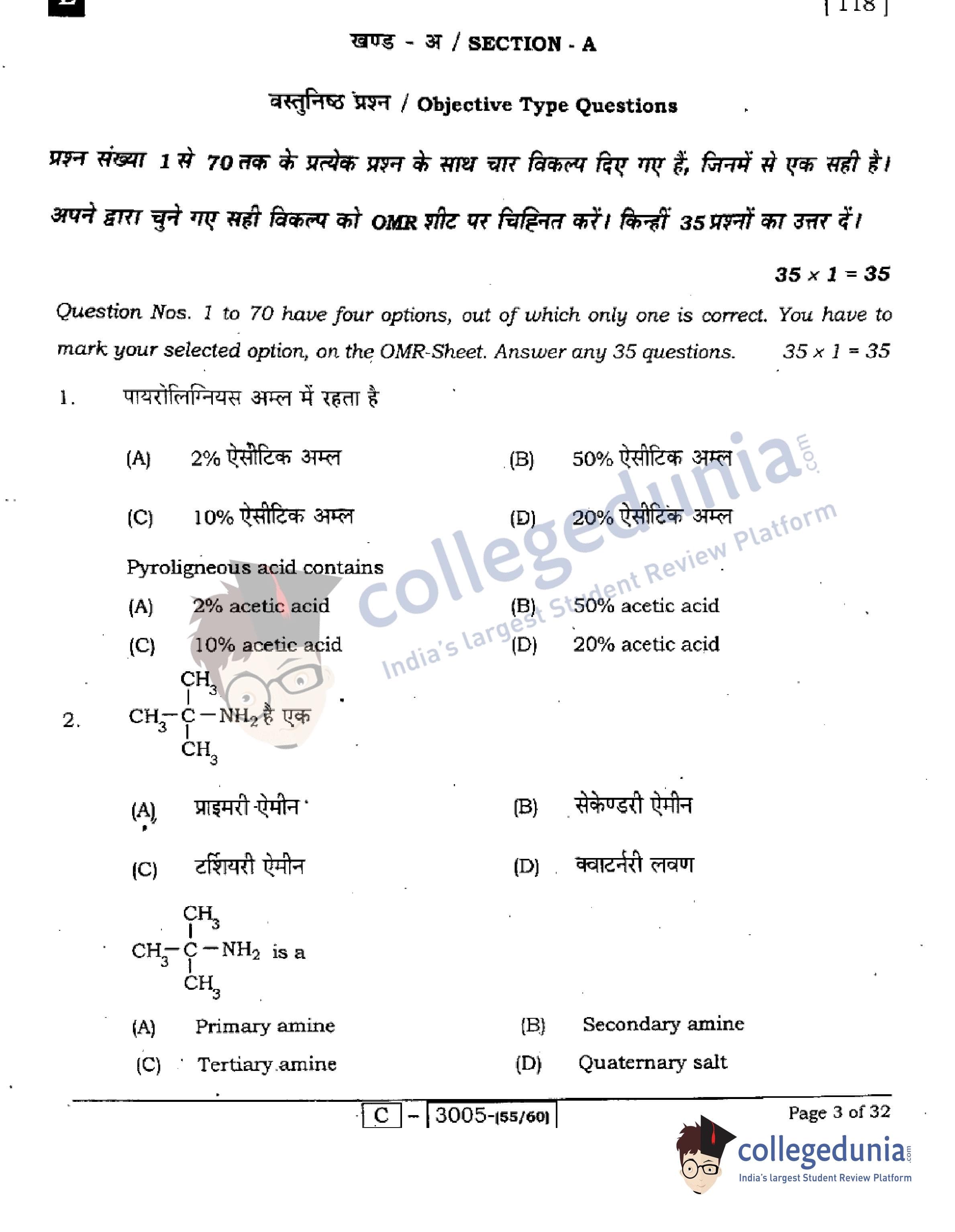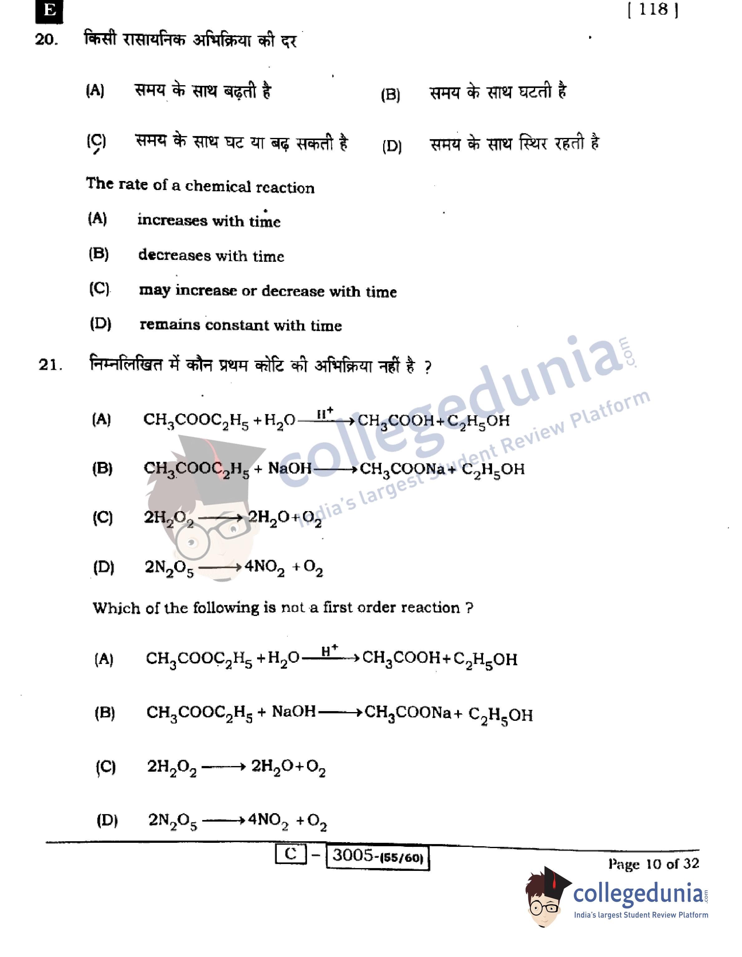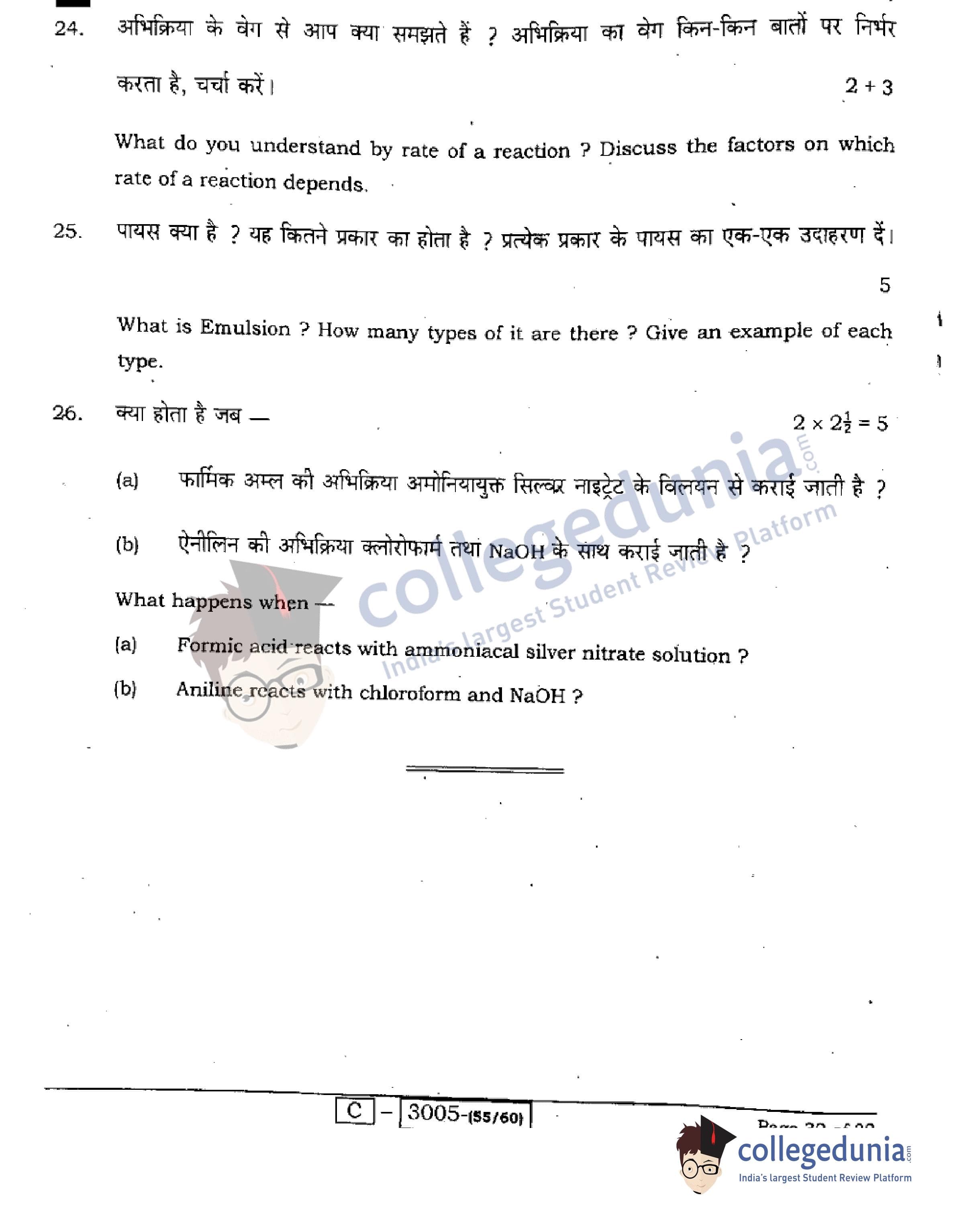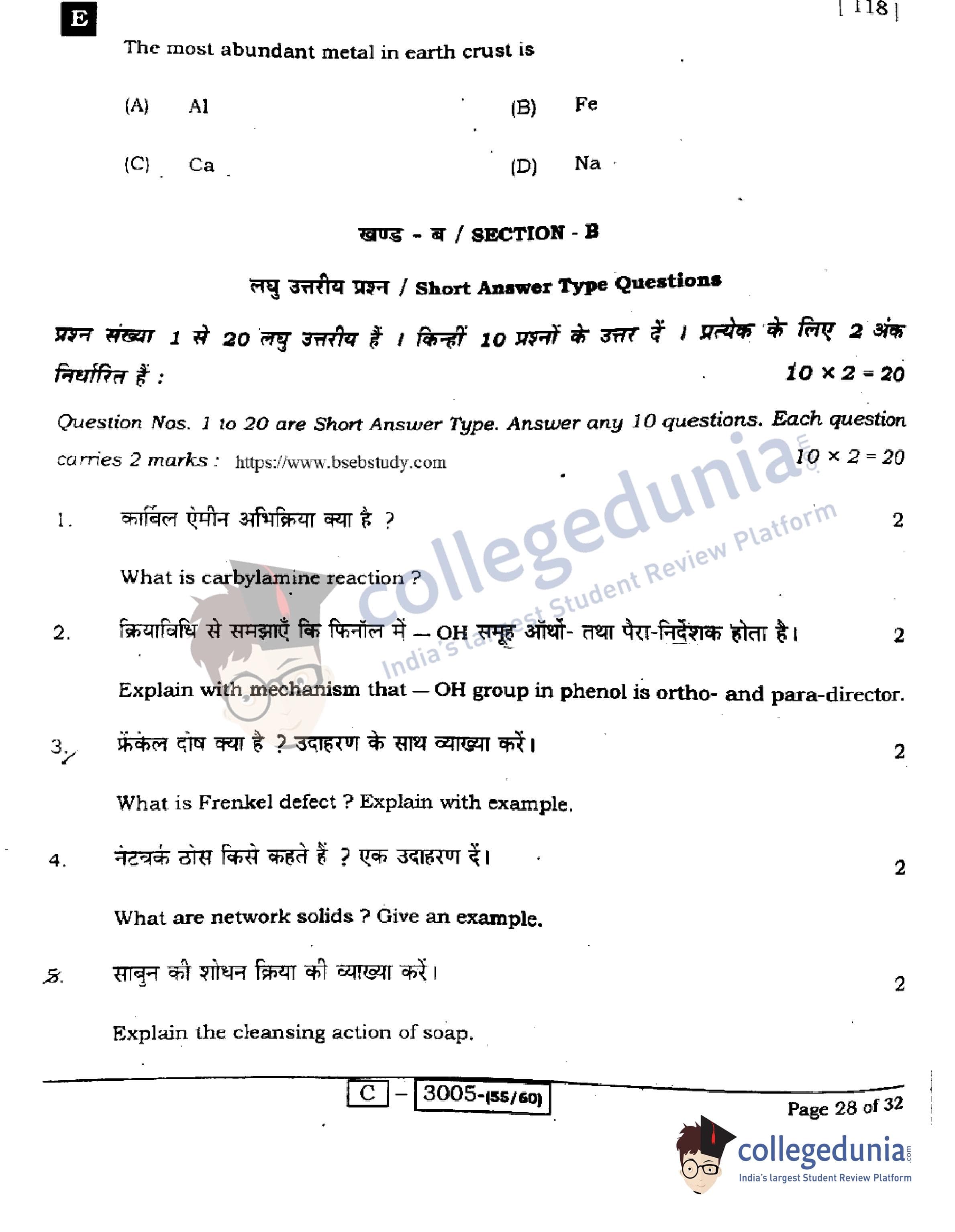 Bihar Board Class 12 Chemistry (Elective) Question Paper 2022 with Answer Key Set E is available for download. The exam was conducted by the BSEB . The medium of paper was English and Hindi. The question paper comprised a total of 96 questions divided among 2 sections.