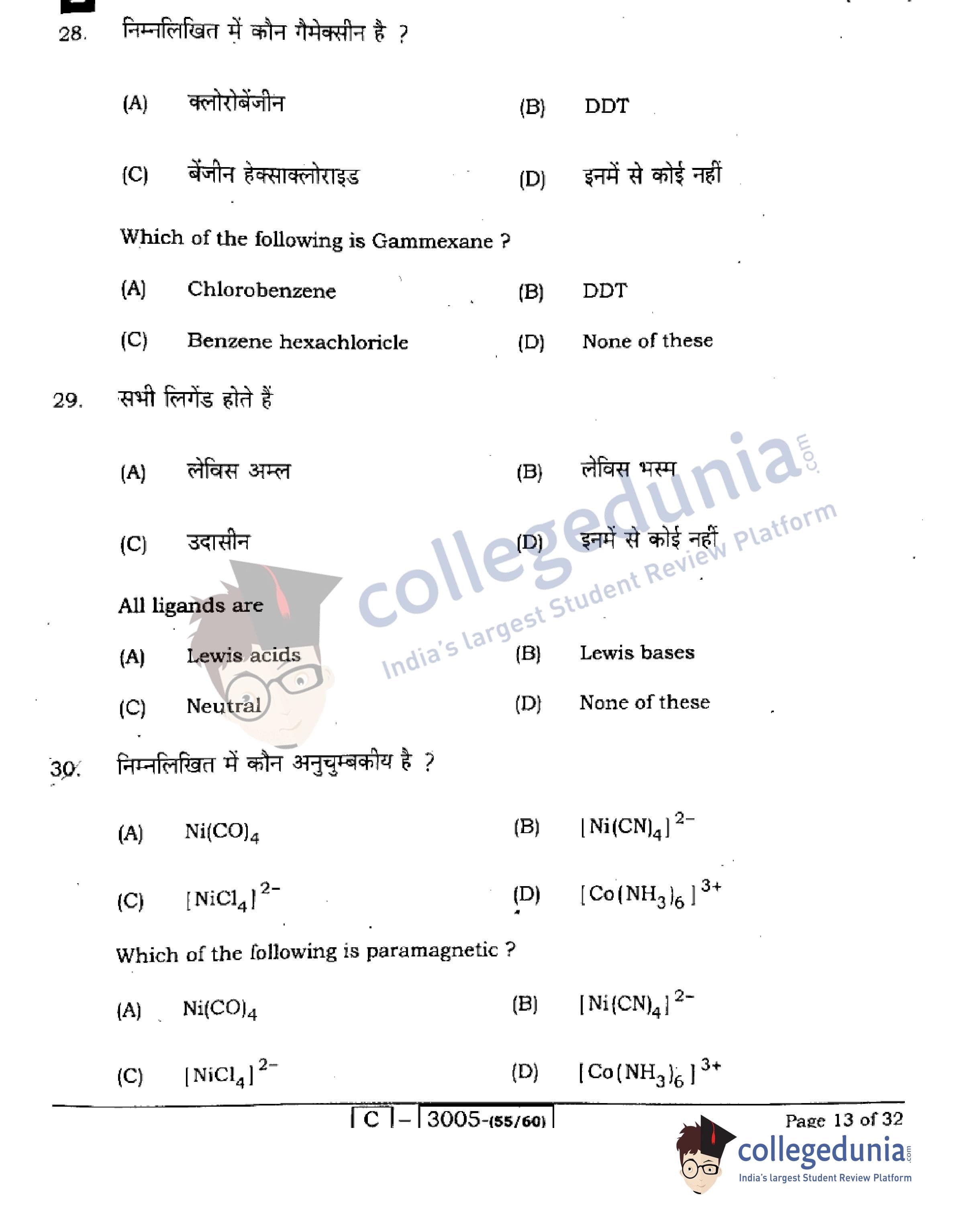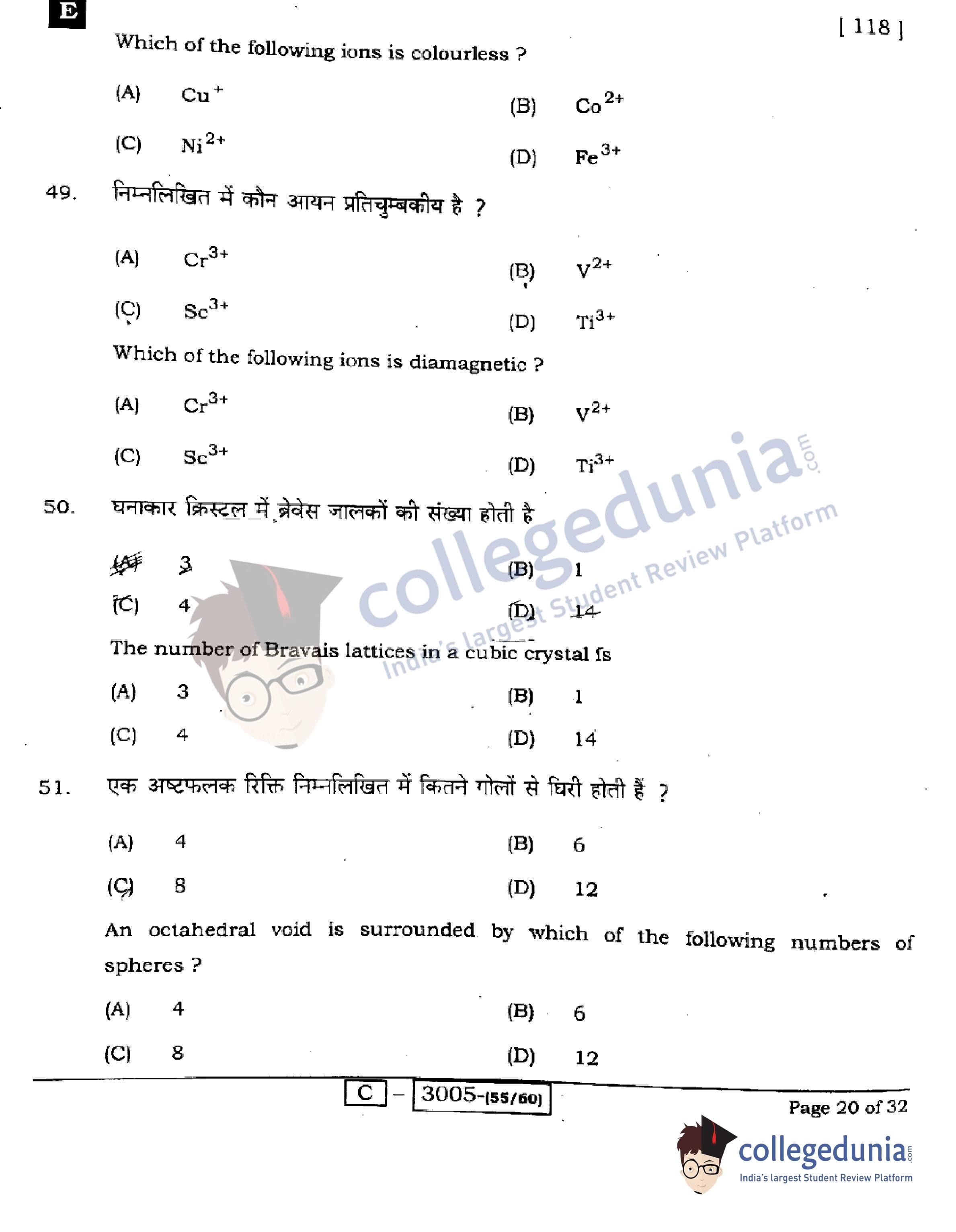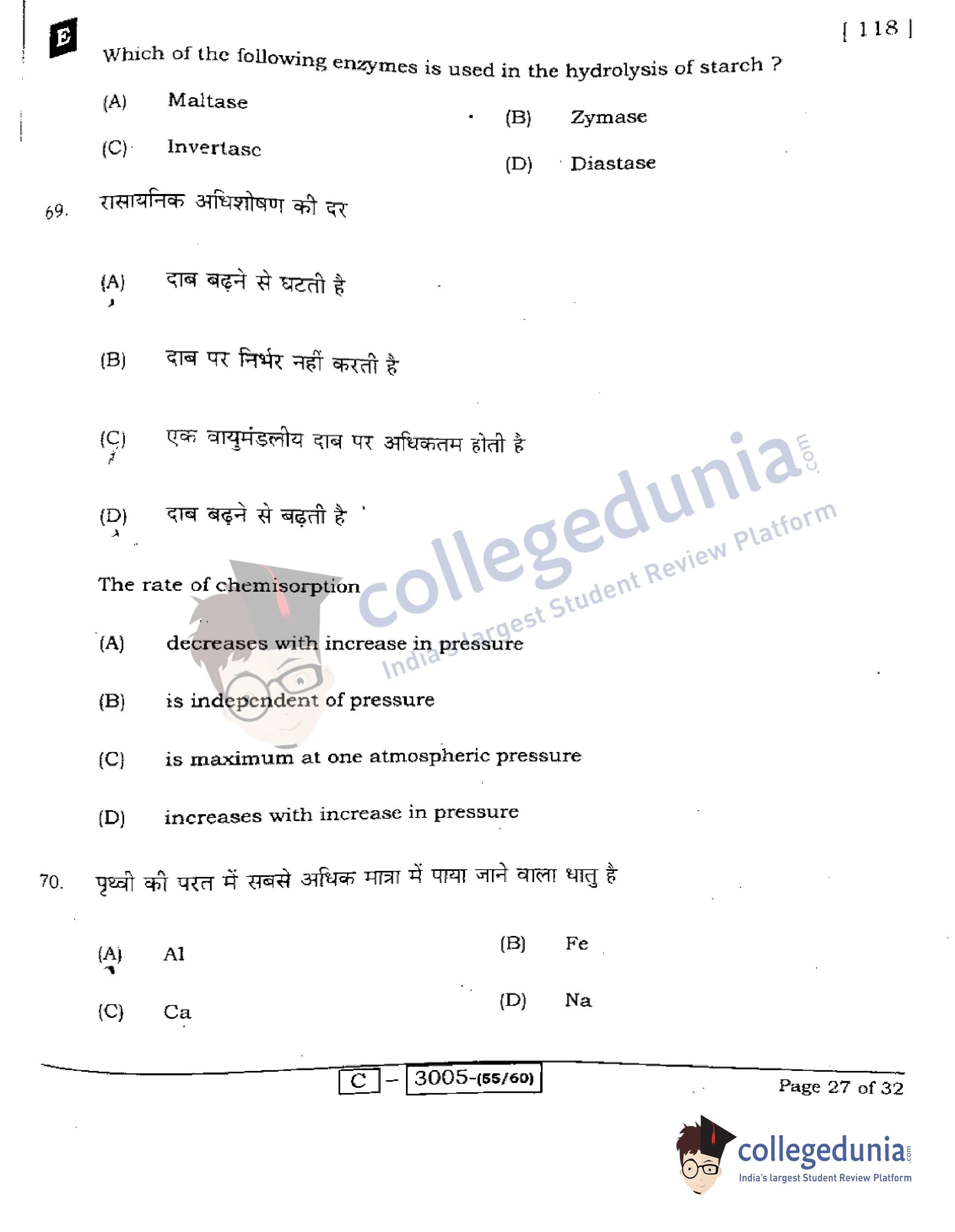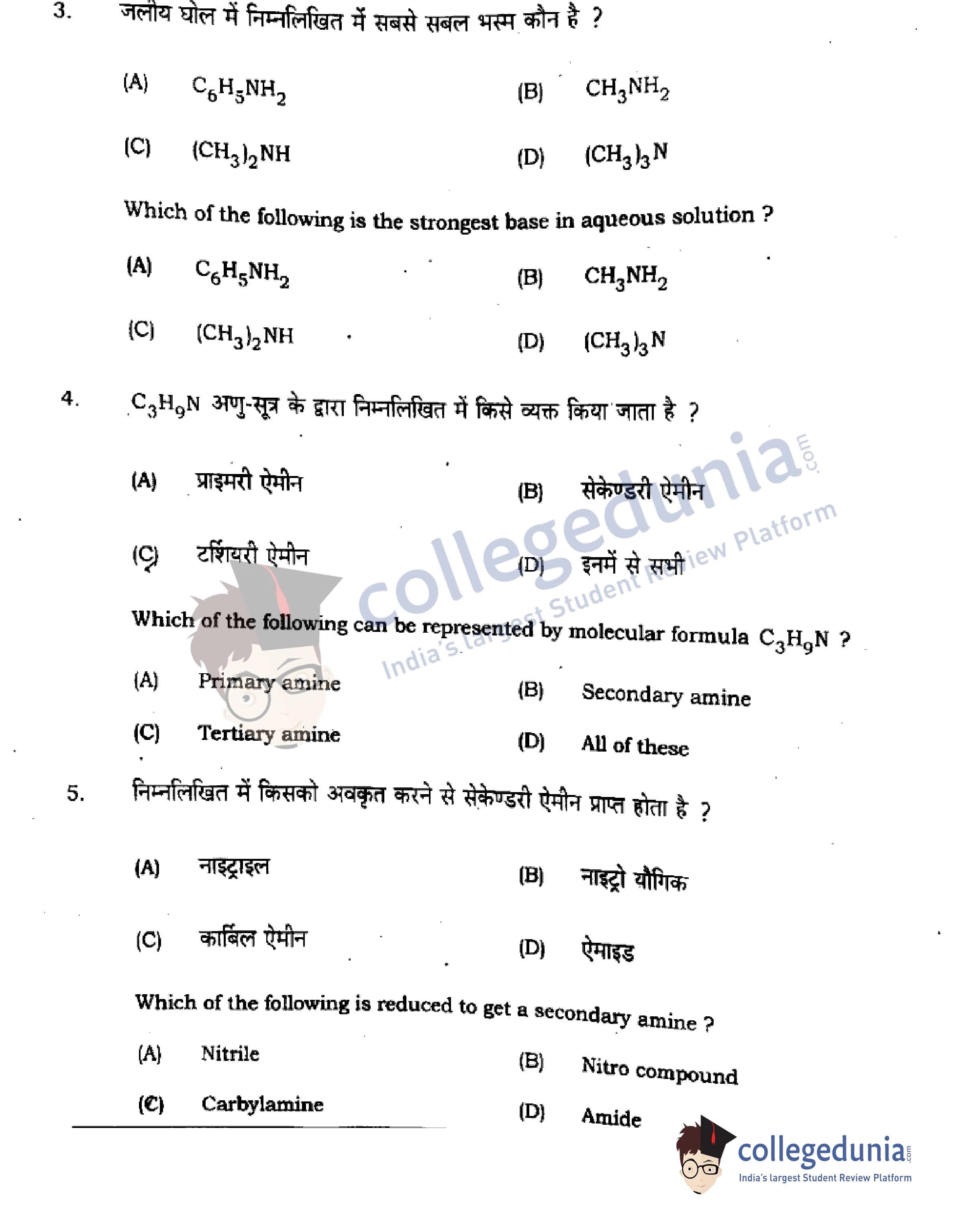Bihar Board Class 12 Chemistry (Elective) Question Paper 2022 with Answer Key Set E is available for download. The exam was conducted by the BSEB . The medium of paper was English and Hindi. The question paper comprised a total of 96 questions divided among 2 sections.