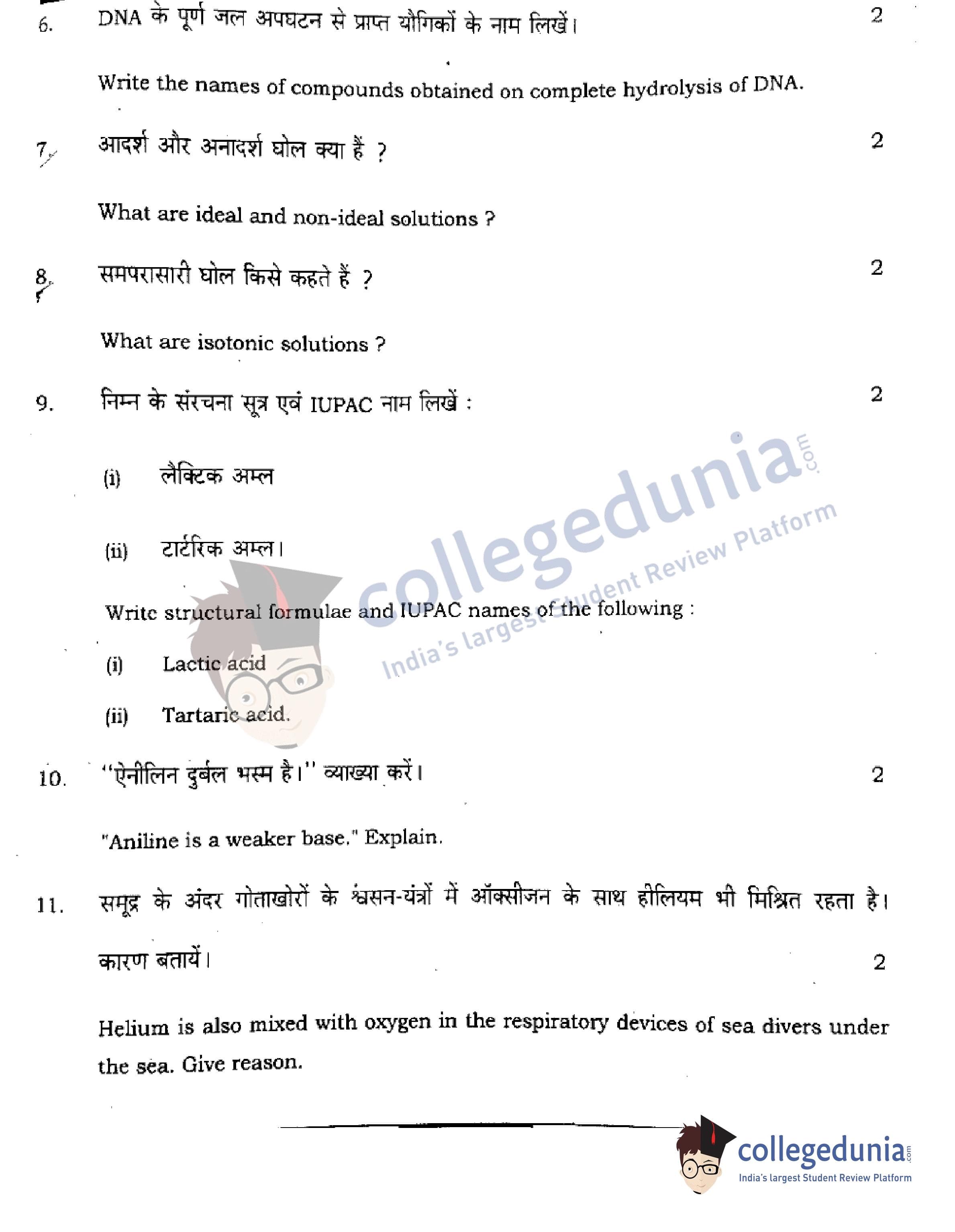 Bihar Board Class 12 Chemistry (Elective) Set E Question Paper 2022 with Answer Key