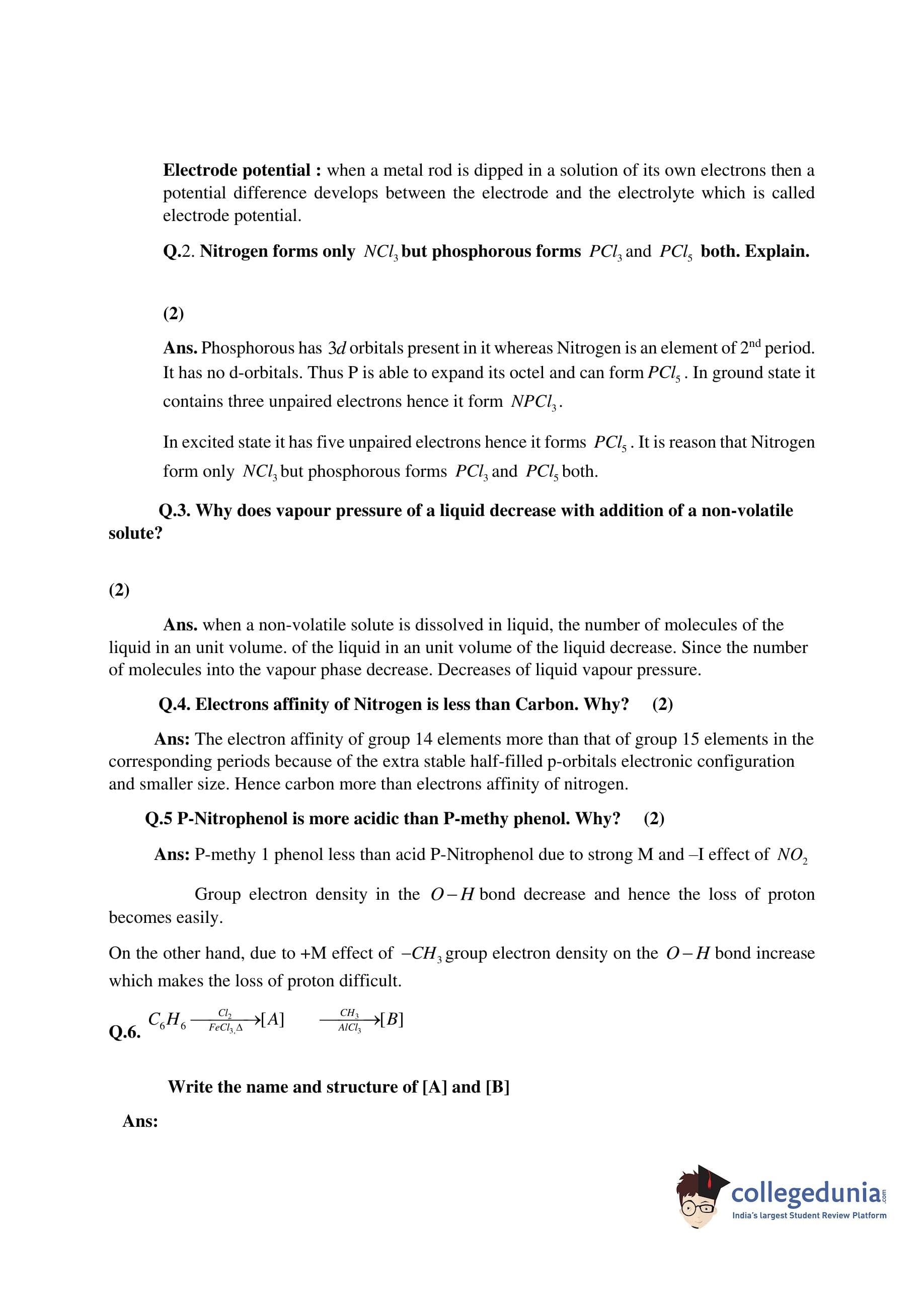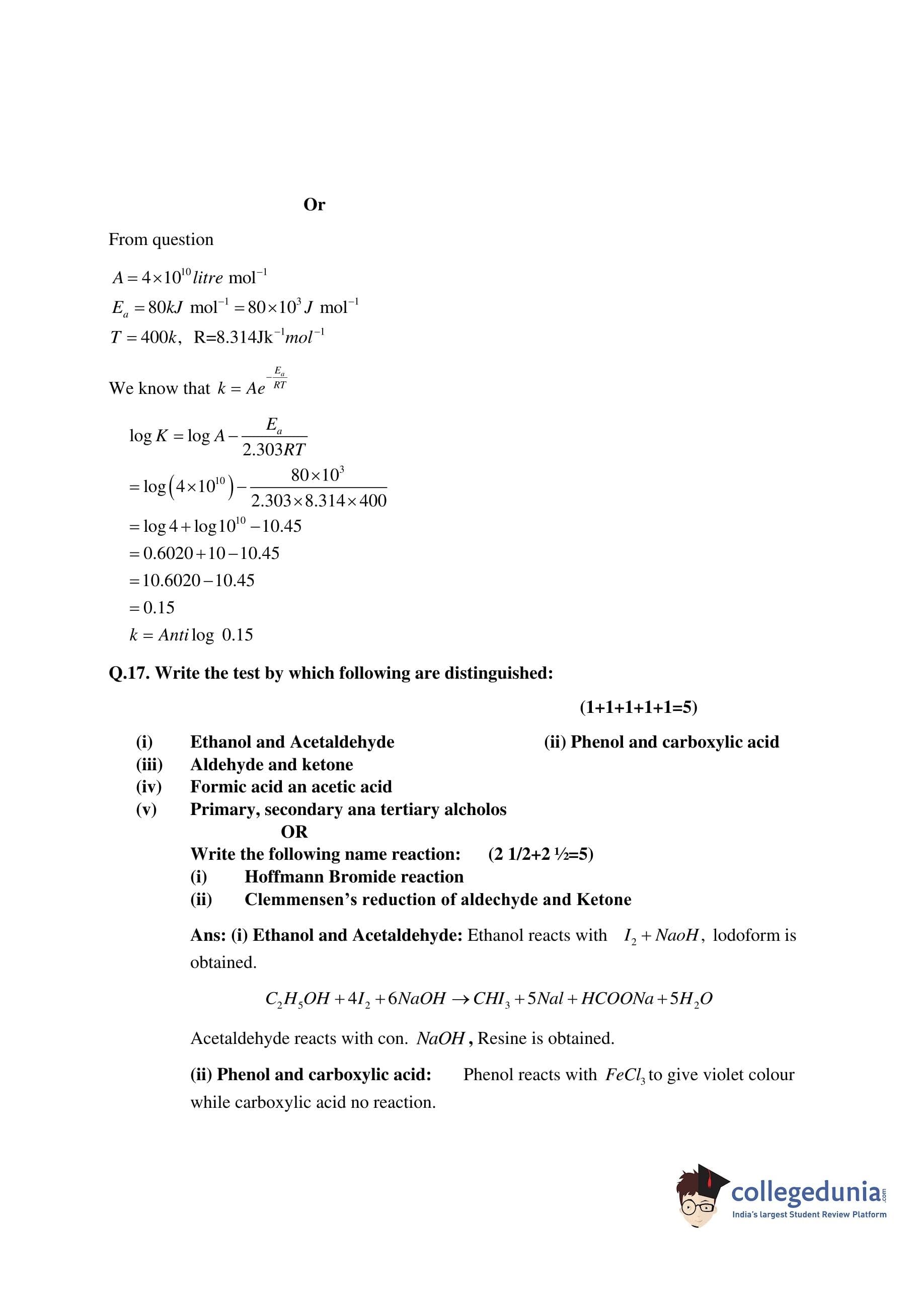 Bihar Board Class 12 Chemistry Question Paper 2018 with Answer Key (February 10 )