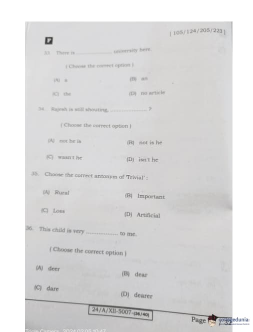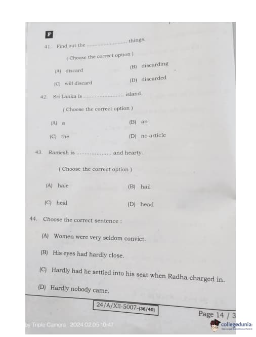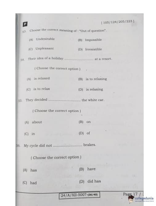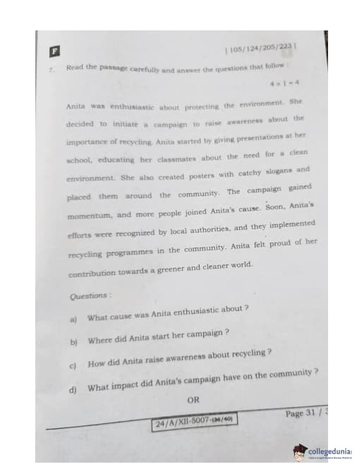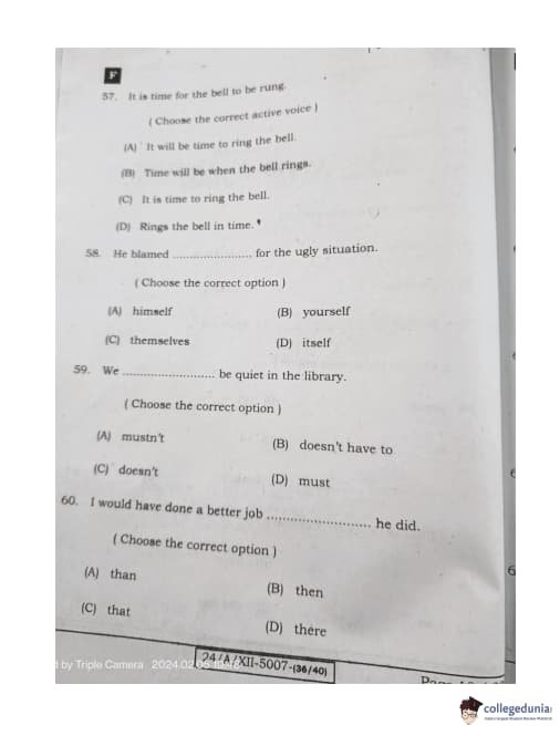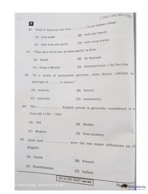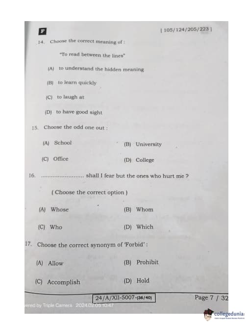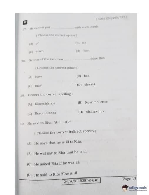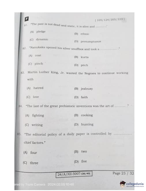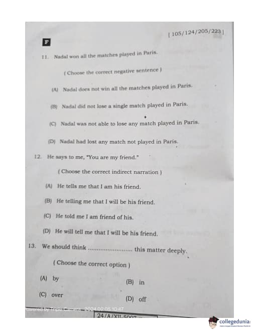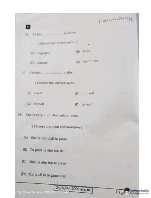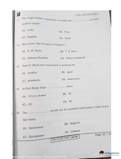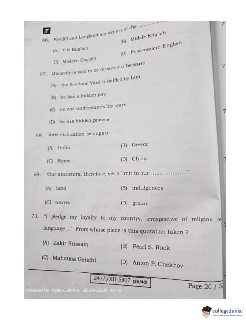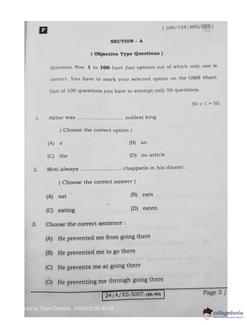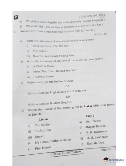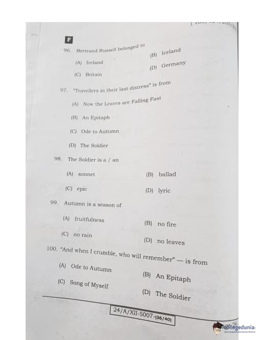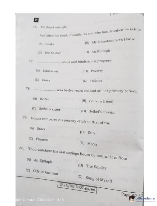Bihar Board Class 12 English Question Paper 2024 with Answer Key