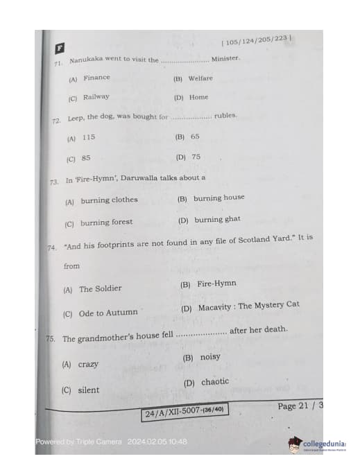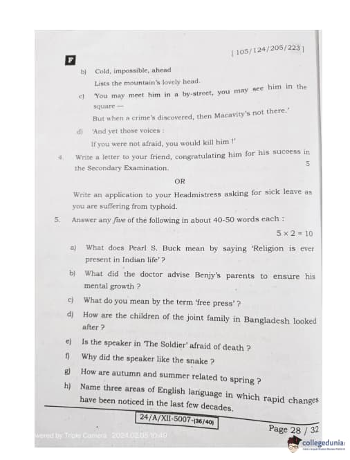 Bihar Board Class 12 English Question Paper 2024 with Answer Key pdf is available for download here. The English paper was conducted on February 5, 2024 in the morning shift from 9:30 AM to 12:45 PM. The question paper was divided into two sections - Section A for objective questions and Section B for subjective questions.