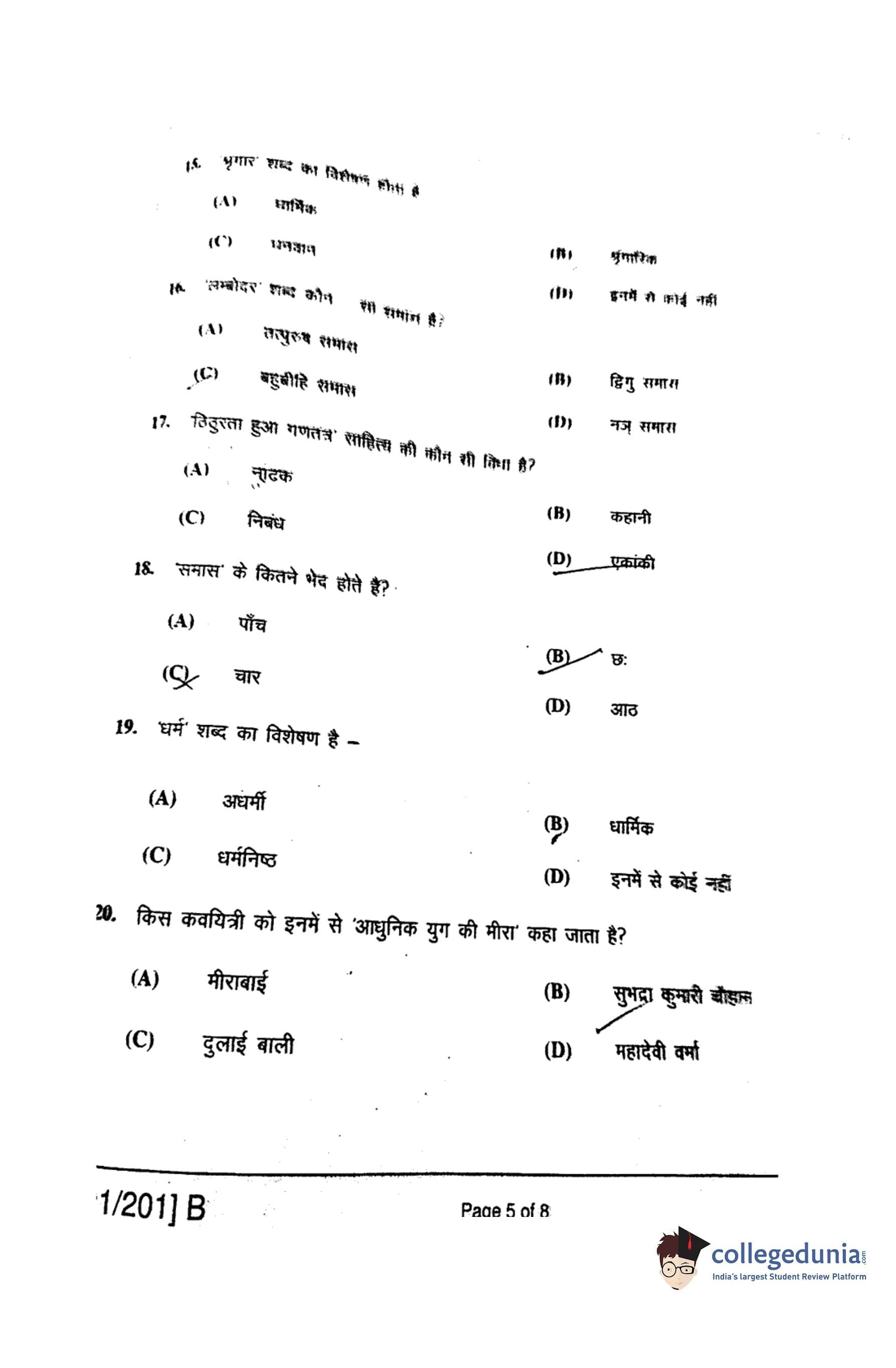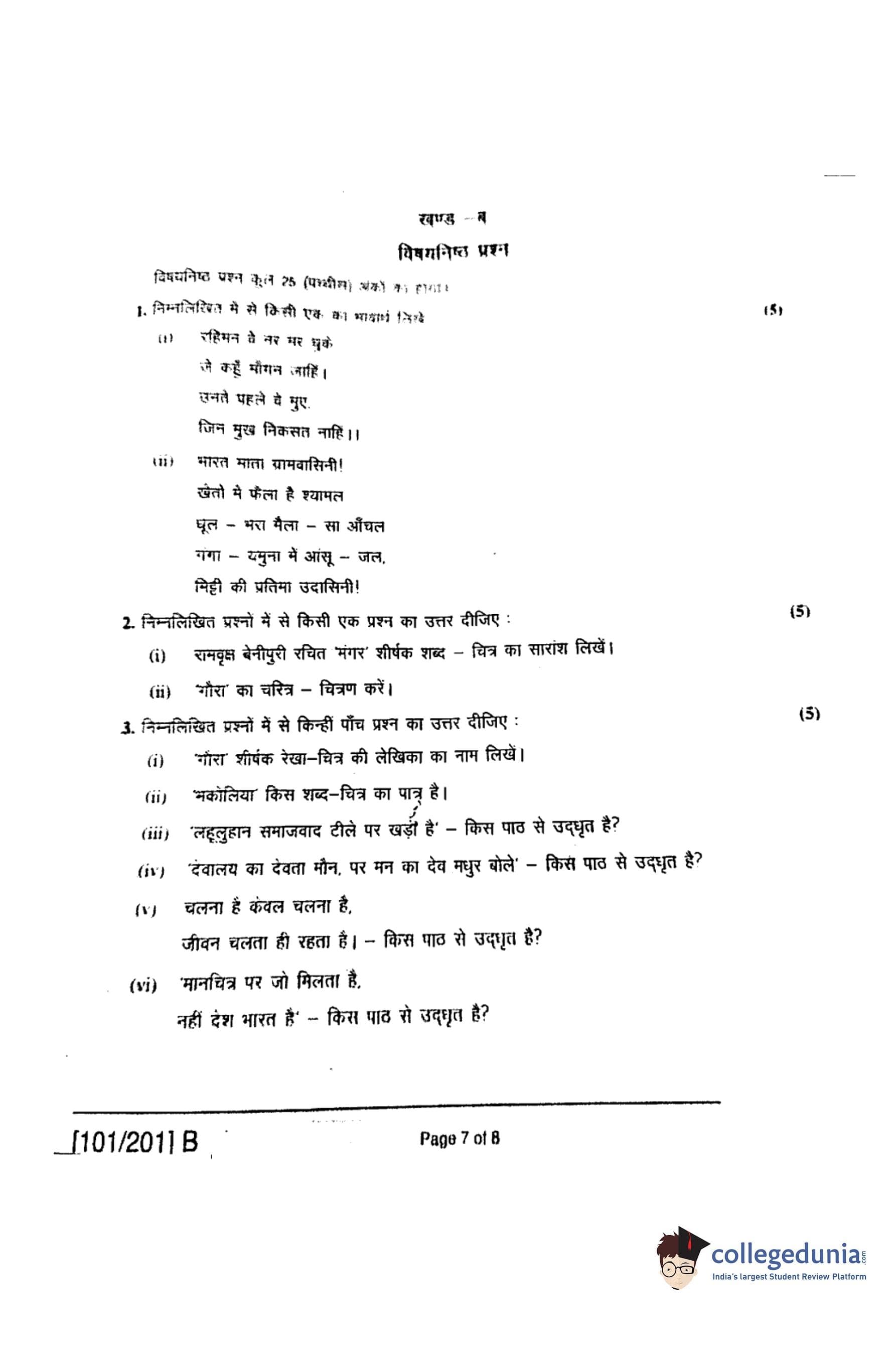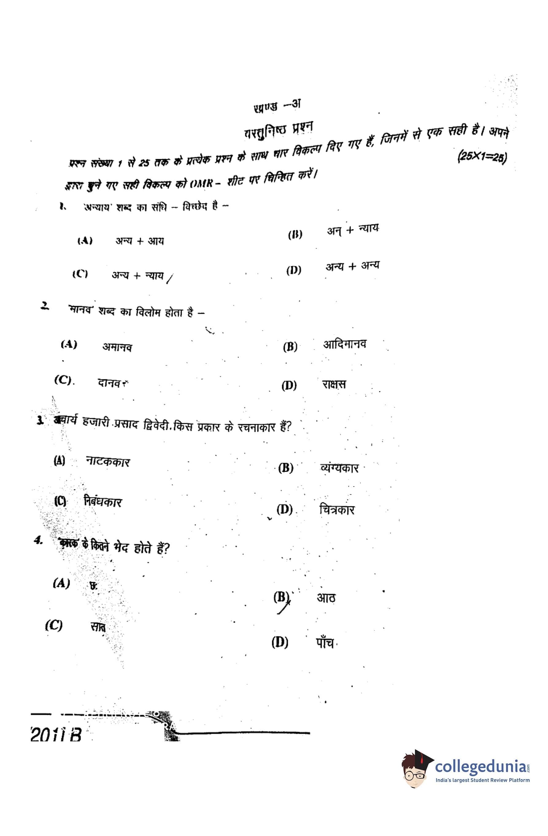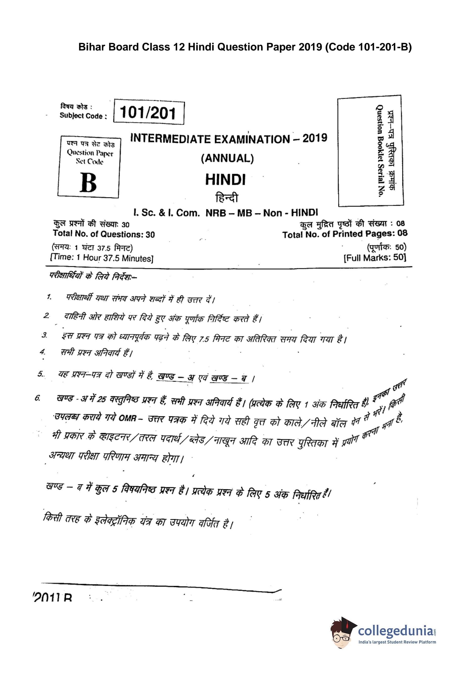 Bihar Board Class 12 Hindi Question Paper 2019 with Answer Key Code 101-201-B is available for download. The exam was conducted by the BSEB on February 13 in the Morning Session 9:30 AM to 12:45 PM. The medium of paper was Hindi. The question paper comprised a total of 30 questions divided among 2 sections.