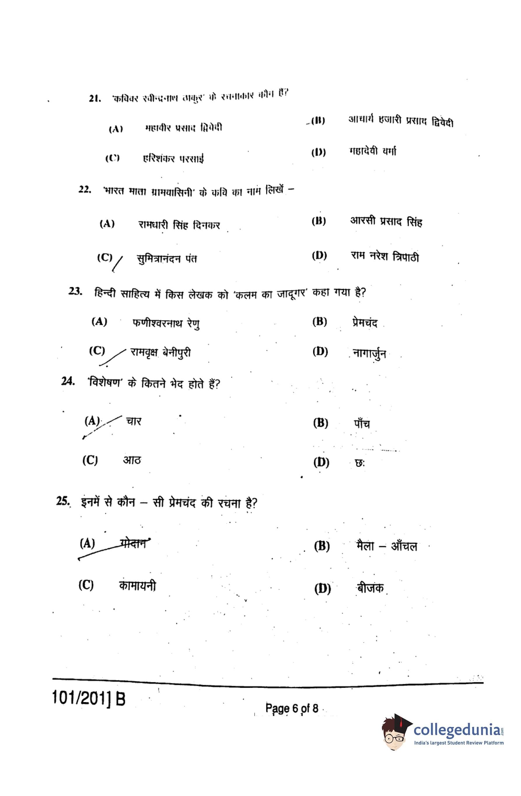 Bihar Board Class 12 Hindi Code 101-201-B Question Paper 2019 with Answer Key (February 13)