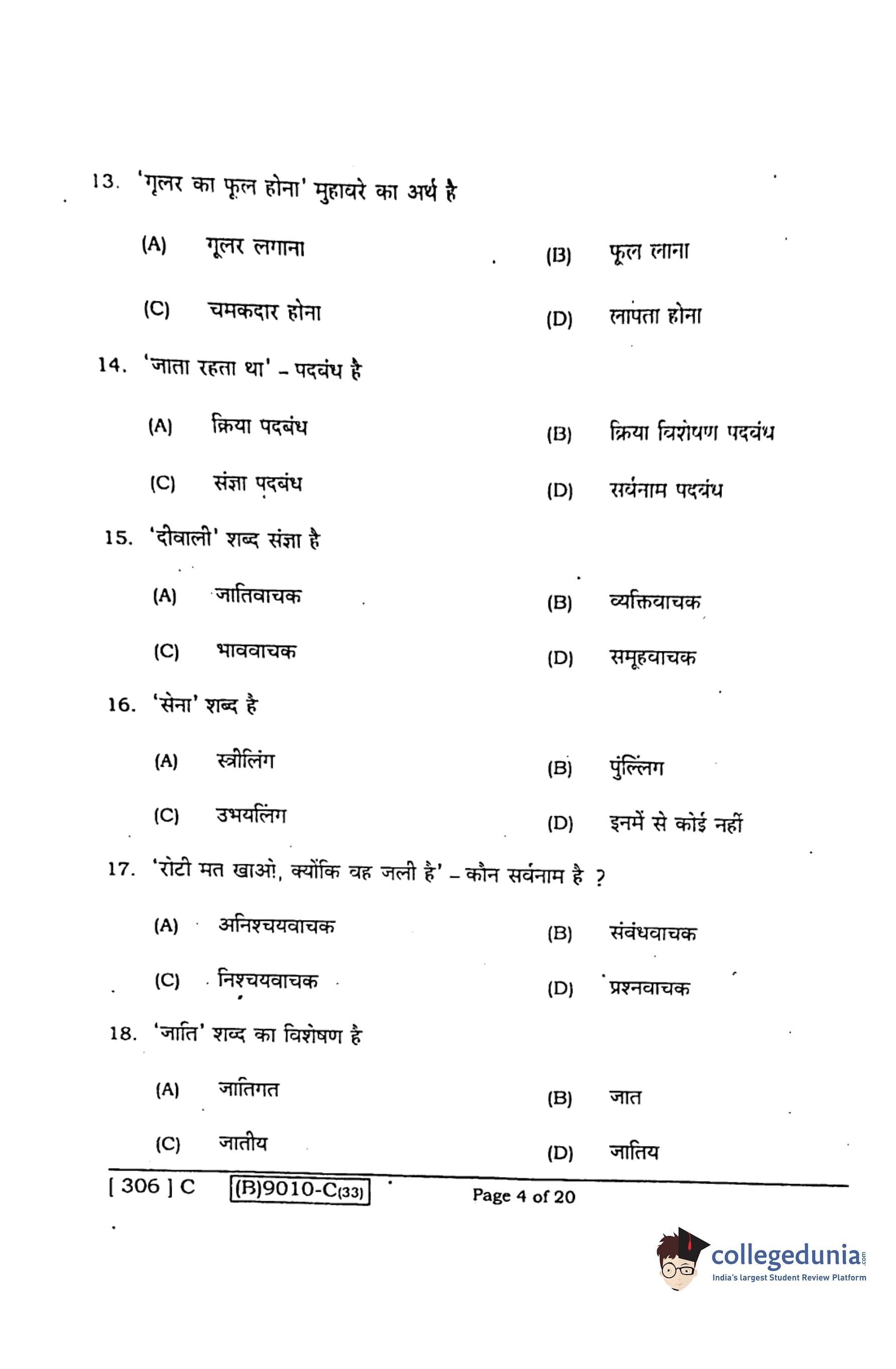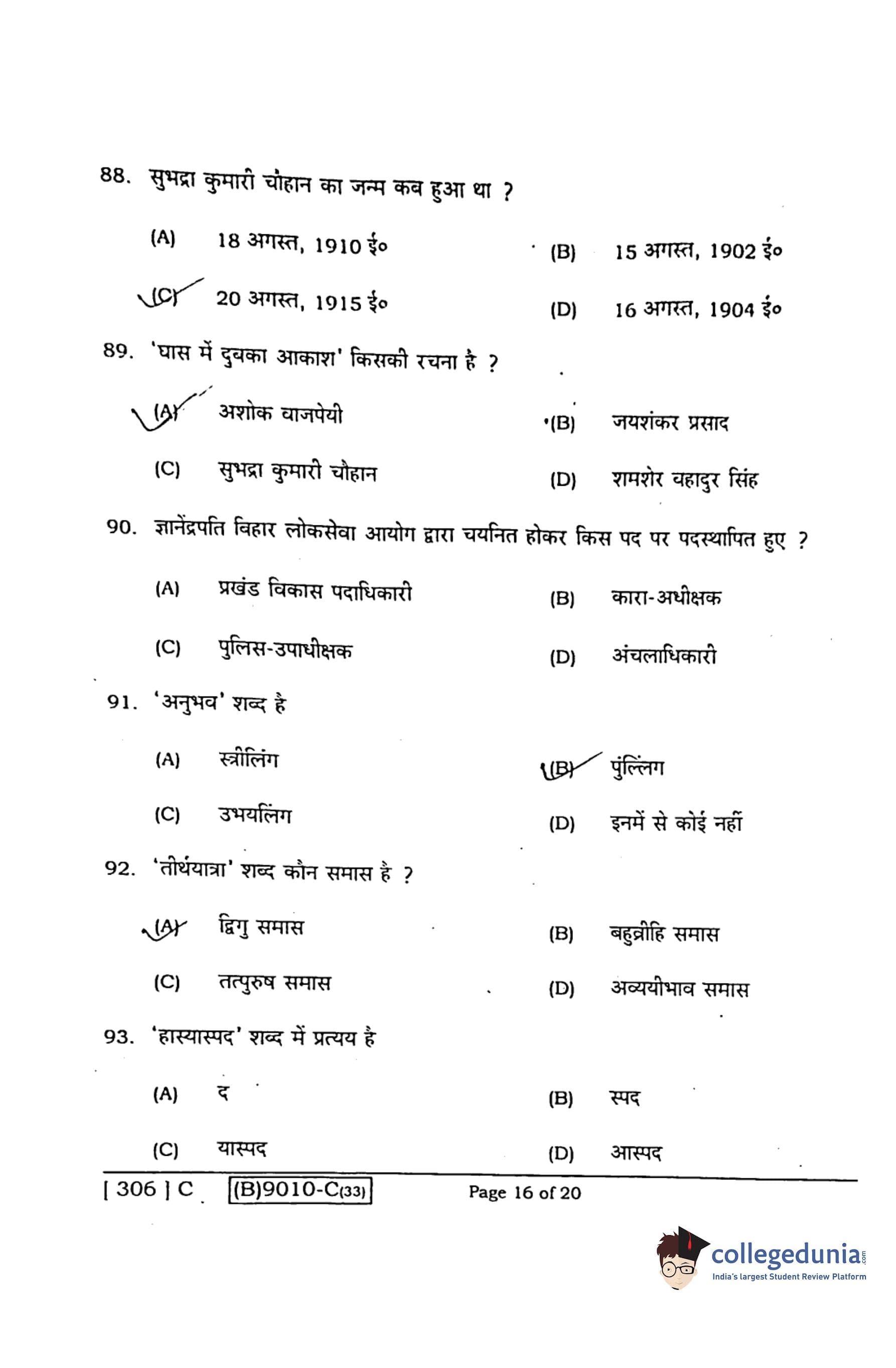 Bihar Board Class 12 Hindi Question Paper 2021 with Answer Key Code 306-C is available for download. The exam was conducted by the BSEB on Febrarury 6 in the Afternoon Session 1:45 PM to 5 PM. The medium of paper was Hindi. The question paper comprised a total of 106 questions divided among 2 sections.