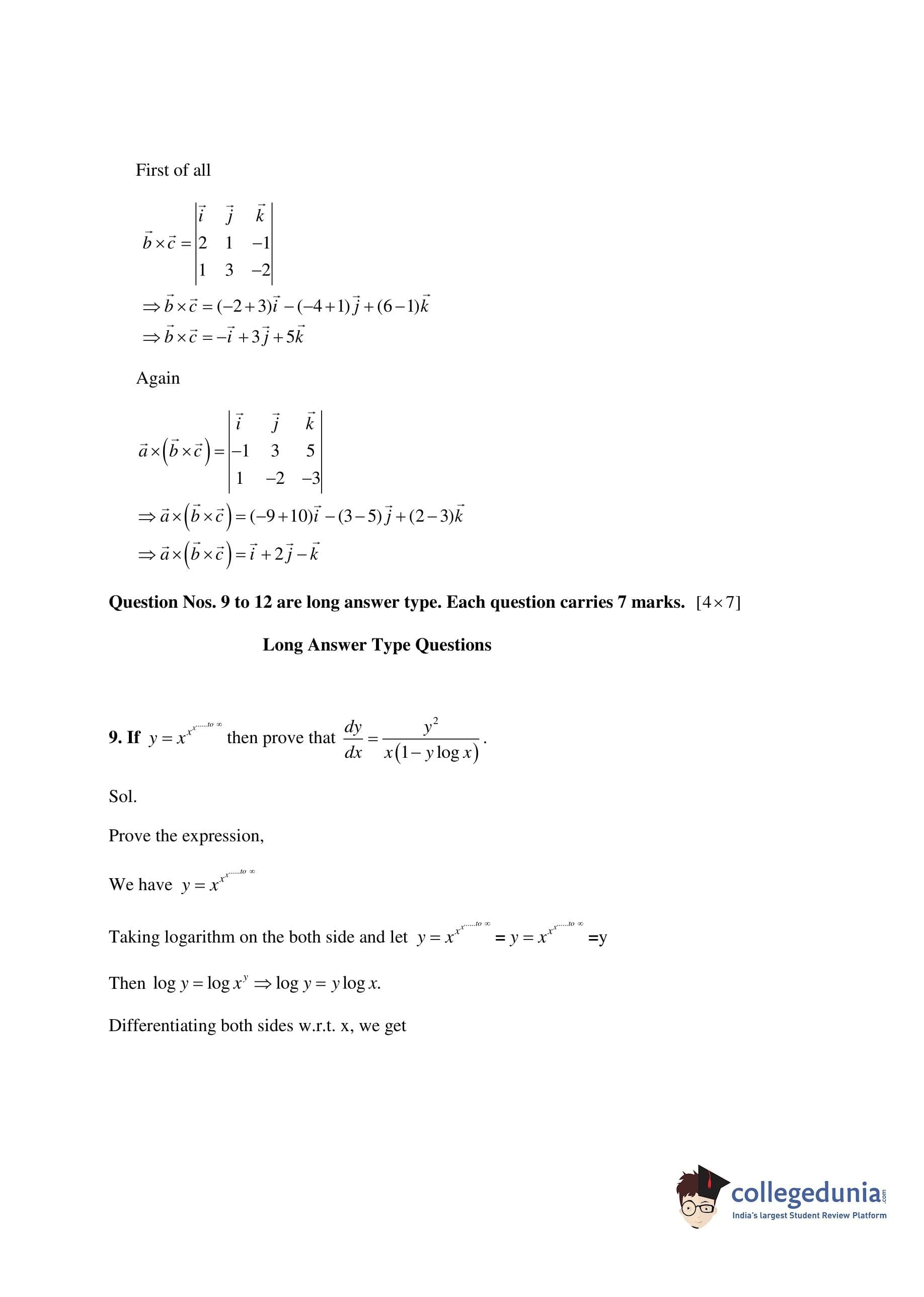 Bihar Board Class 12 Mathematics Question Paper 2017 with Answer Key (February 23 )