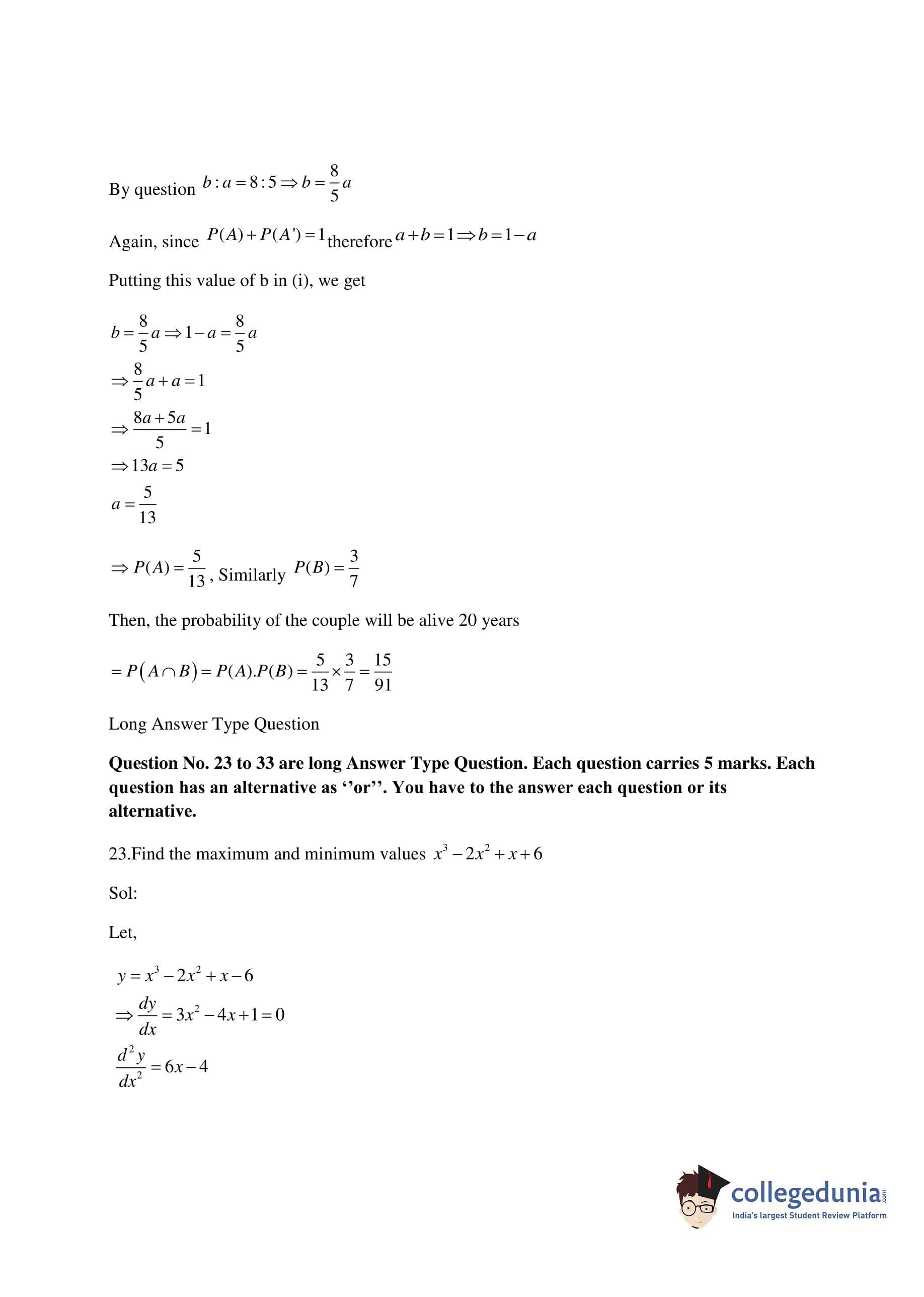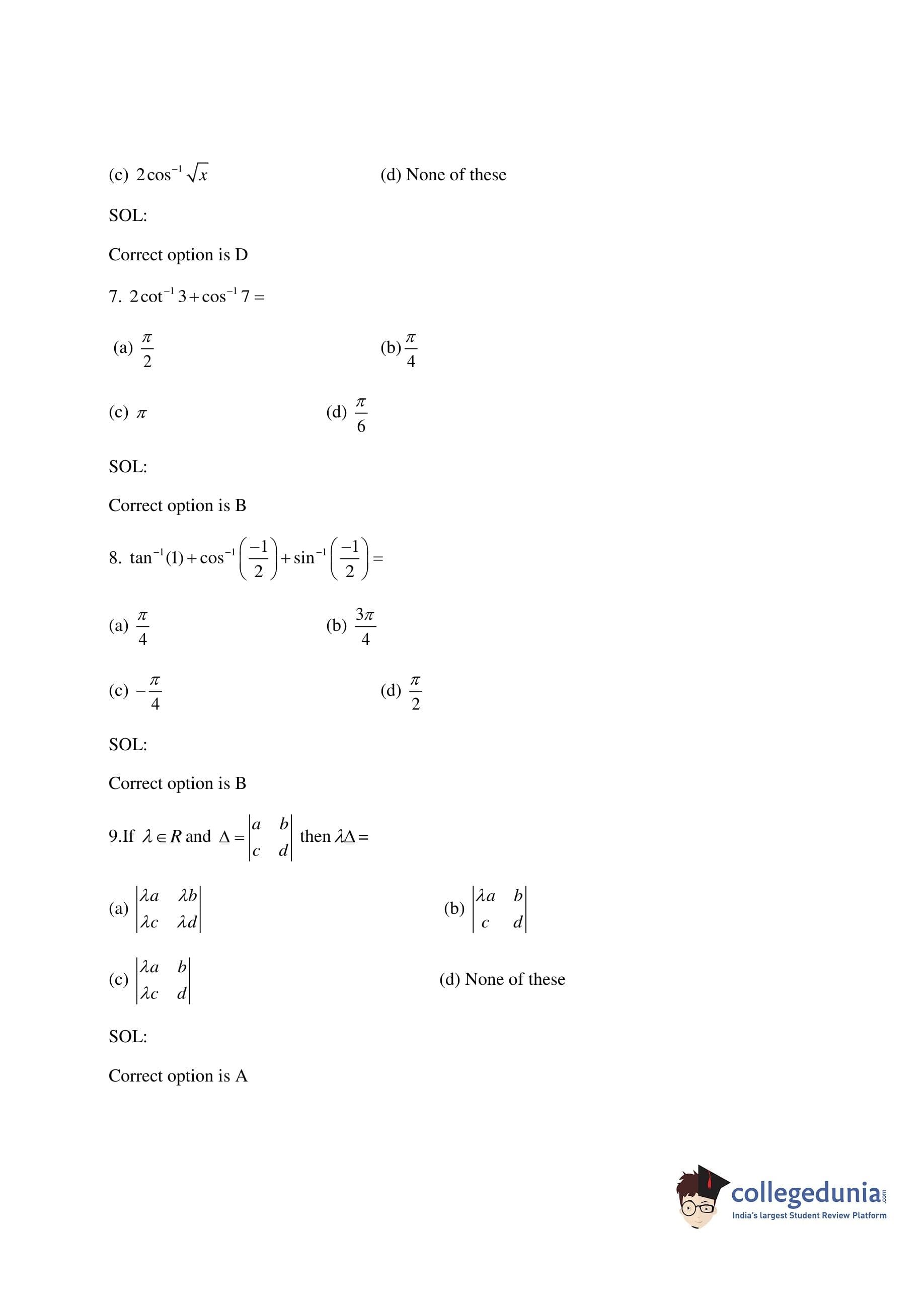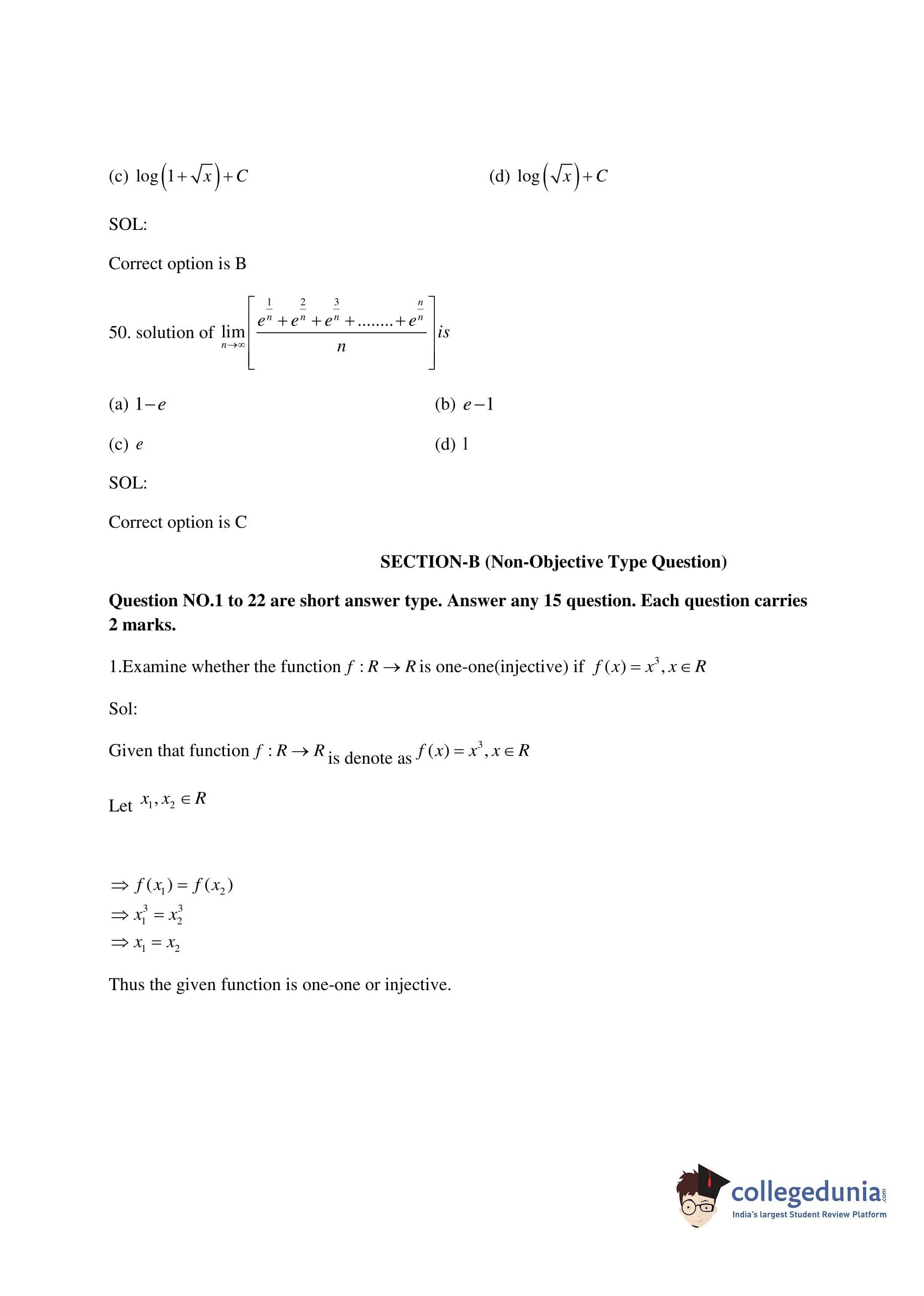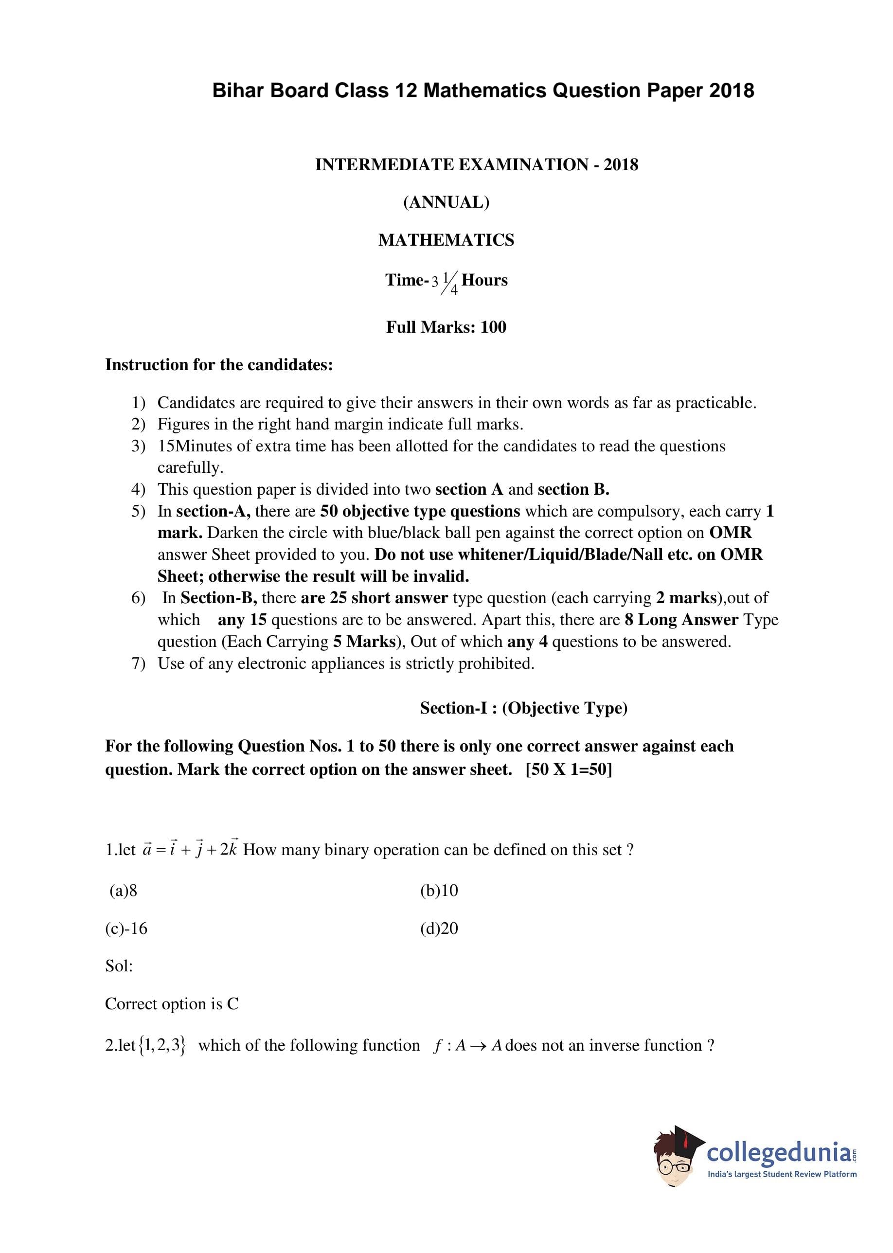 Bihar Board Class 12 Mathematics Question Paper 2018 with Answer Key (February 15 )