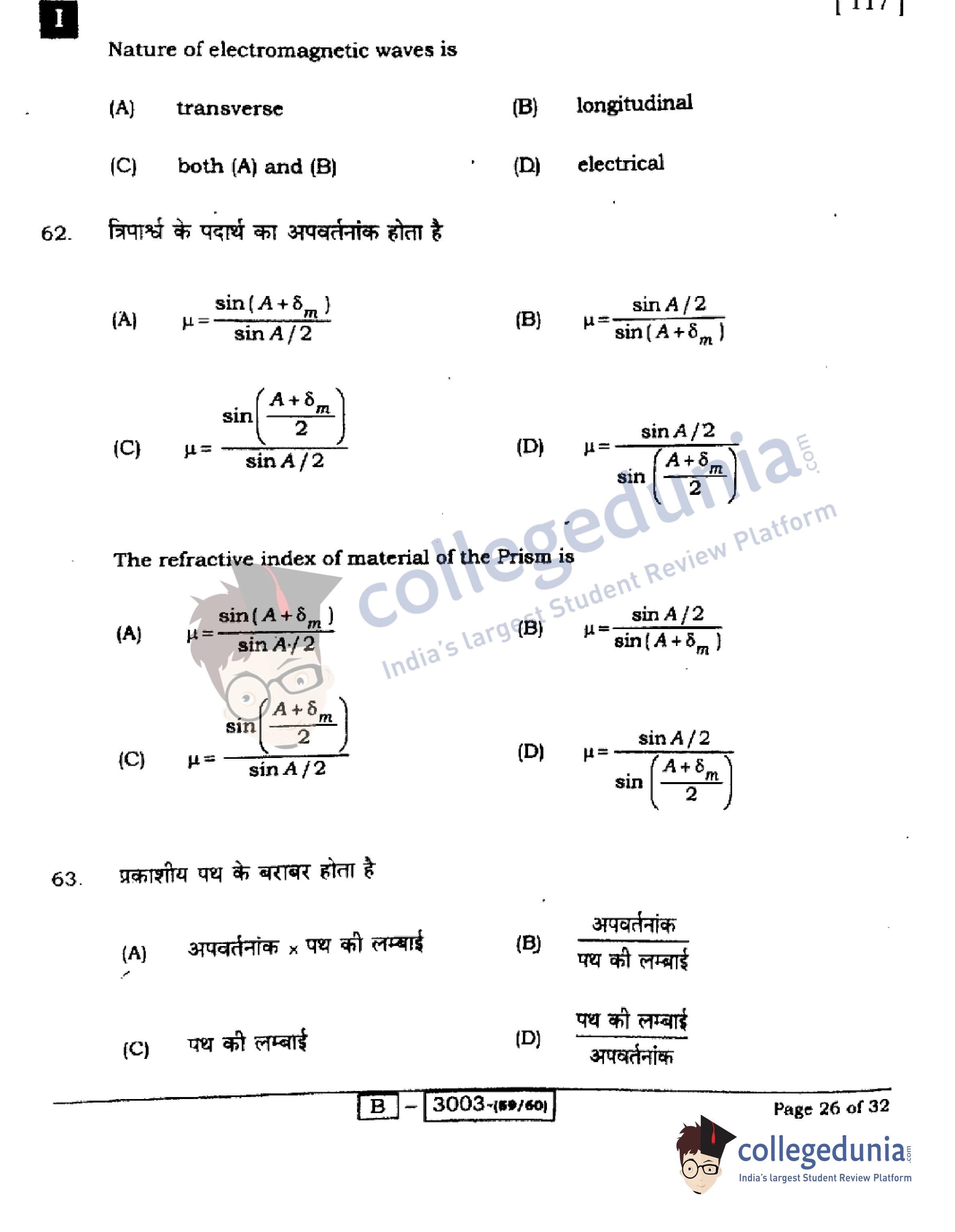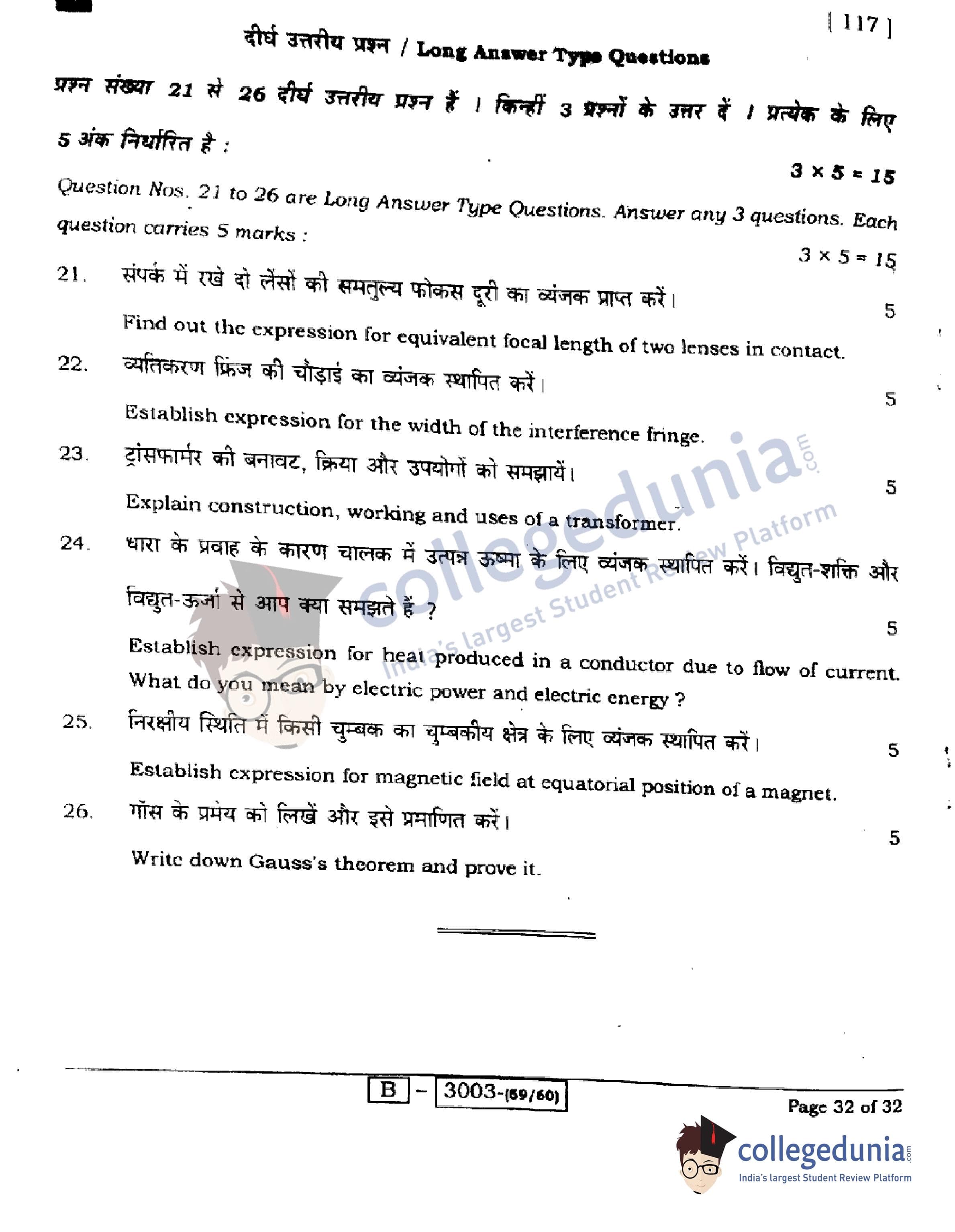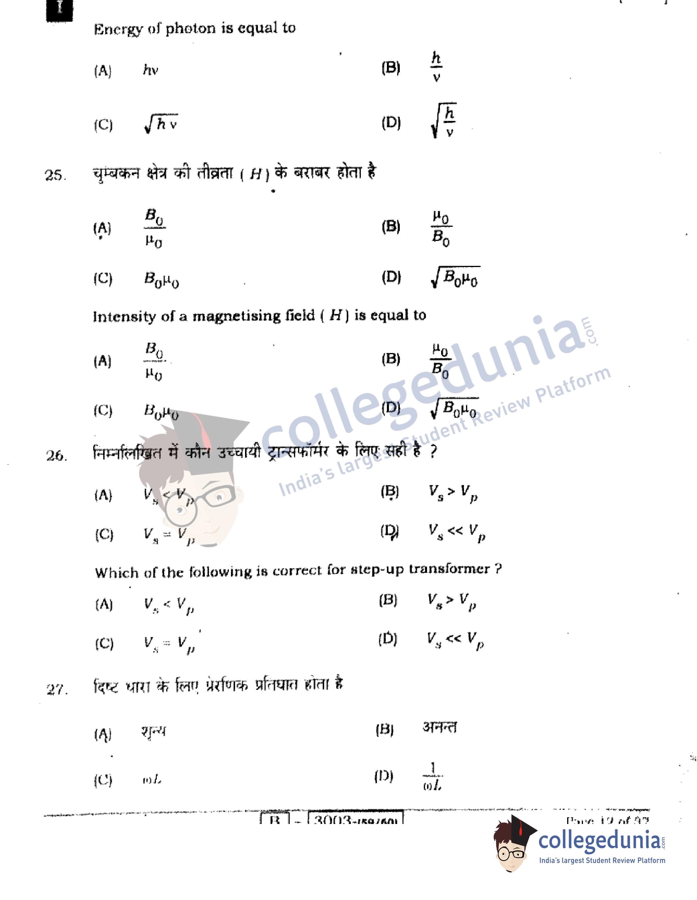 Bihar Board Class 12 Physics (Elective) Question Paper 2022 with Answer Key Set I is available for download. The exam was conducted by the BSEB . The medium of paper was English and Hindi. The question paper comprised a total of 96 questions divided among 2 sections.