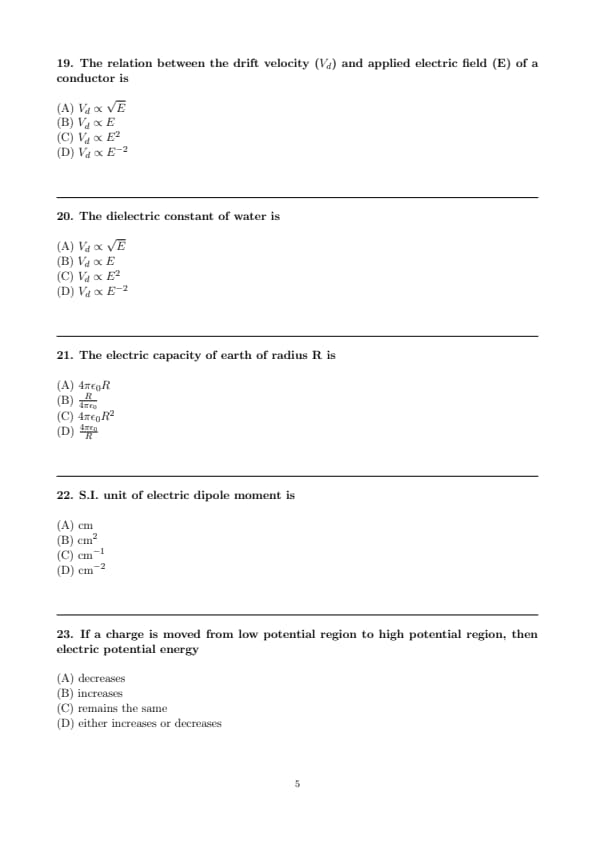 (C) \(\vec{E} = \frac{q}{\vec{F}}\): This is dimensionally and conceptually incorrect. It represents the reciprocal of force per unit charge.