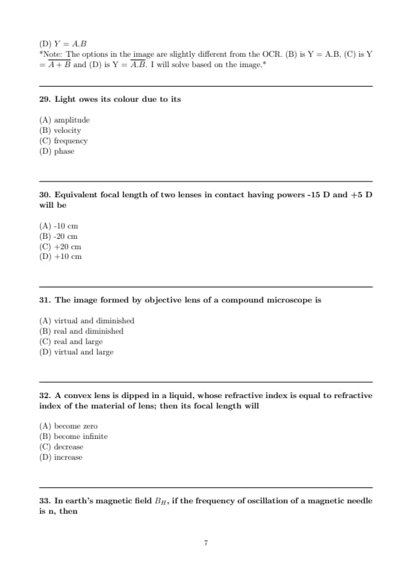 \end{quicktipbox Quick Tip: Always be careful with units. The formula \(f = 1/P\) gives the focal length in meters when the power is in diopters. Remember to convert to centimeters if the options require it (1 m = 100 cm).