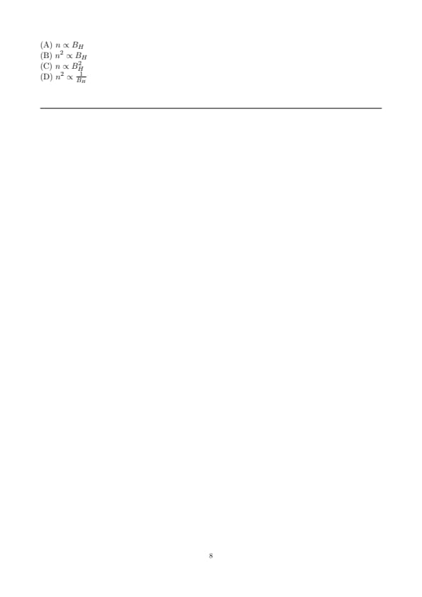 \[ n^2 \propto (\sqrt{B_H})^2 \] \[ n^2 \propto B_H \]