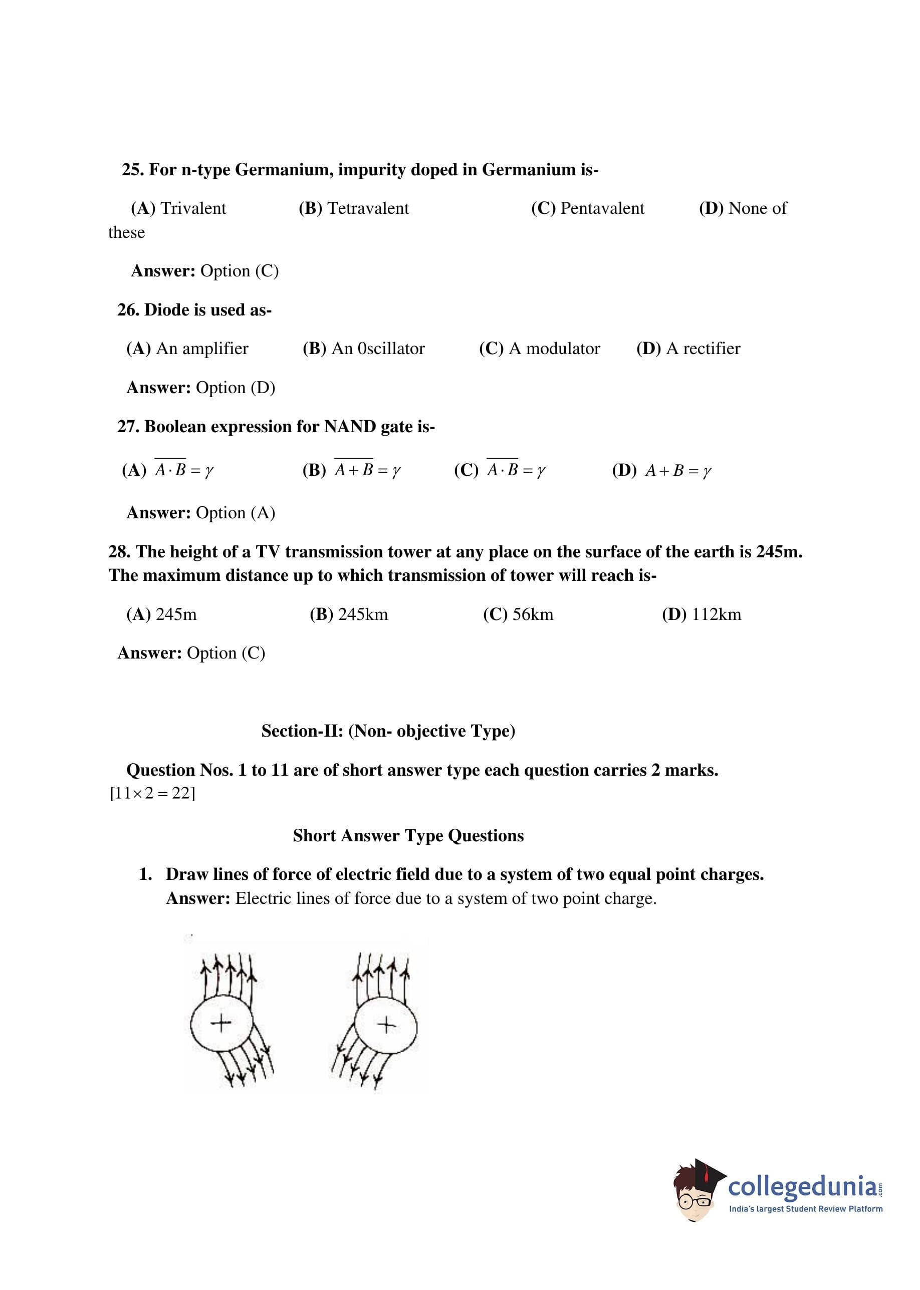 Bihar Board Class 12 Physics Question Paper 2016 with Answer Key is available for download. The exam was conducted by the BSEB on February 26 in the Morning Session 9:45 AM to 1 PM. The medium of paper was English. The question paper comprised a total of 39 questions divided among 2 sections.