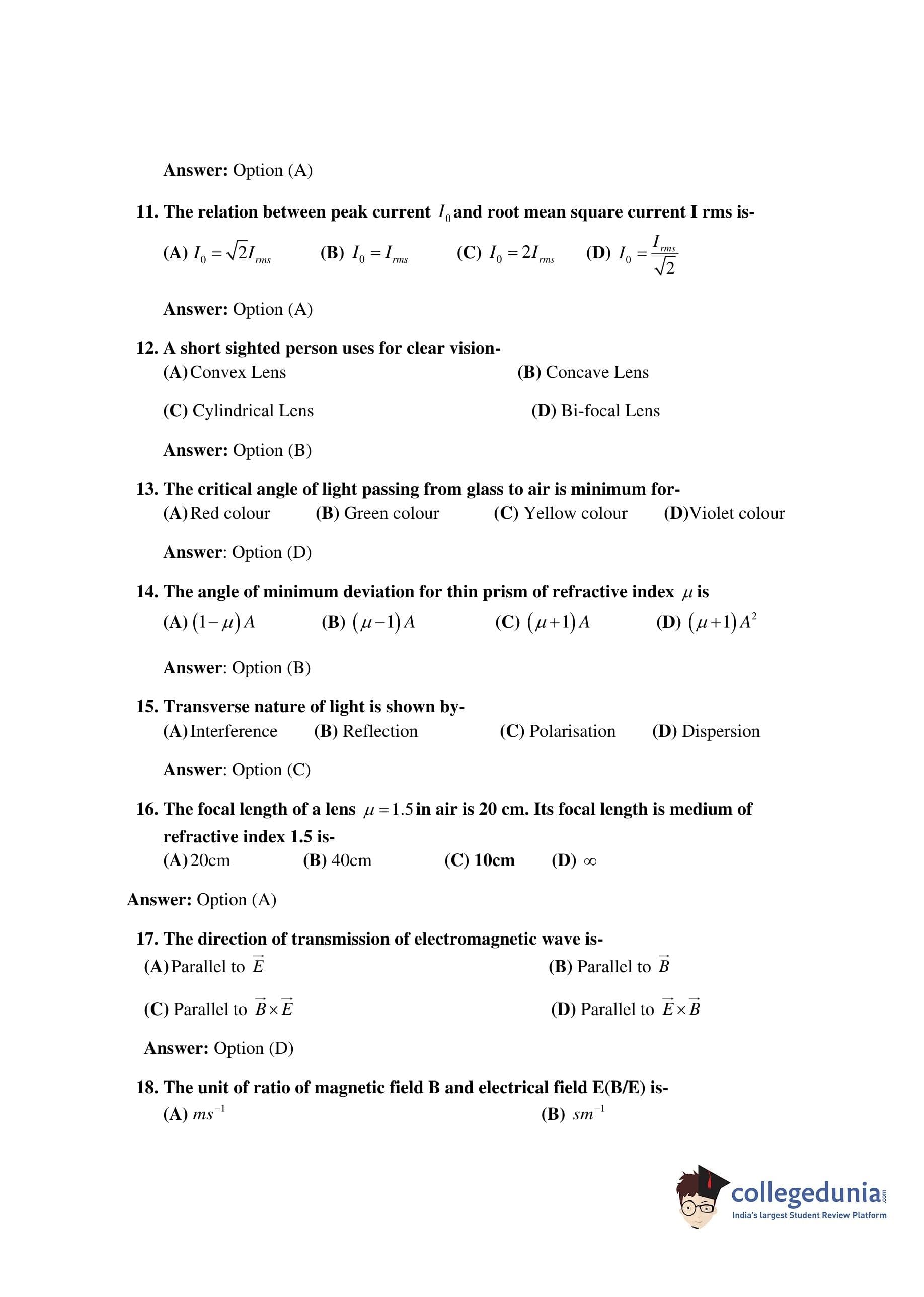 Bihar Board Class 12 Physics Question Paper 2017 with Answer Key is available for download. The exam was conducted by the BSEB on February 16 in the Morning Session 9:45 AM to 1 PM. The medium of paper was English. The question paper comprised a total of 56 questions divided among 2 sections.