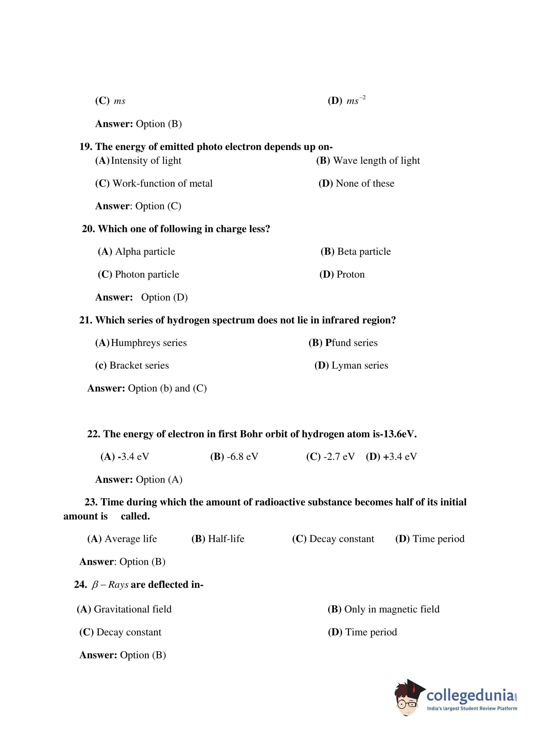 | Bihar Board Class 12 Physics Question Paper 2017 PDF | Bihar Board Class 12 Physics Answer Key 2017 PDF |