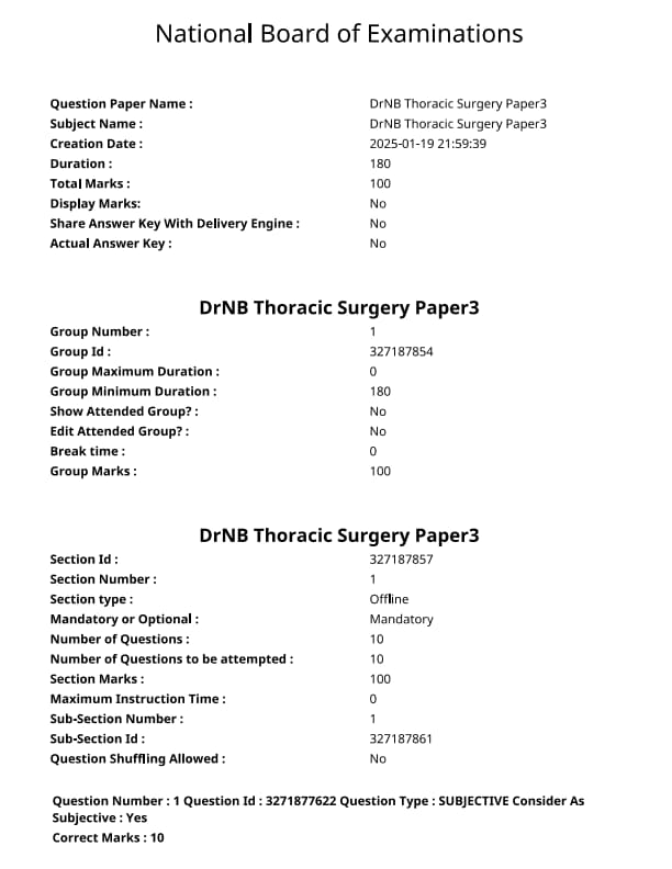 NEET SS 2024 DrNB Thoracic Surgery Paper 3 Question Paper with Solutions