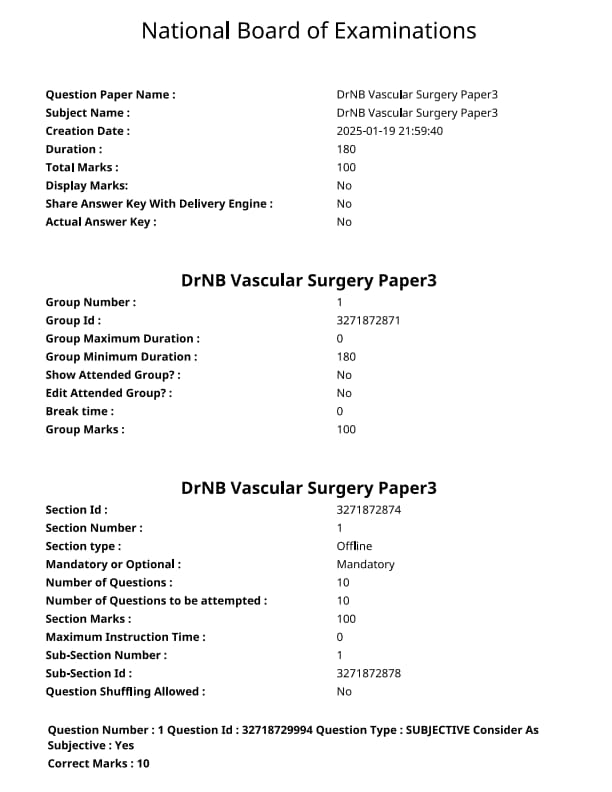 | NEET SS 2024 DrNB Vascular Surgery Paper 3 Question Paper | Check Solutions |