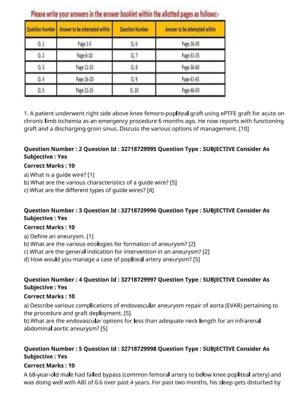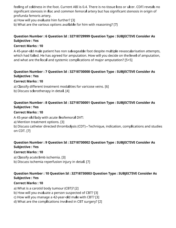 NEET SS 2024 DrNB Vascular Surgery Paper 3 Question Paper with Solutions