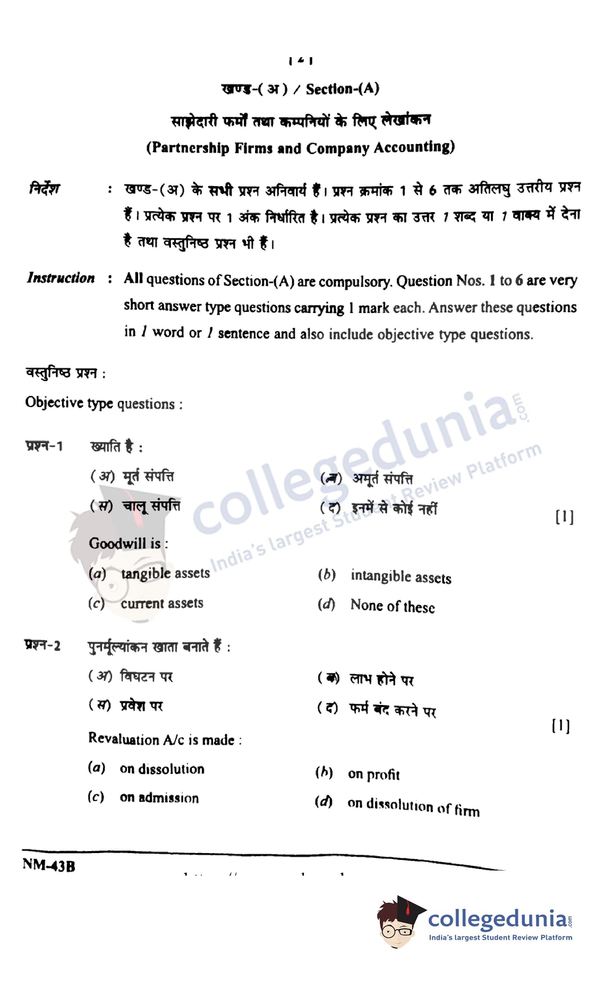 CGBSE Class 12 Accountancy Set B Question Paper 2021 with Answer Key (May 12)