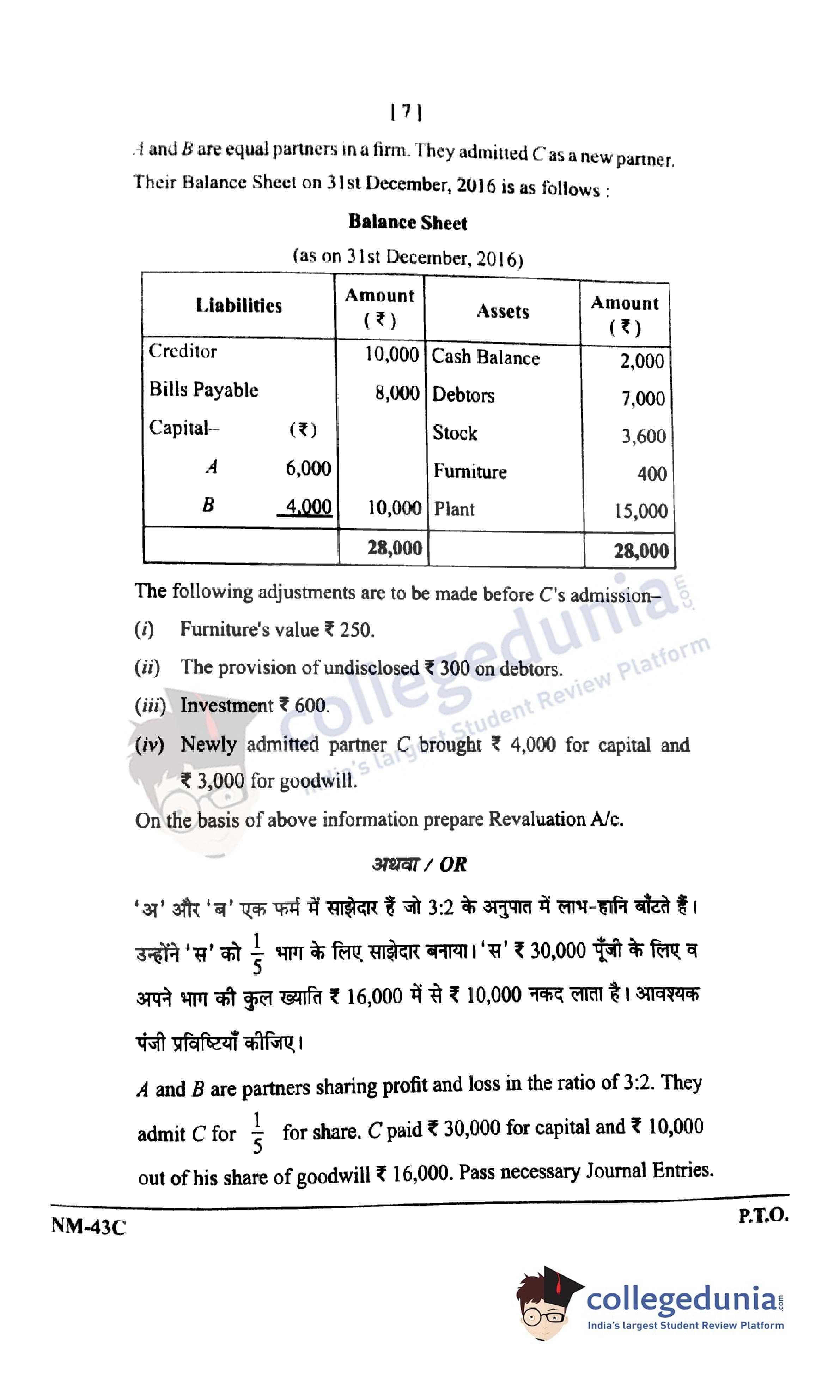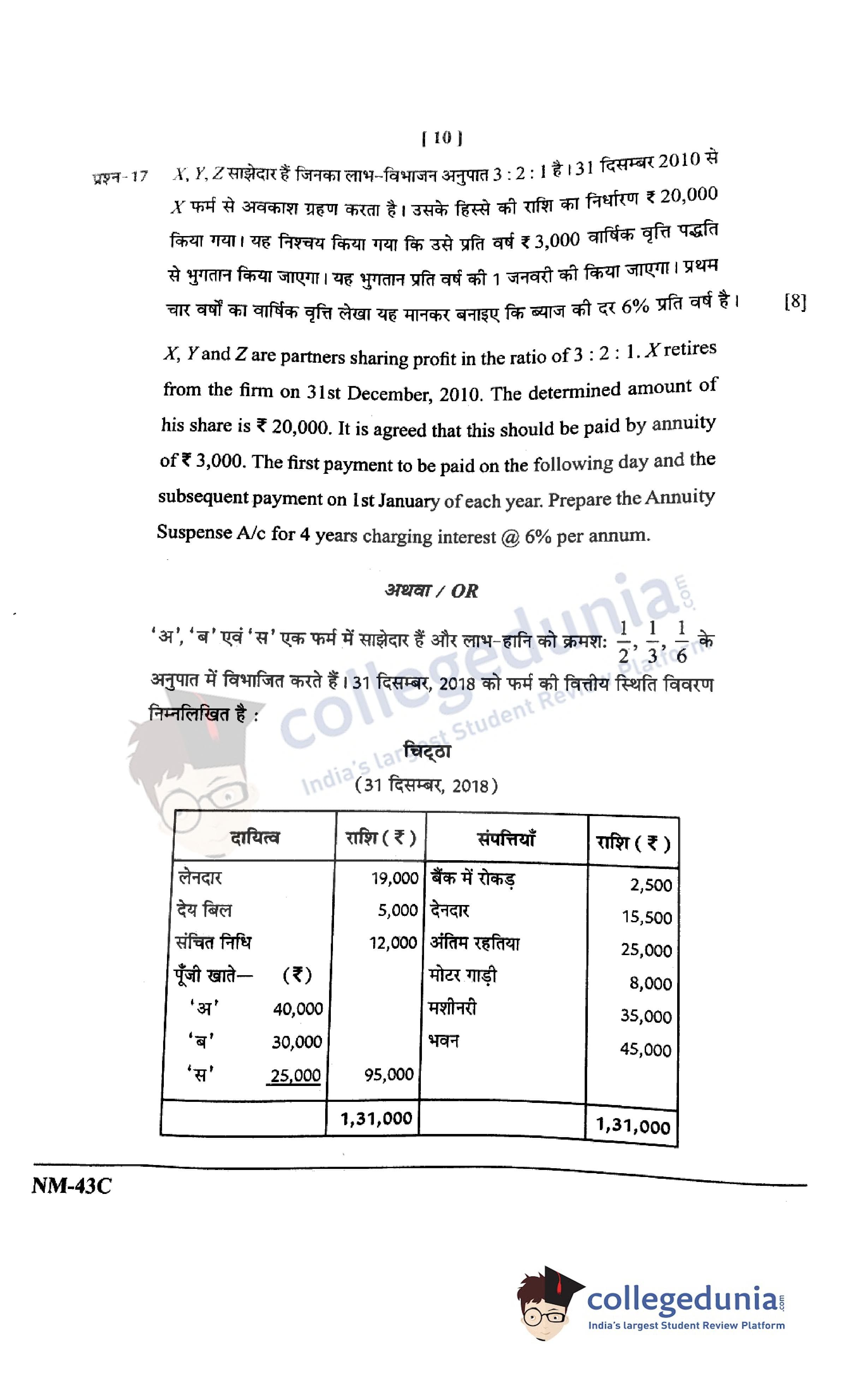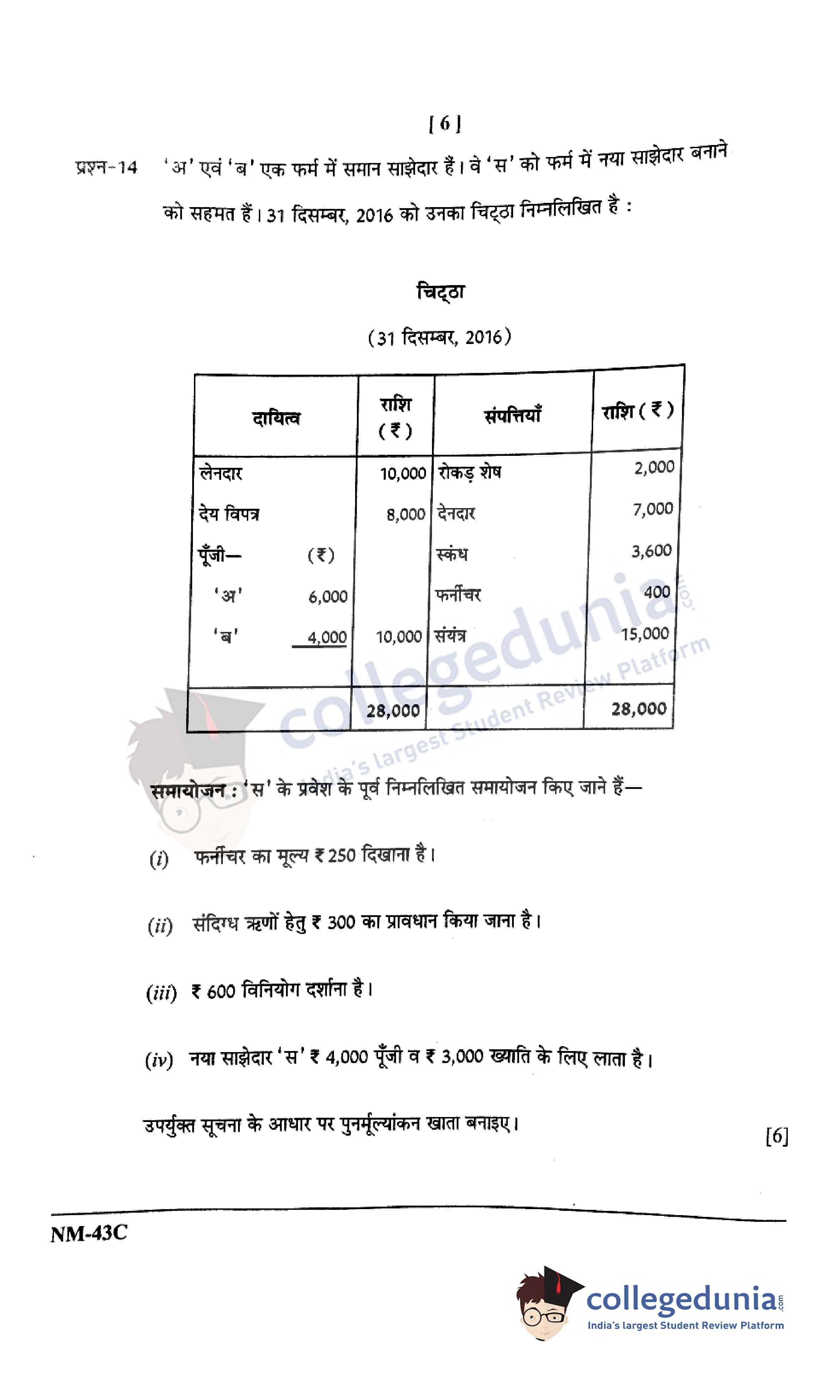 CGBSE Class 12 Accountancy Set C Question Paper 2021 with Answer Key (May 12)