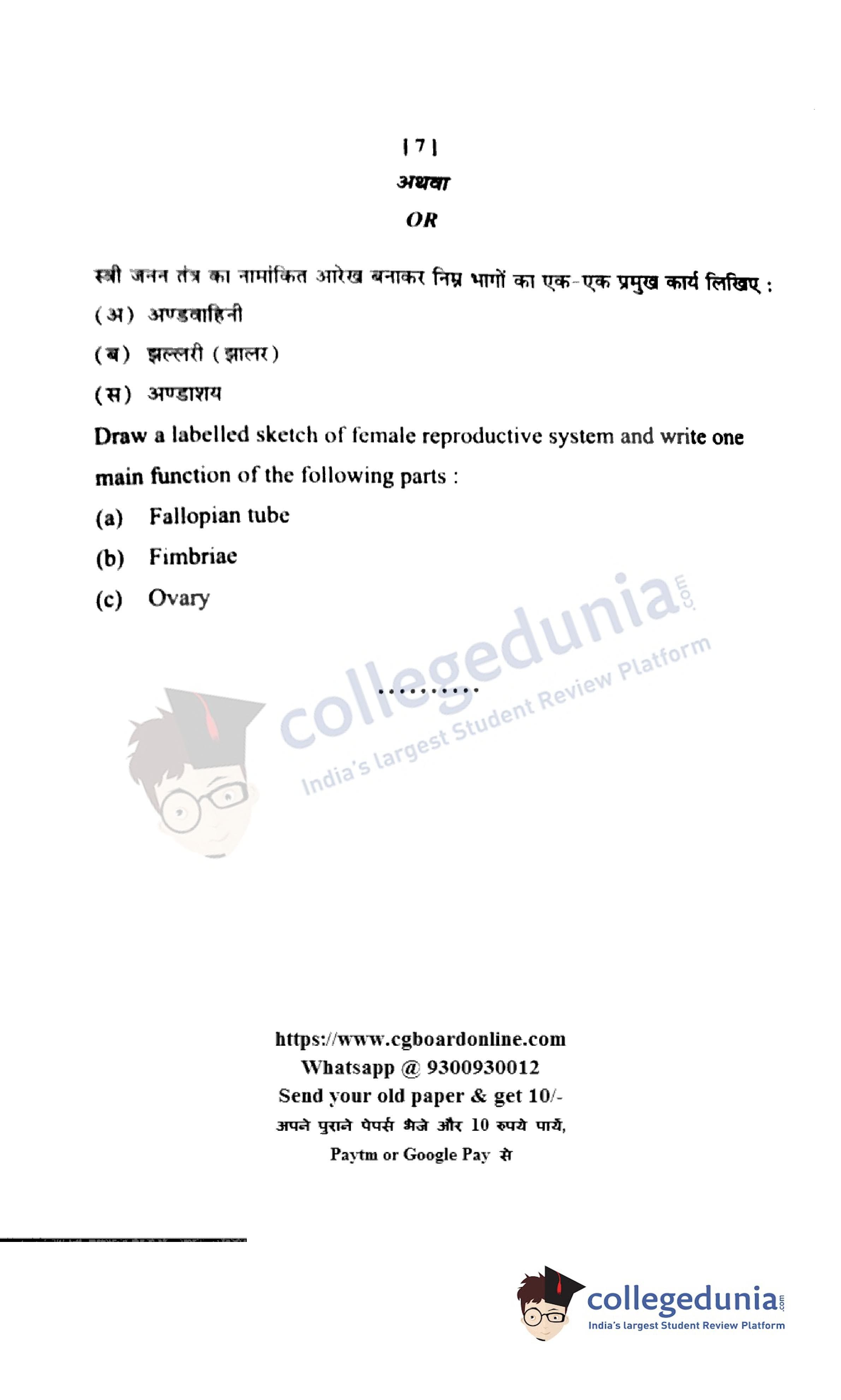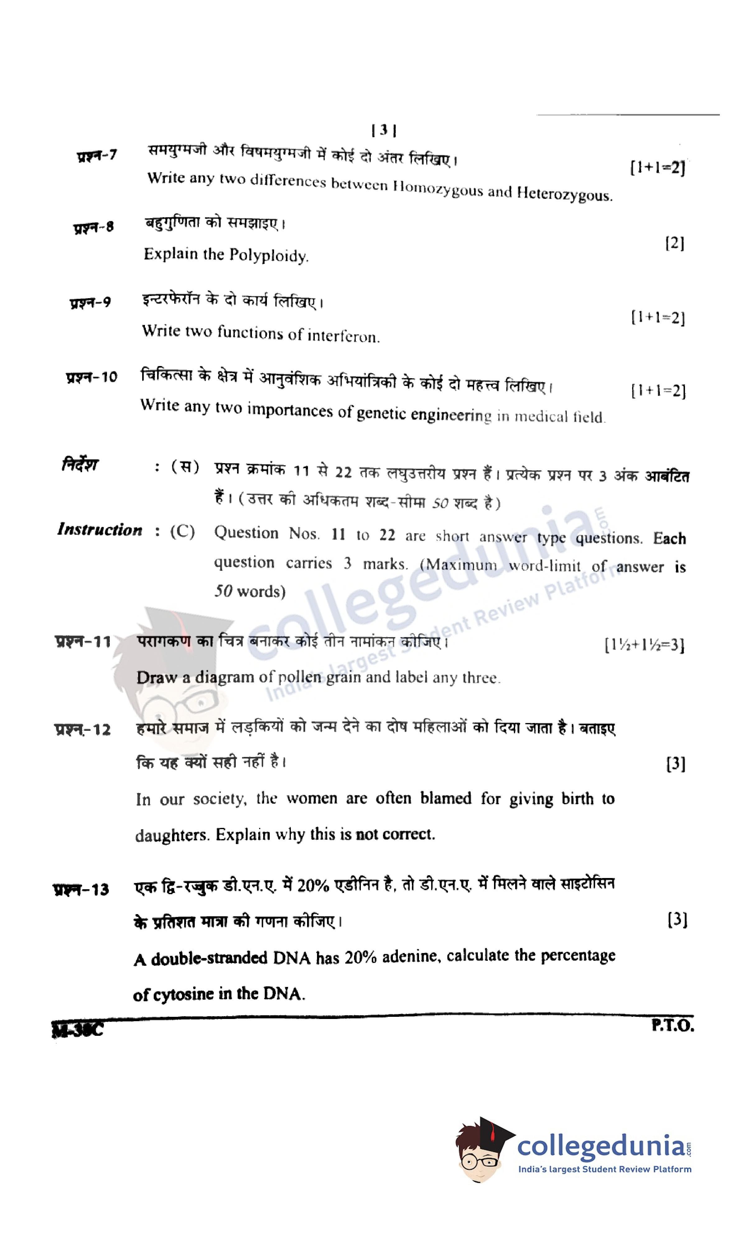 CGBSE Class 12 Biology Set C Question Paper 2022 with Answer Key (March 11)