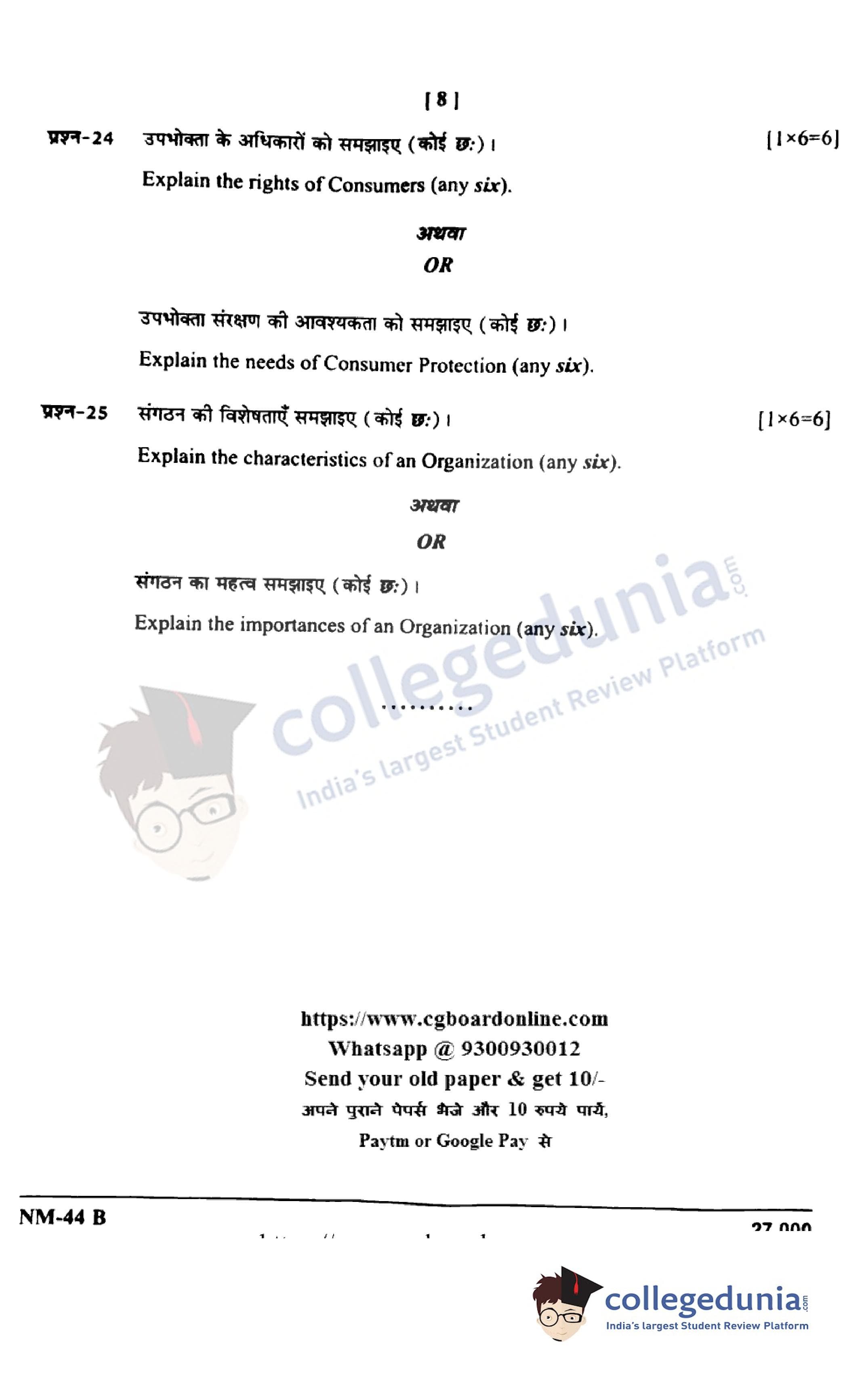 | CGBSE Class 12 Business Studies Question Paper 2021 PDF | CGBSE Class 12 Business Studies Answer Key 2021 PDF |