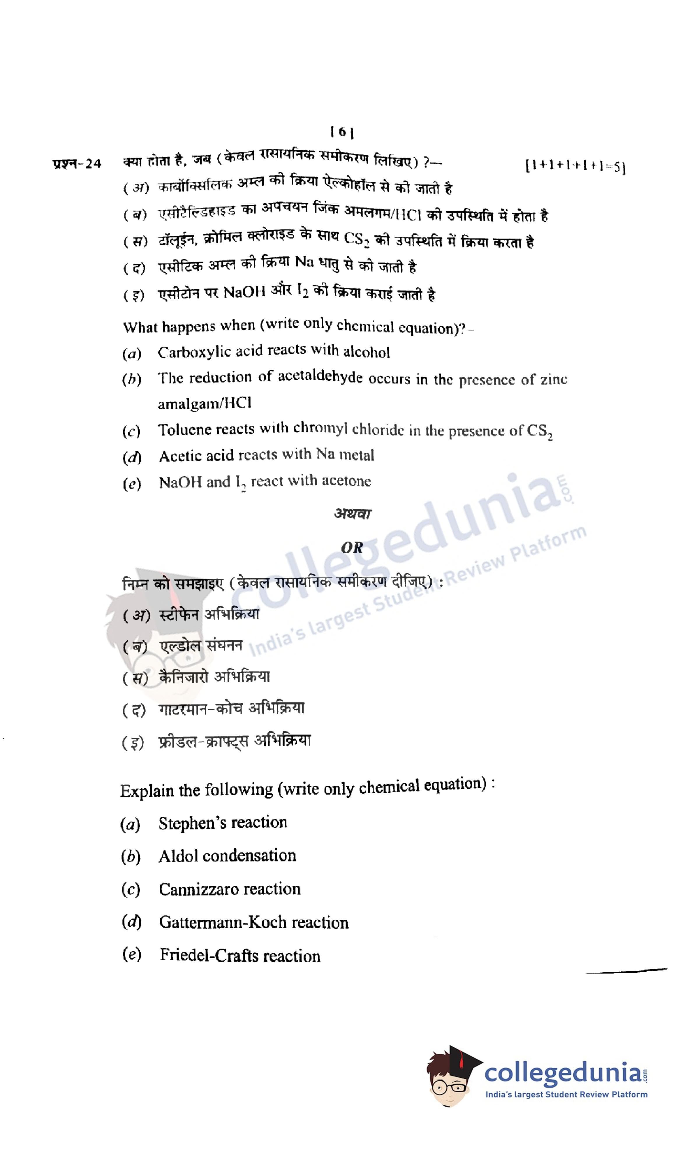 CGBSE Class 12 Chemistry Set A Question Paper 2022 with Answer Key (March 24)