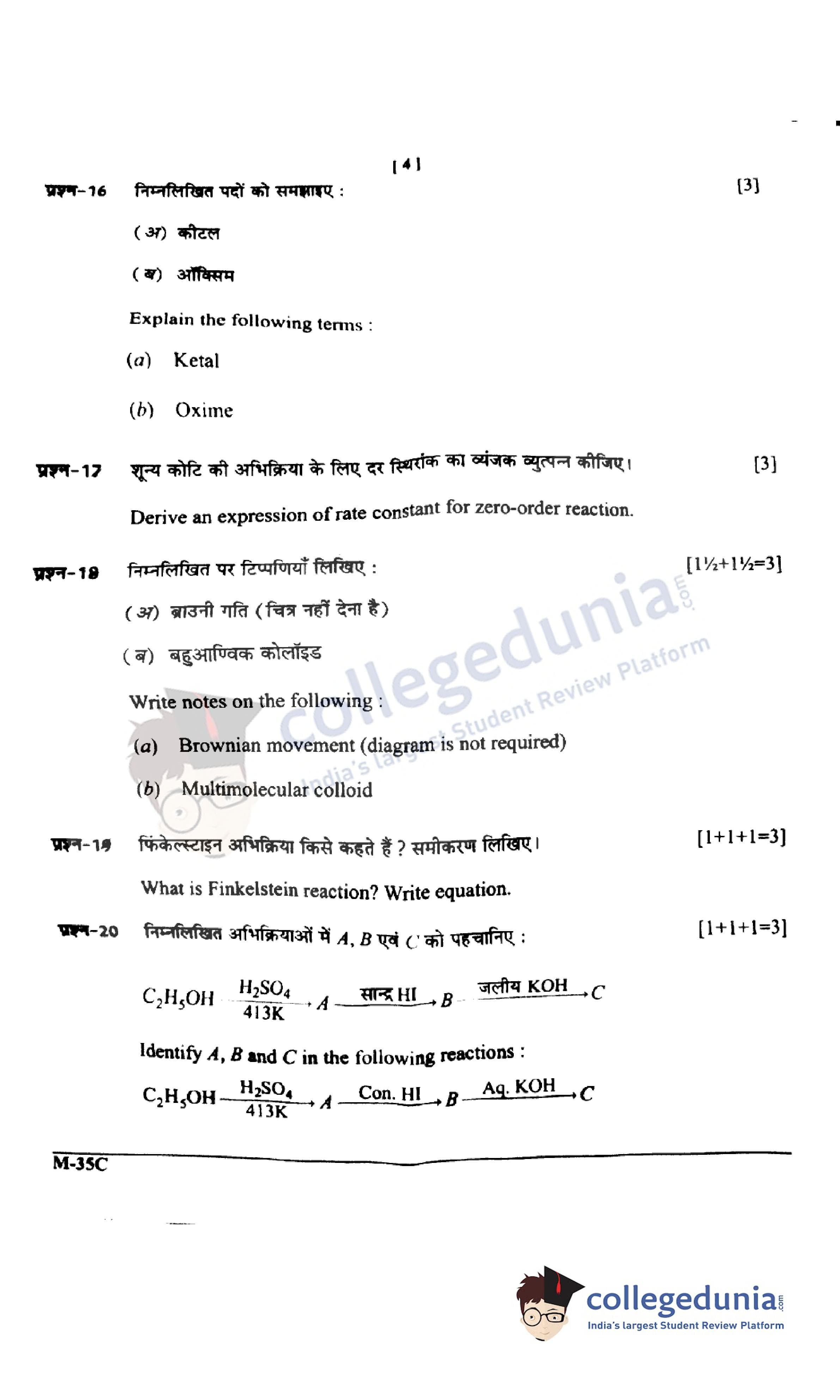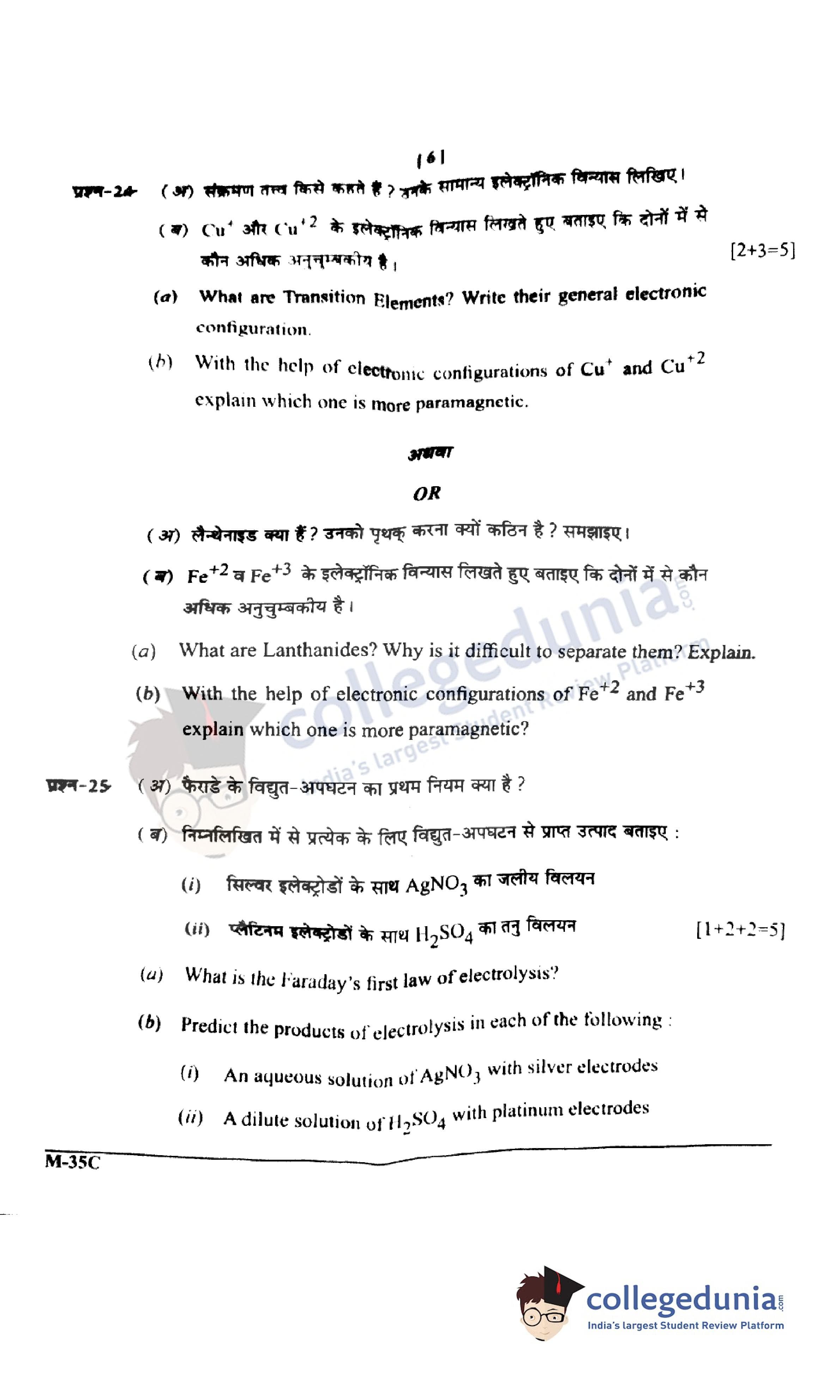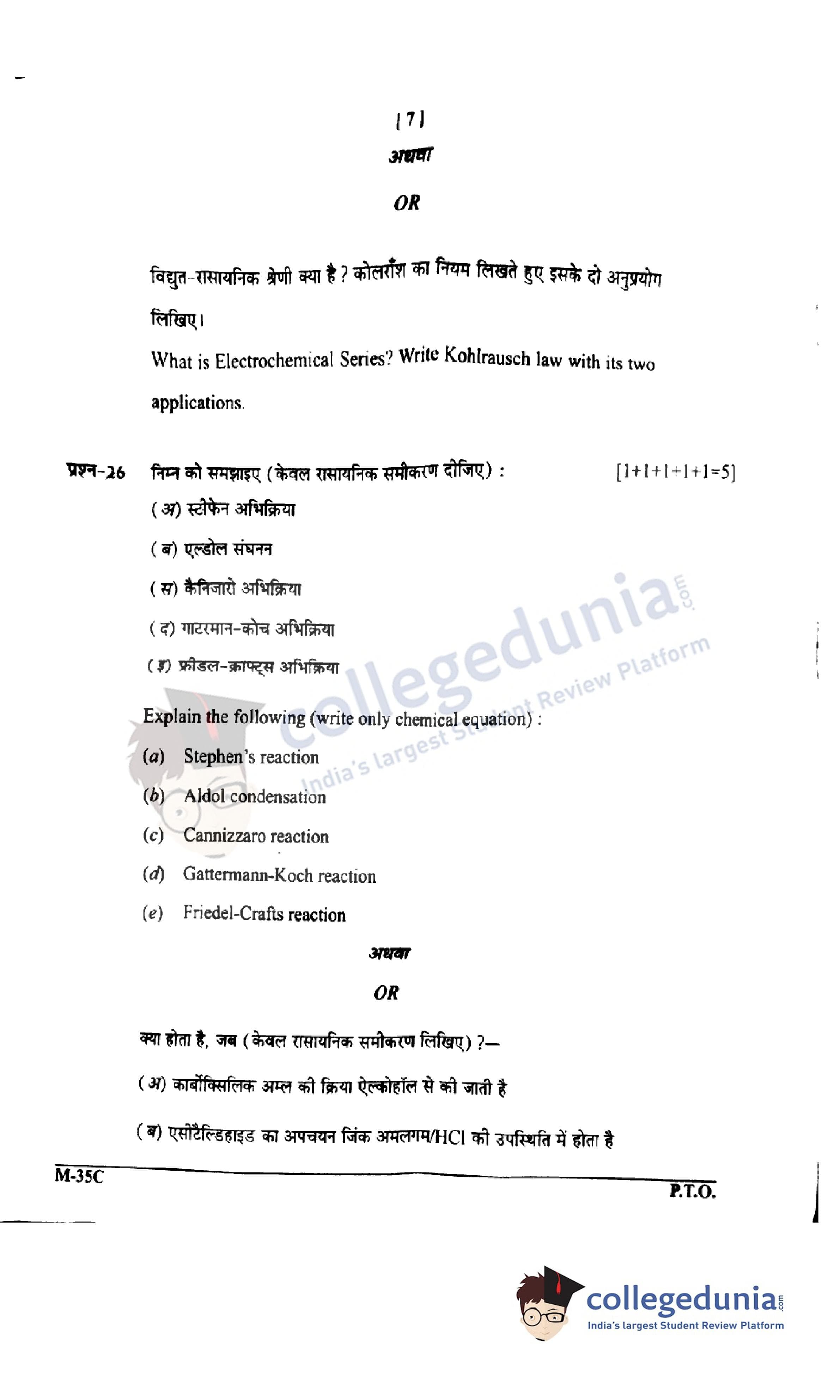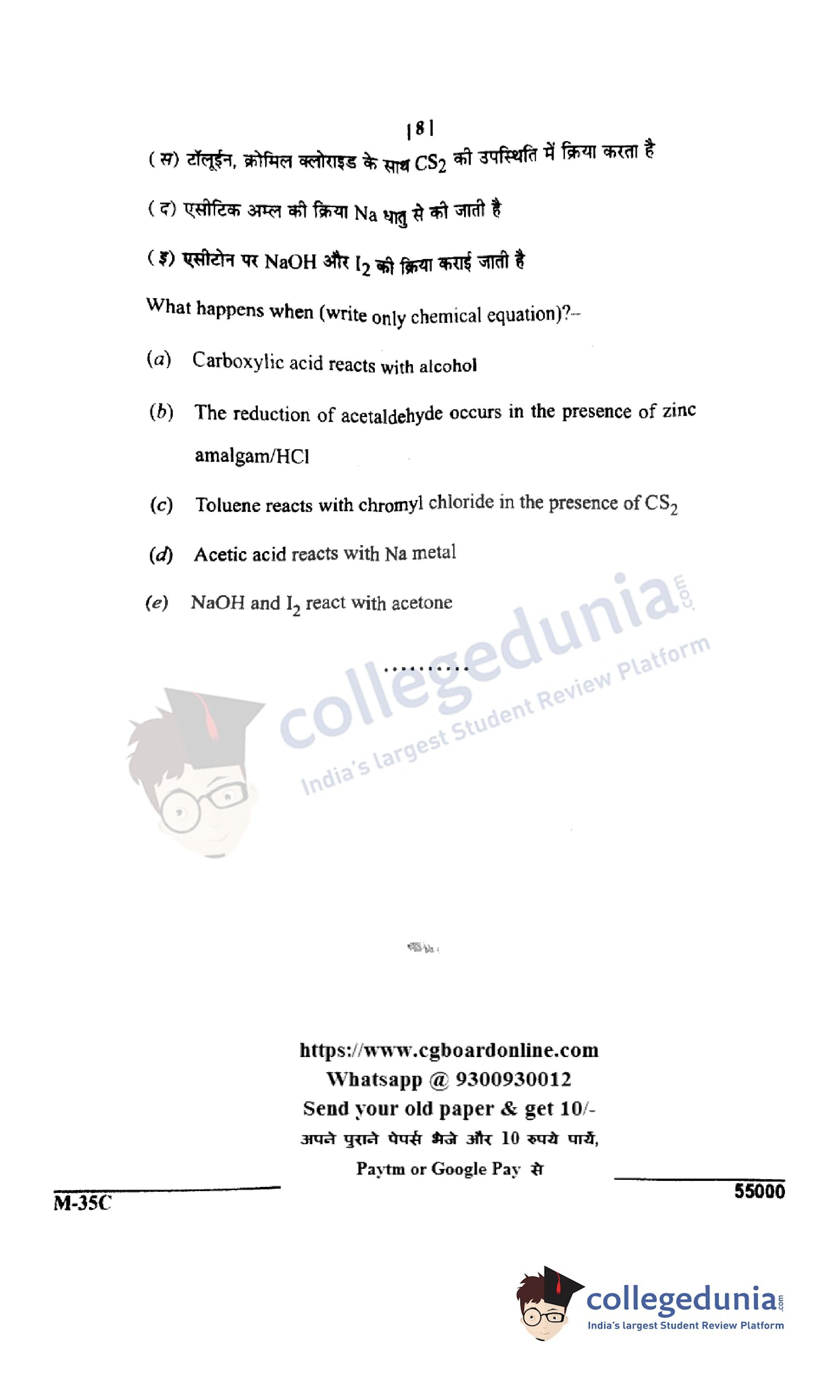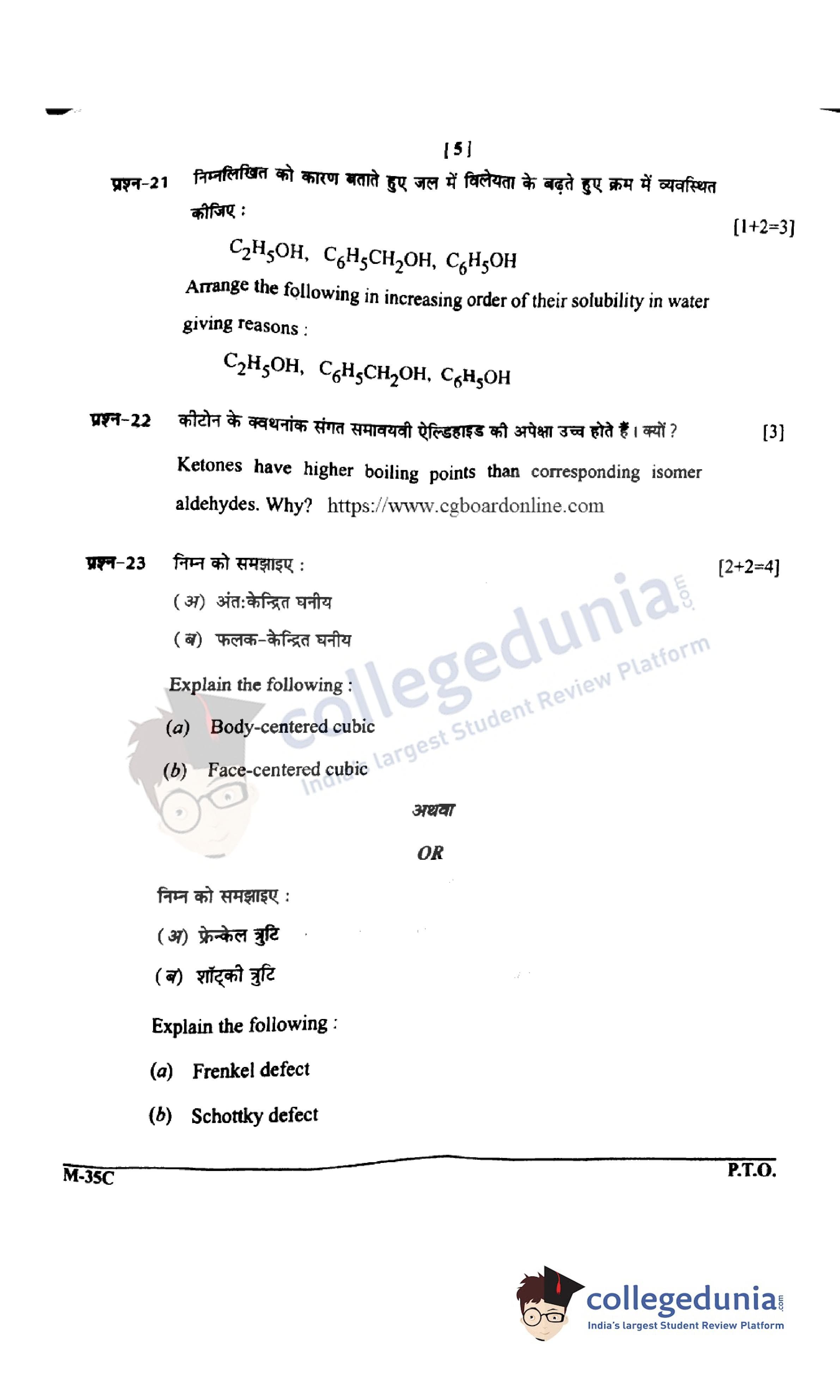 CGBSE Class 12 Chemistry Set C Question Paper 2022 with Answer Key (March 24)