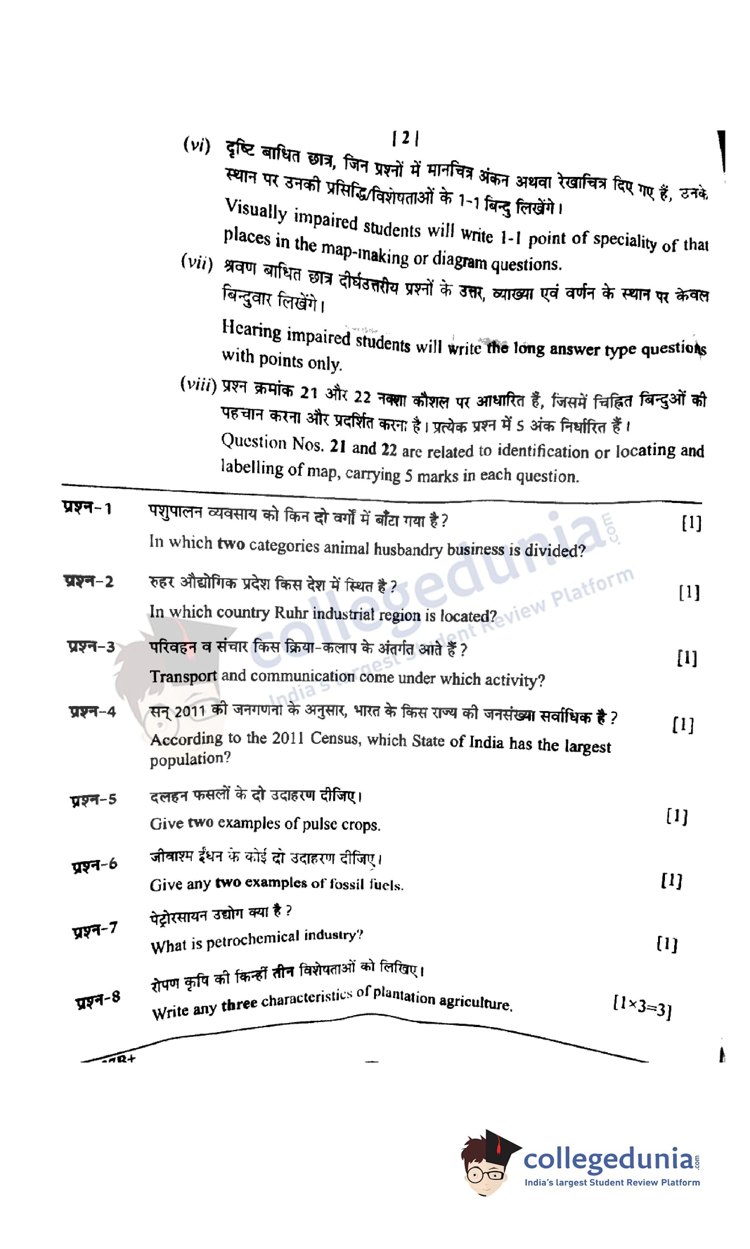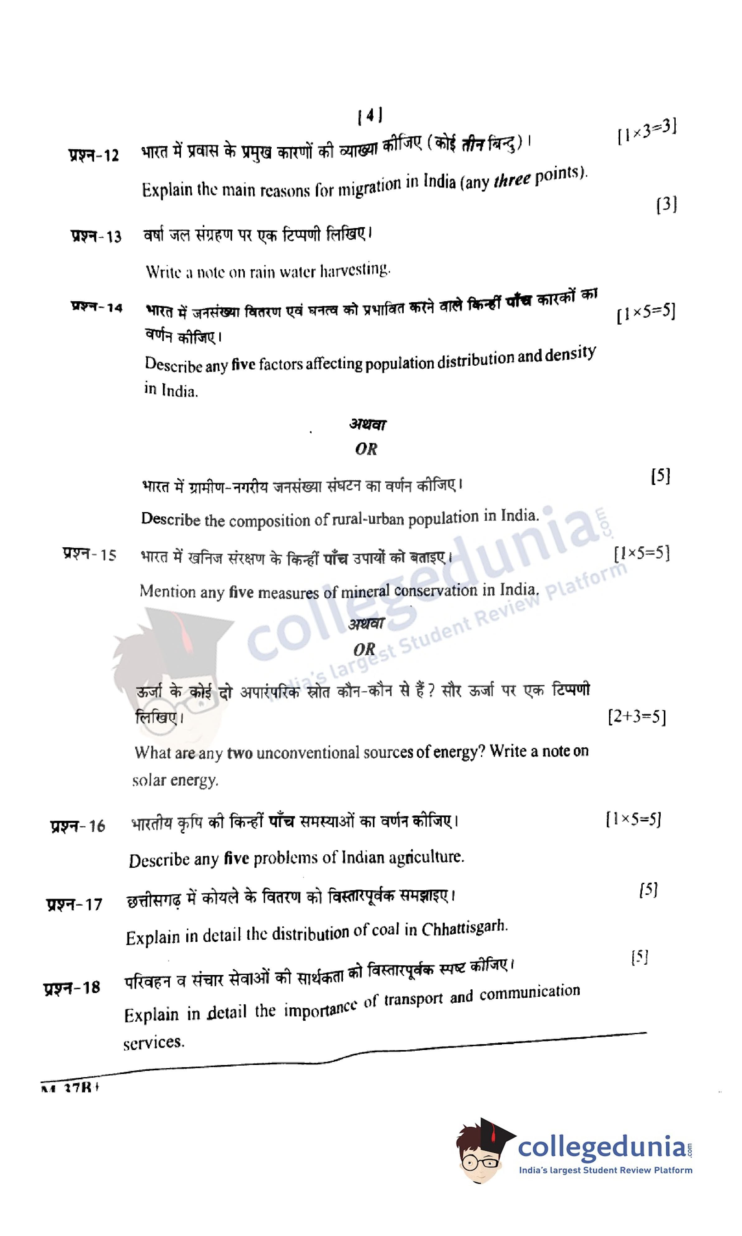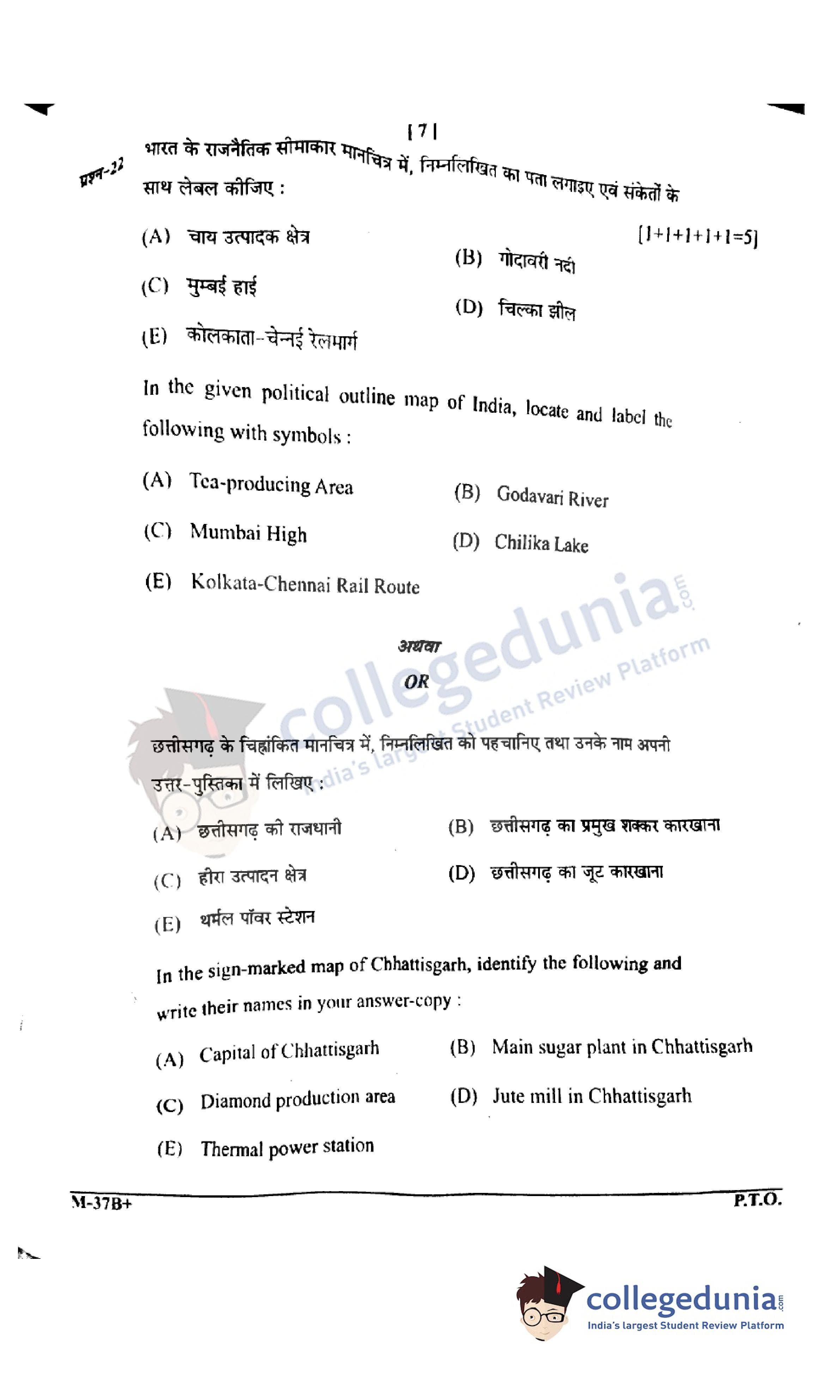 CGBSE Class 12 Geography Set B Question Paper 2022 with Answer Key (March 16)