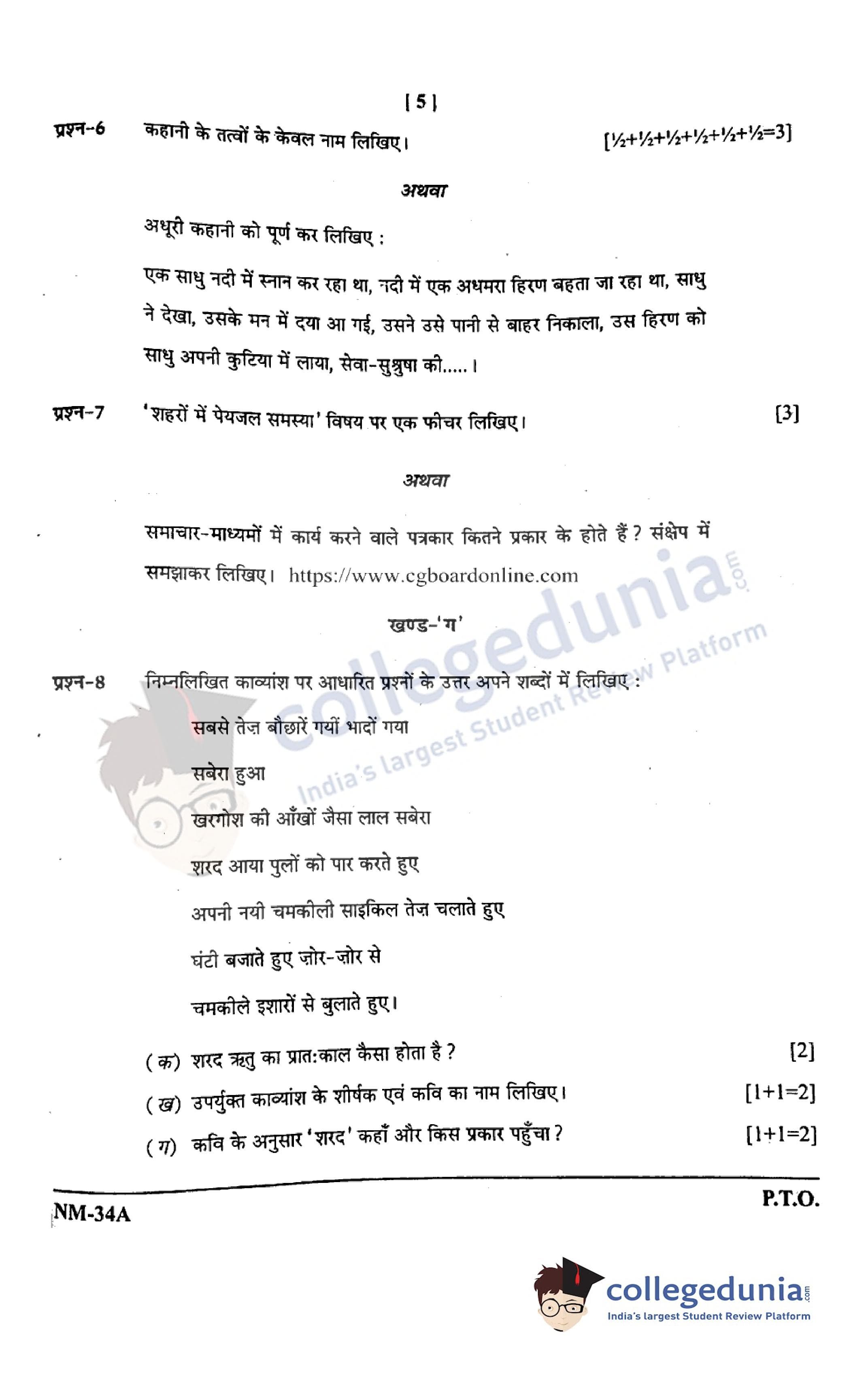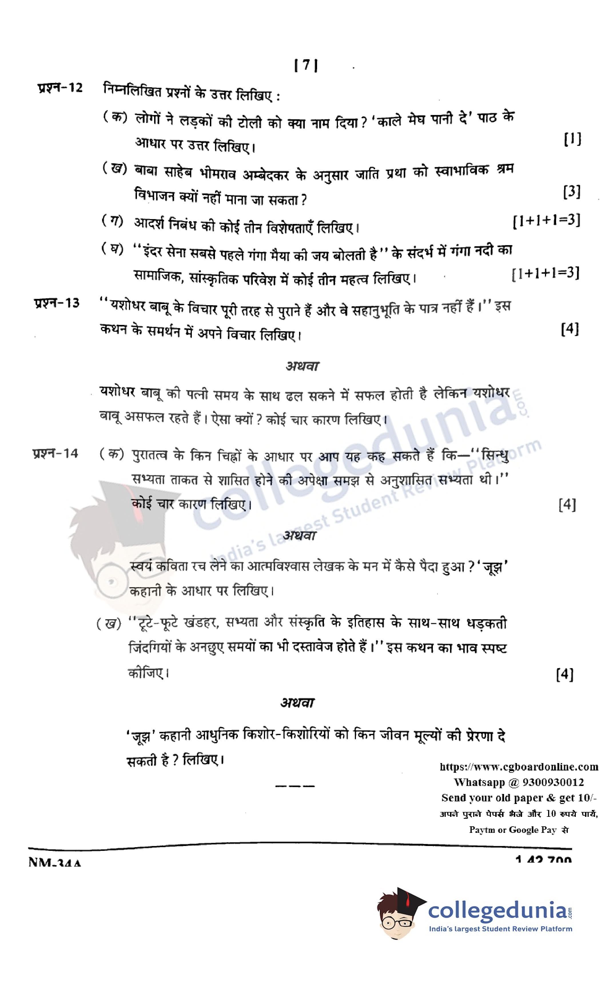 | CGBSE Class 12 Hindi Question Paper 2021 PDF | CGBSE Class 12 Hindi Answer Key 2021 PDF |