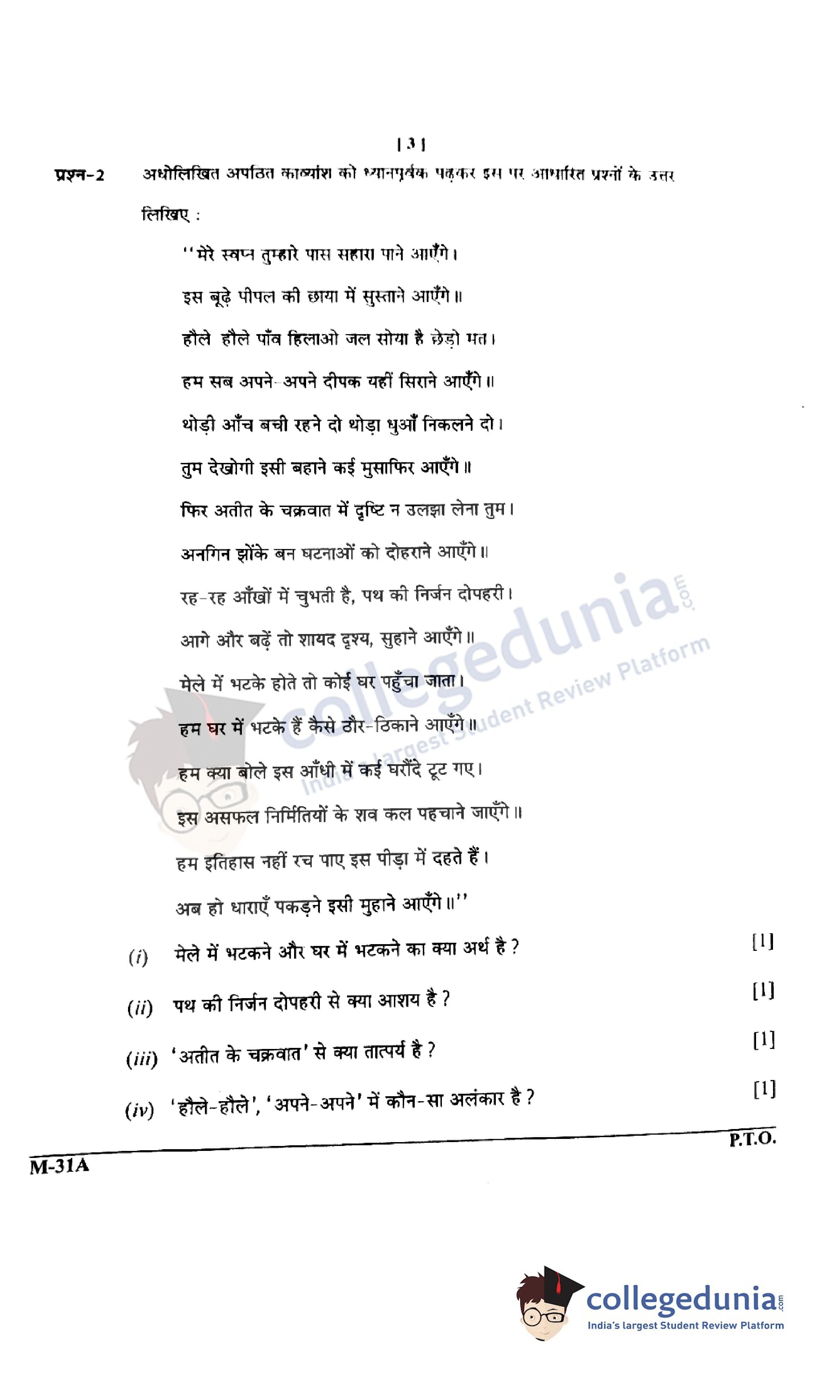 CGBSE Class 12 Hindi Question Paper 2022 with Answer Key Set A is available for download. The exam was conducted by the CGBSE of Secondary Education (CGBSE) on March 2, 2022 in the Morning Session 9:15 AM to 12:15 PM. The medium of paper was Hindi. The question paper comprised a total of 14 questions divided among 3 sections.