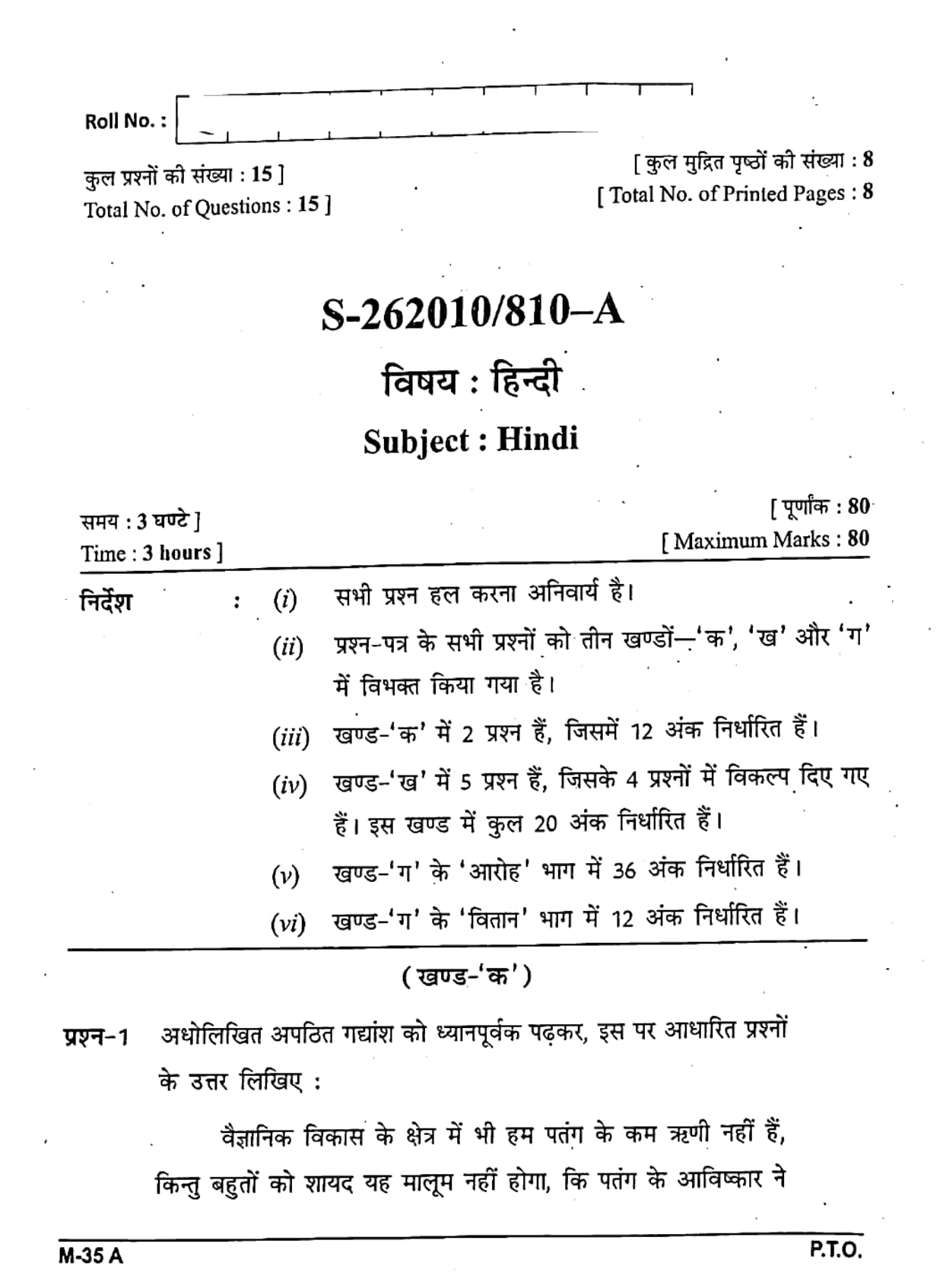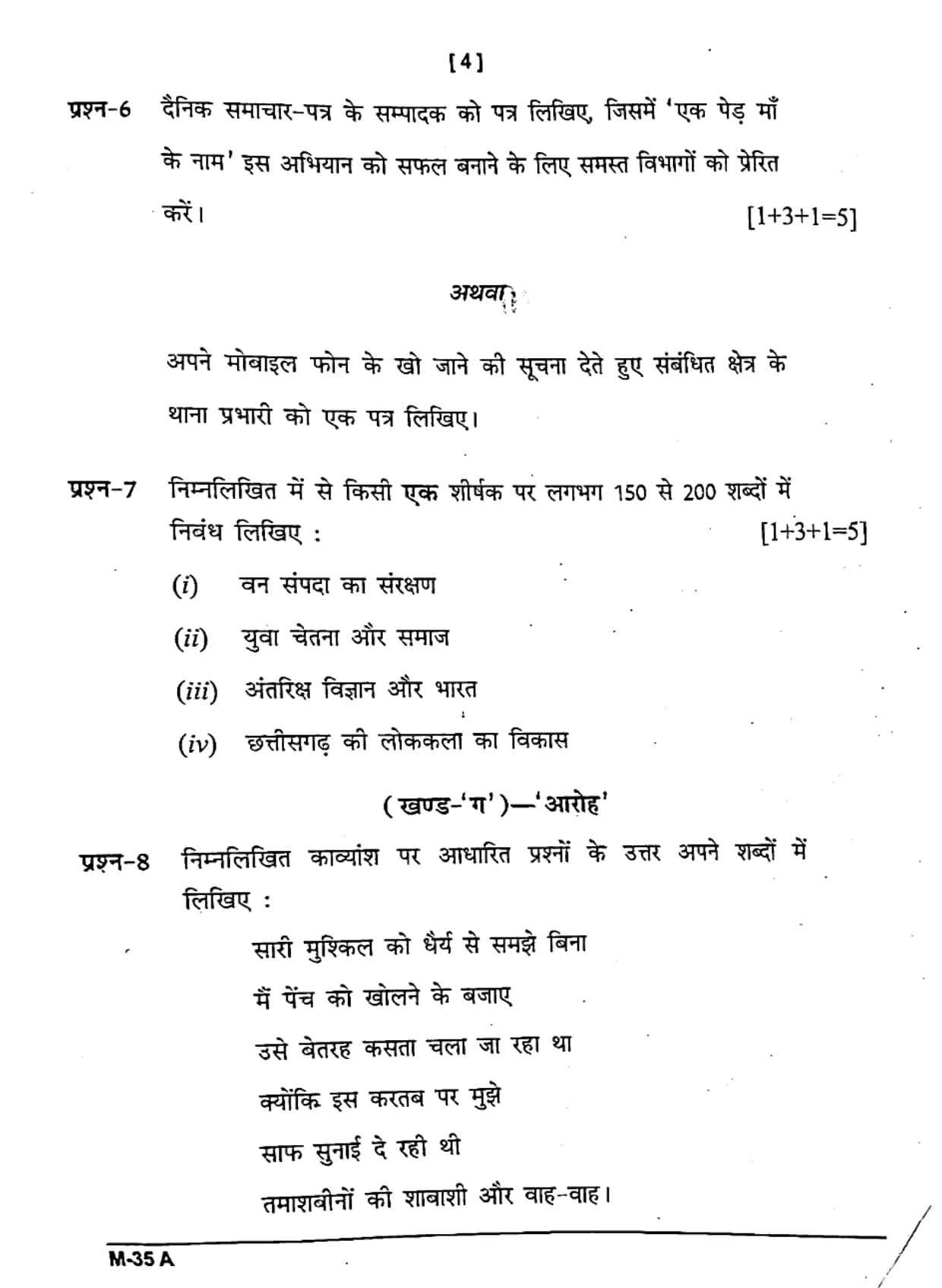 The Chhattisgarh Board Class 12 Hindi (First Language) paper covered key topics from Hindi literature, poetry, grammar, and composition. Students should focus on understanding literary works, improving grammar and vocabulary, and practicing structured writing. The exam is marked out of 100, with 80 marks for the theory paper and 20 for internal assessment and project work.