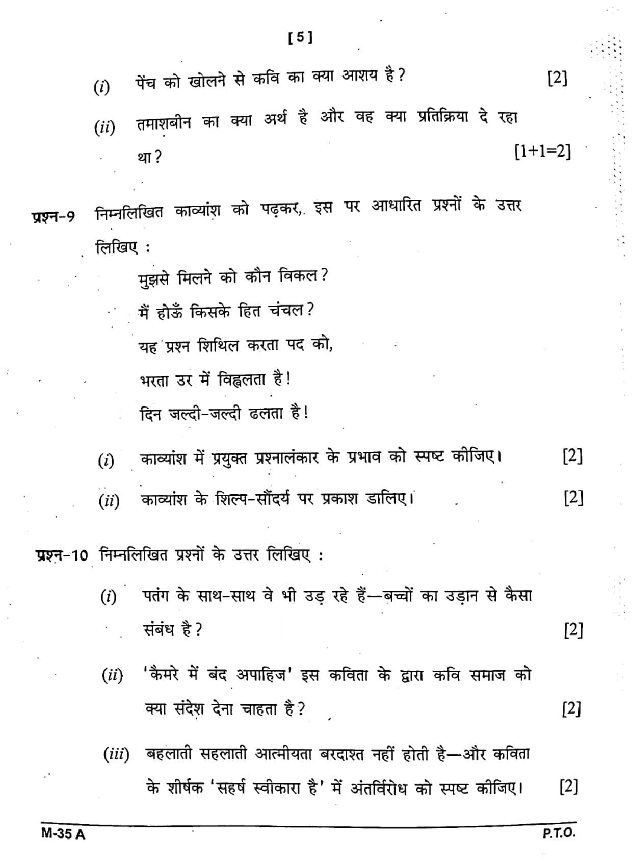 अधोलिखित अपठित काव्यांश को ध्यानपूर्वक पढ़कर, संबंधित प्रश्नों के उत्तर लिखिए :