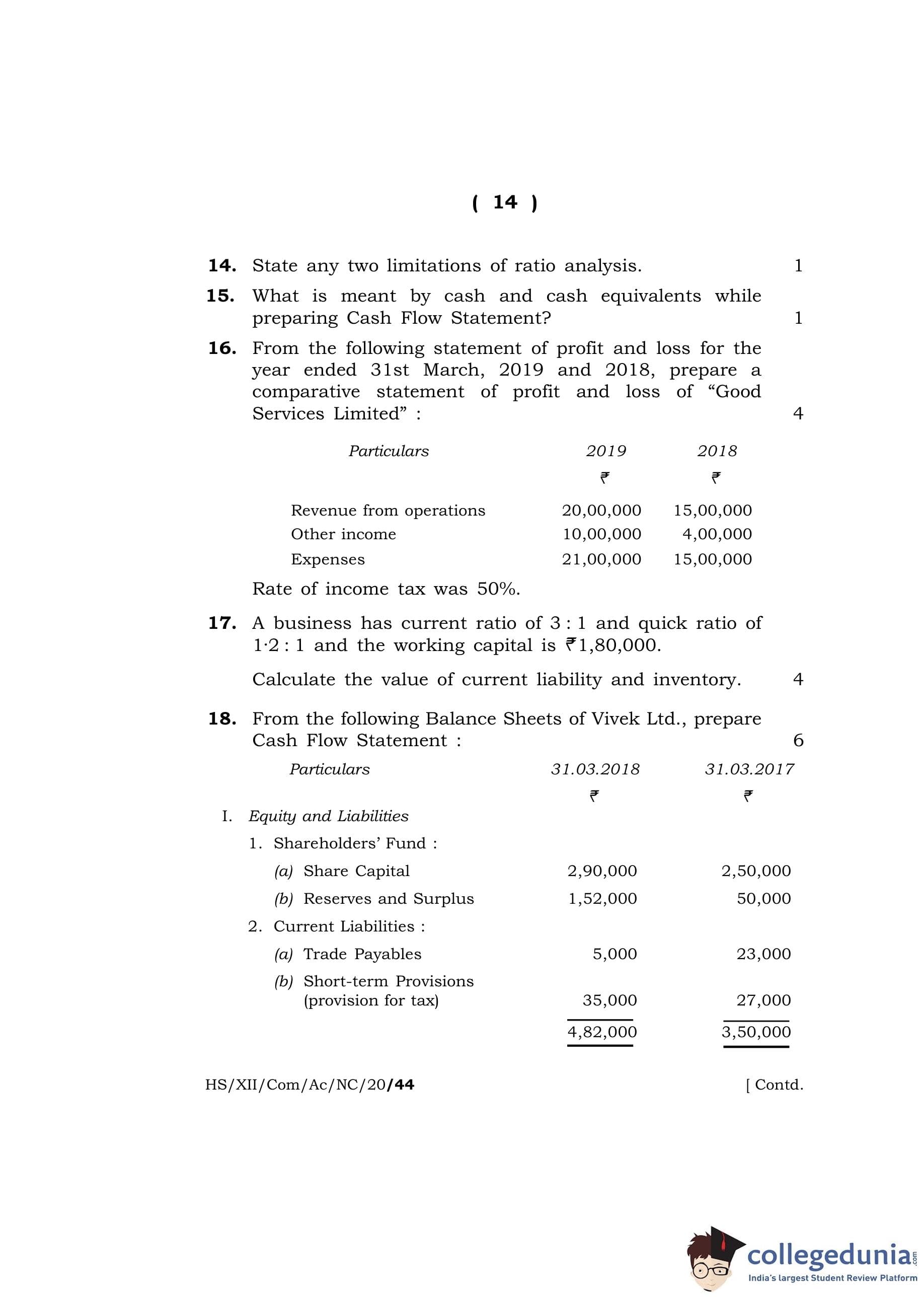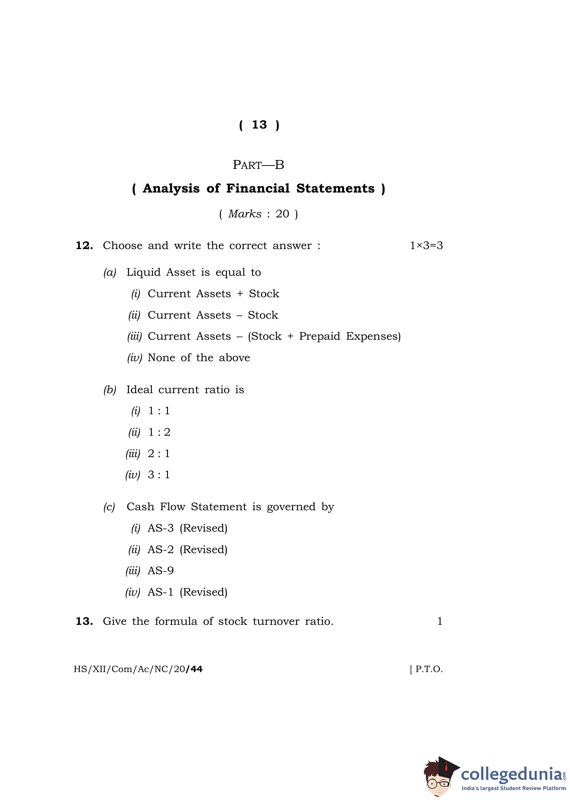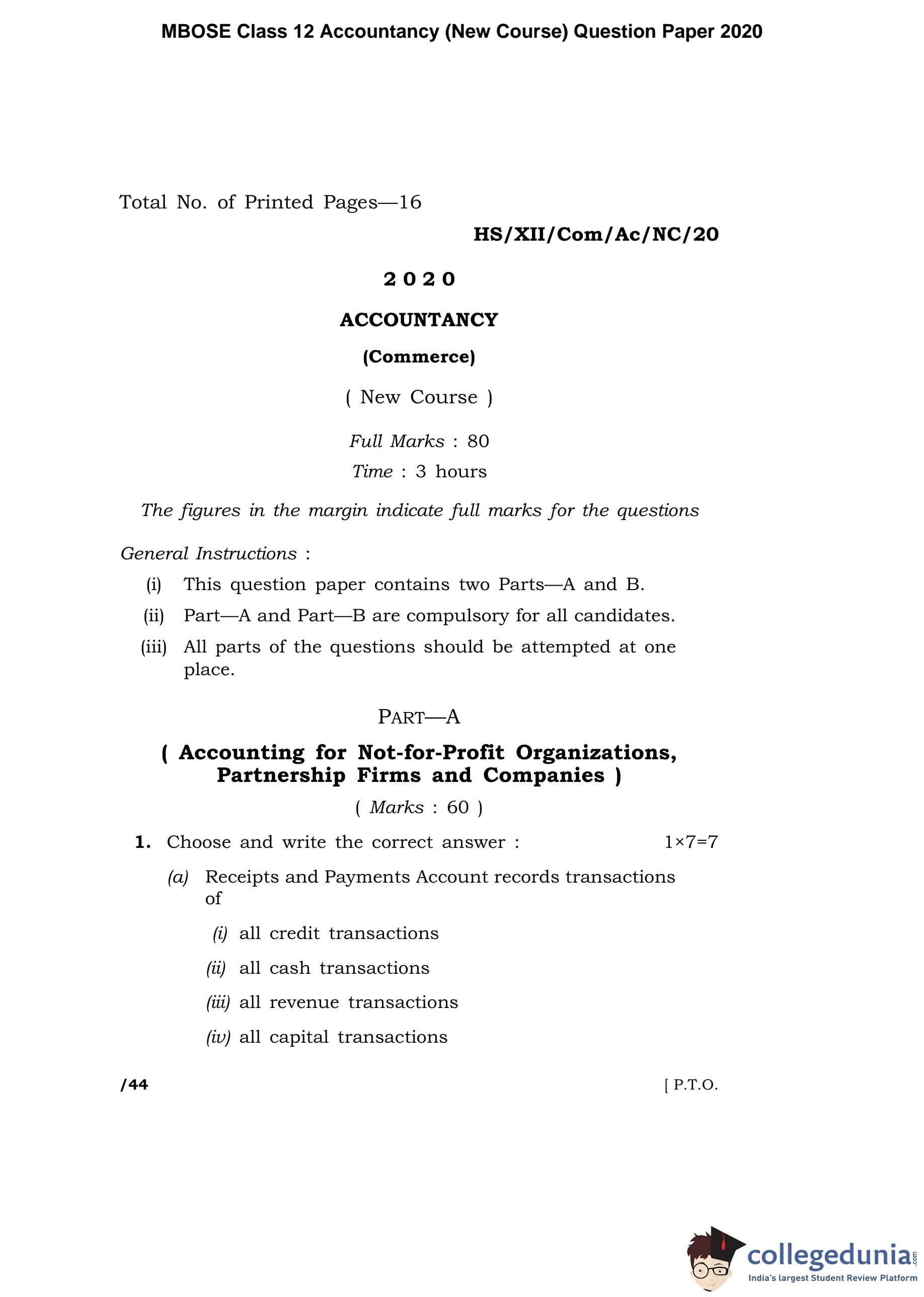MBOSE Class 12 Accountancy (New Course) Question Paper 2020 with Answer Key pdf is available for download here. The exam was conducted by Meghalaya Board of School Education on March 6, 2020 in the Morning Session 10 AM to 1 PM. The question paper comprised a total of 18 questions divided among 2 sections.