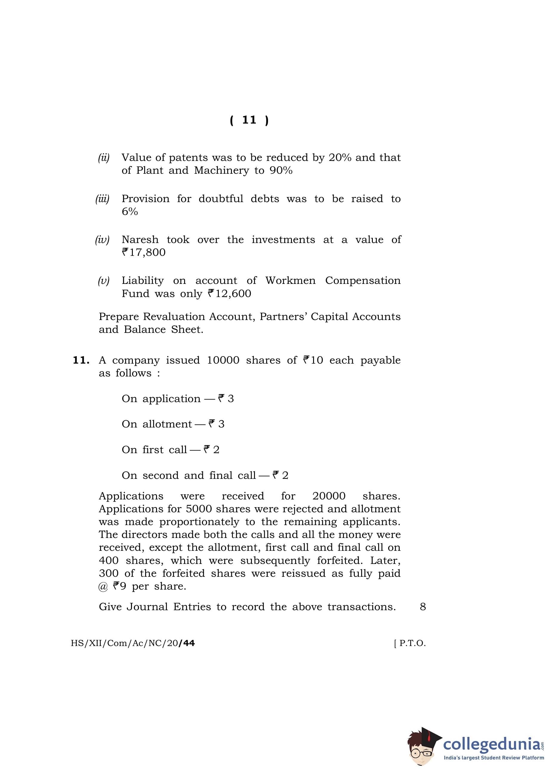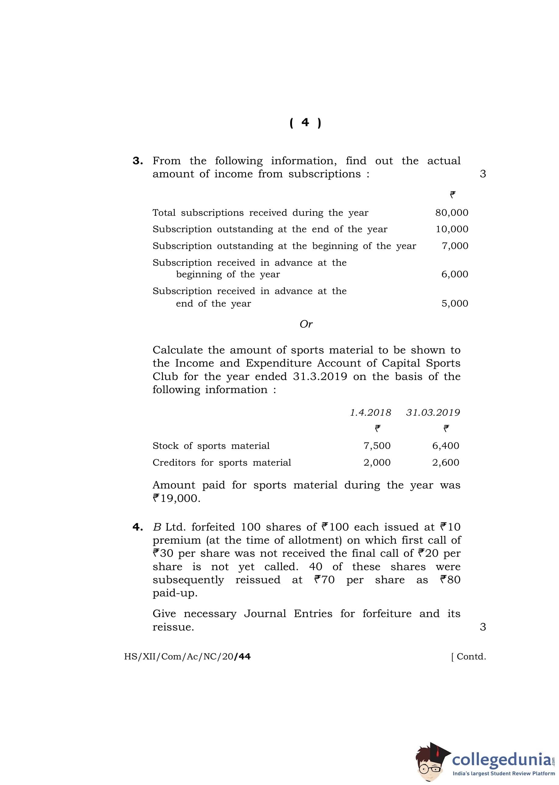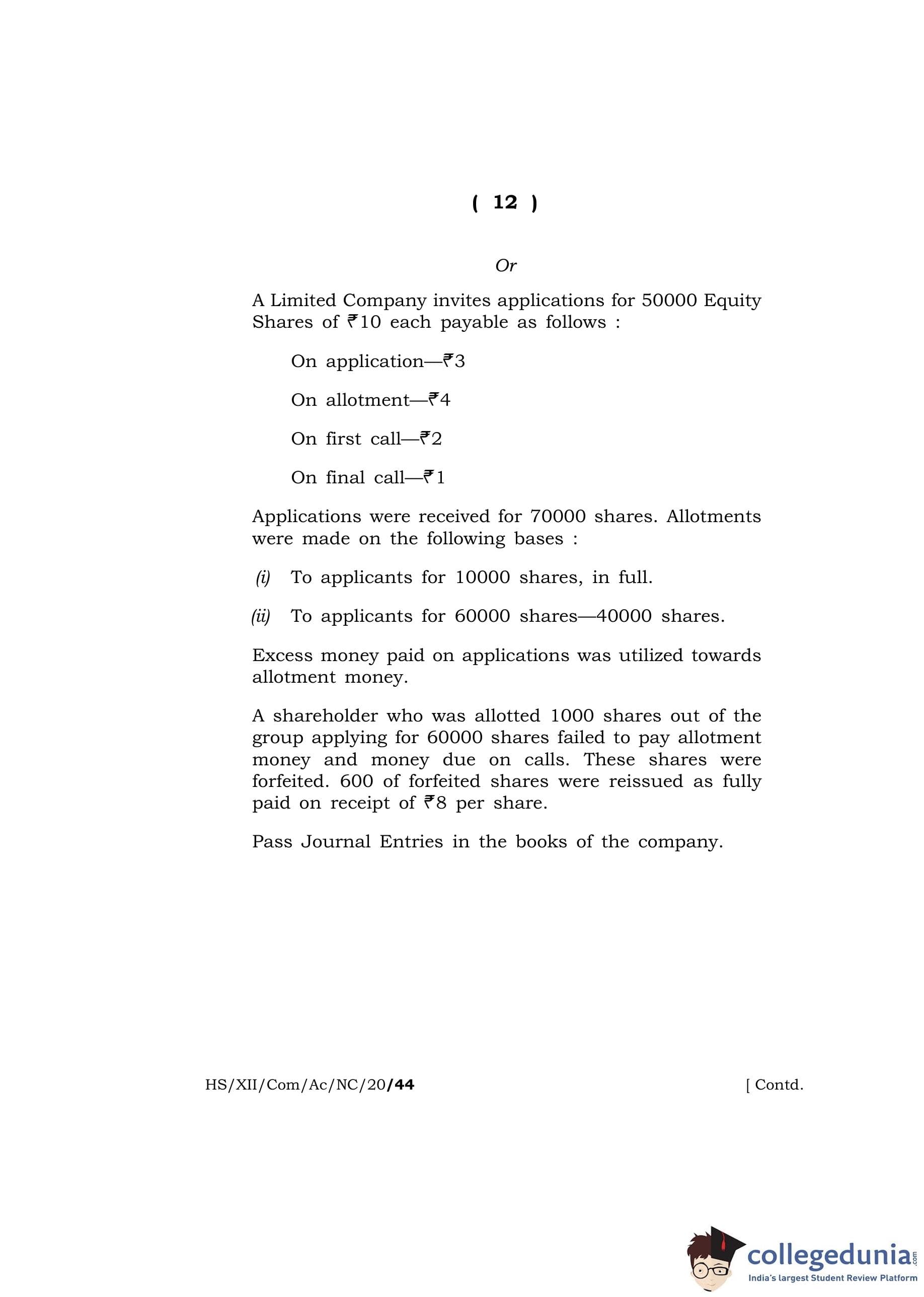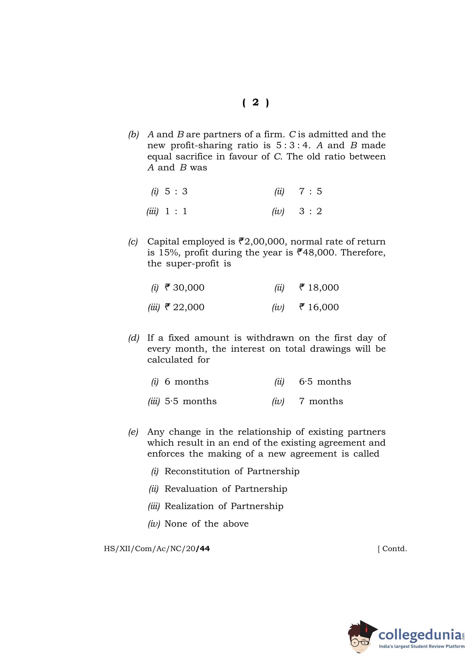 MBOSE Class 12 Accountancy Question Paper 2020