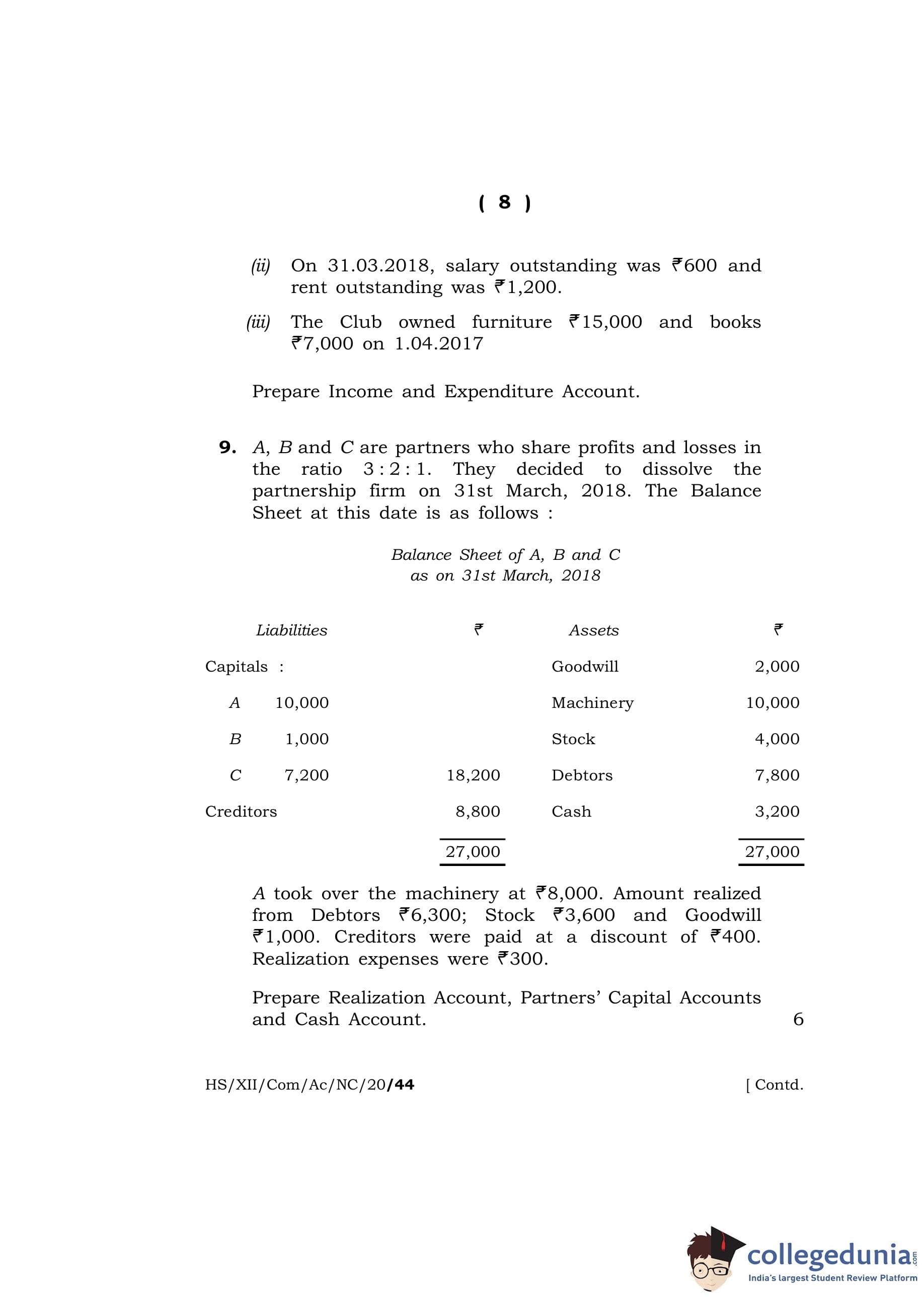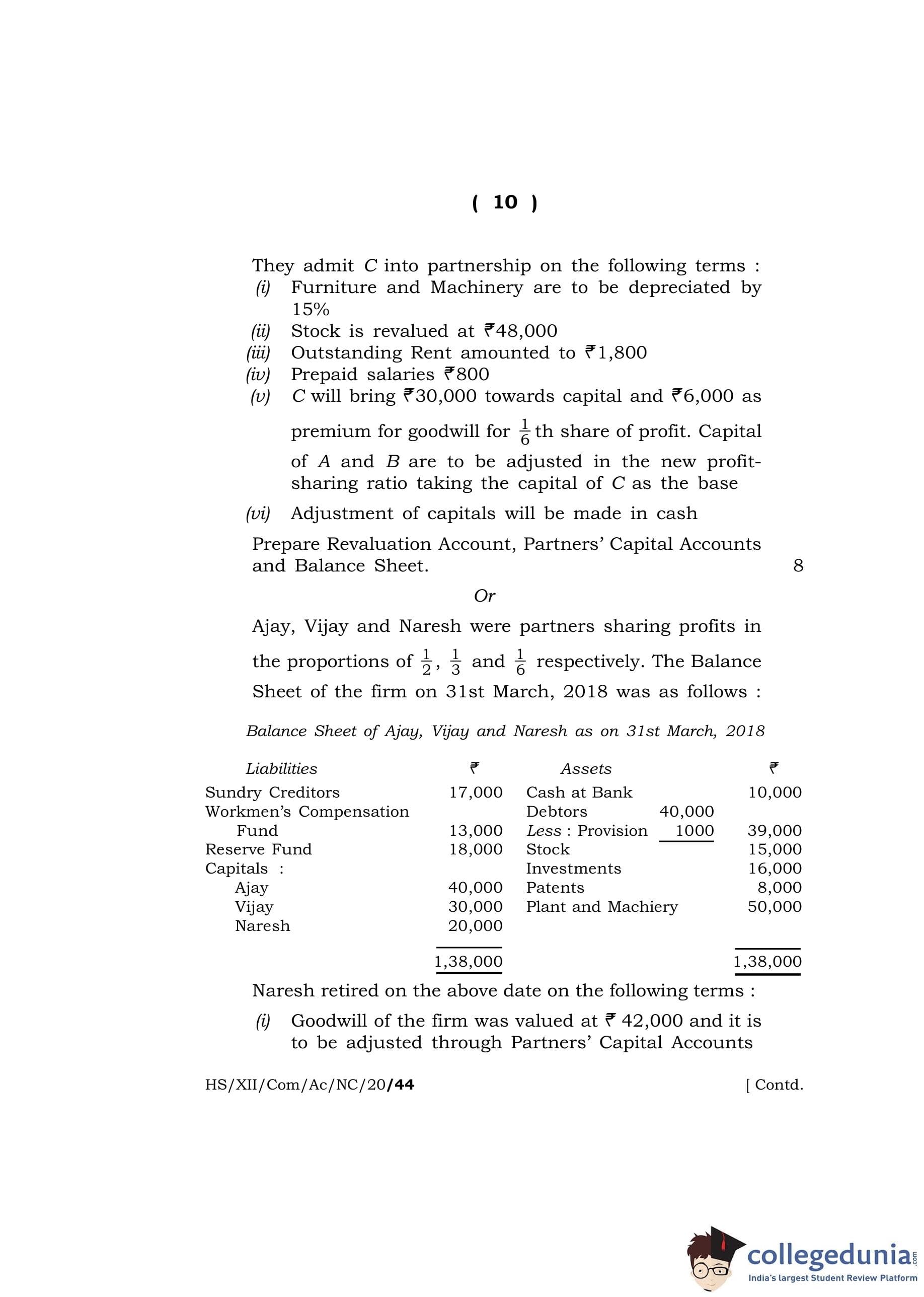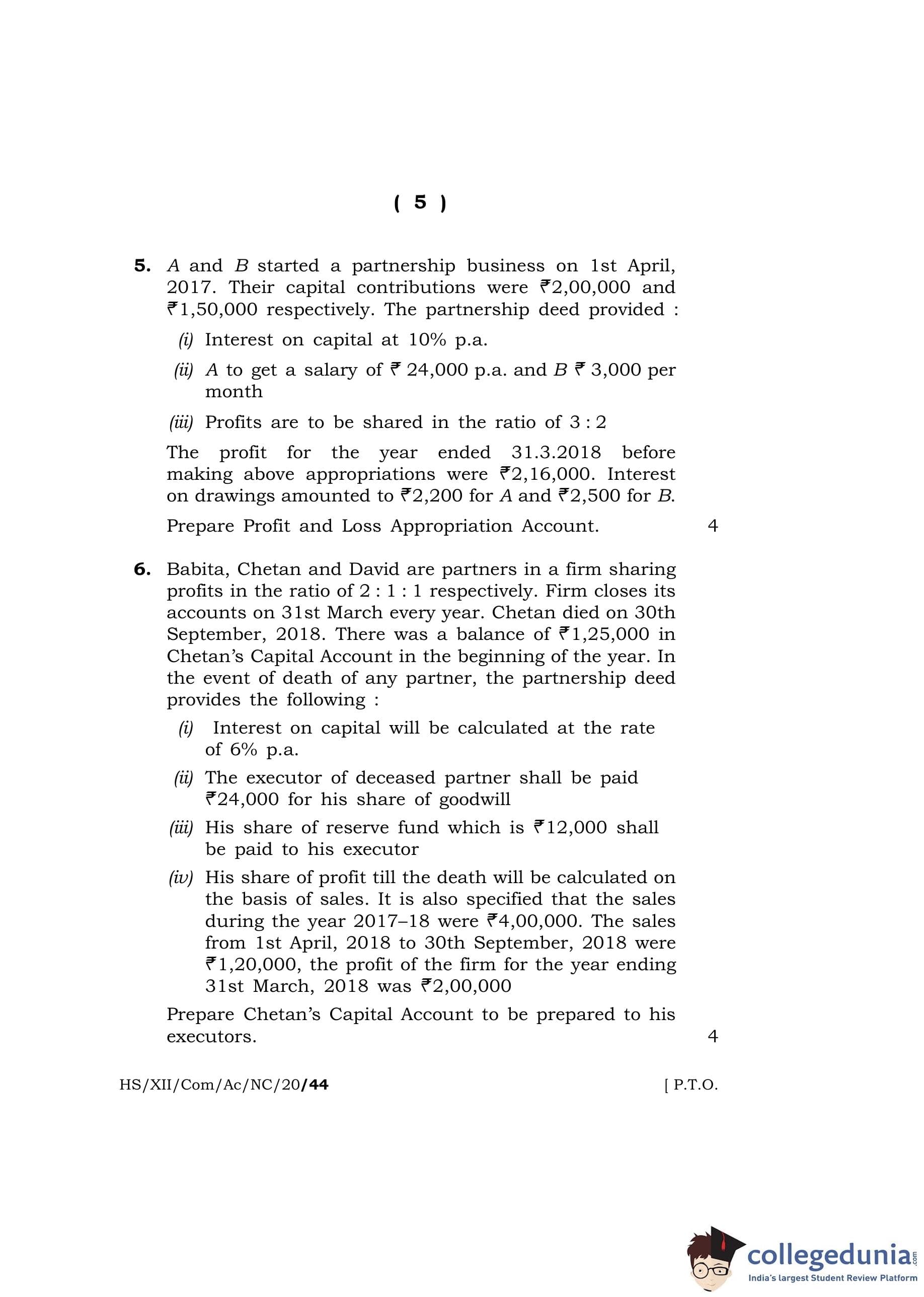 MBOSE Class 12 Accountancy Question Paper 2020