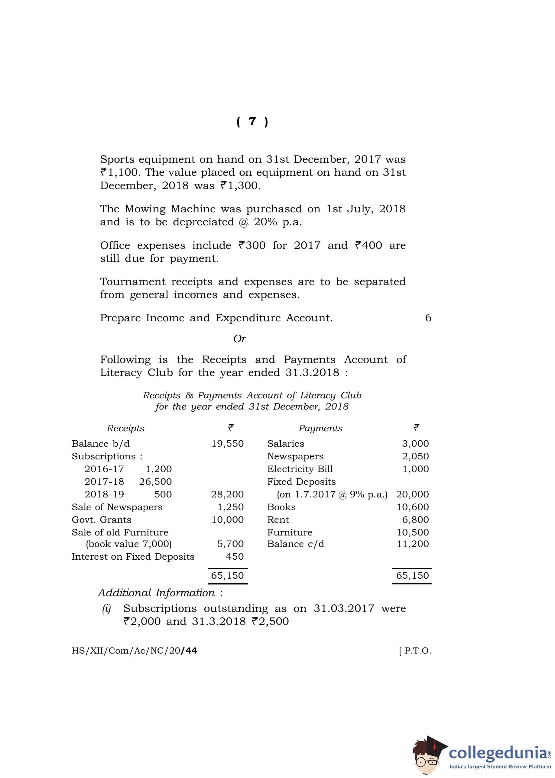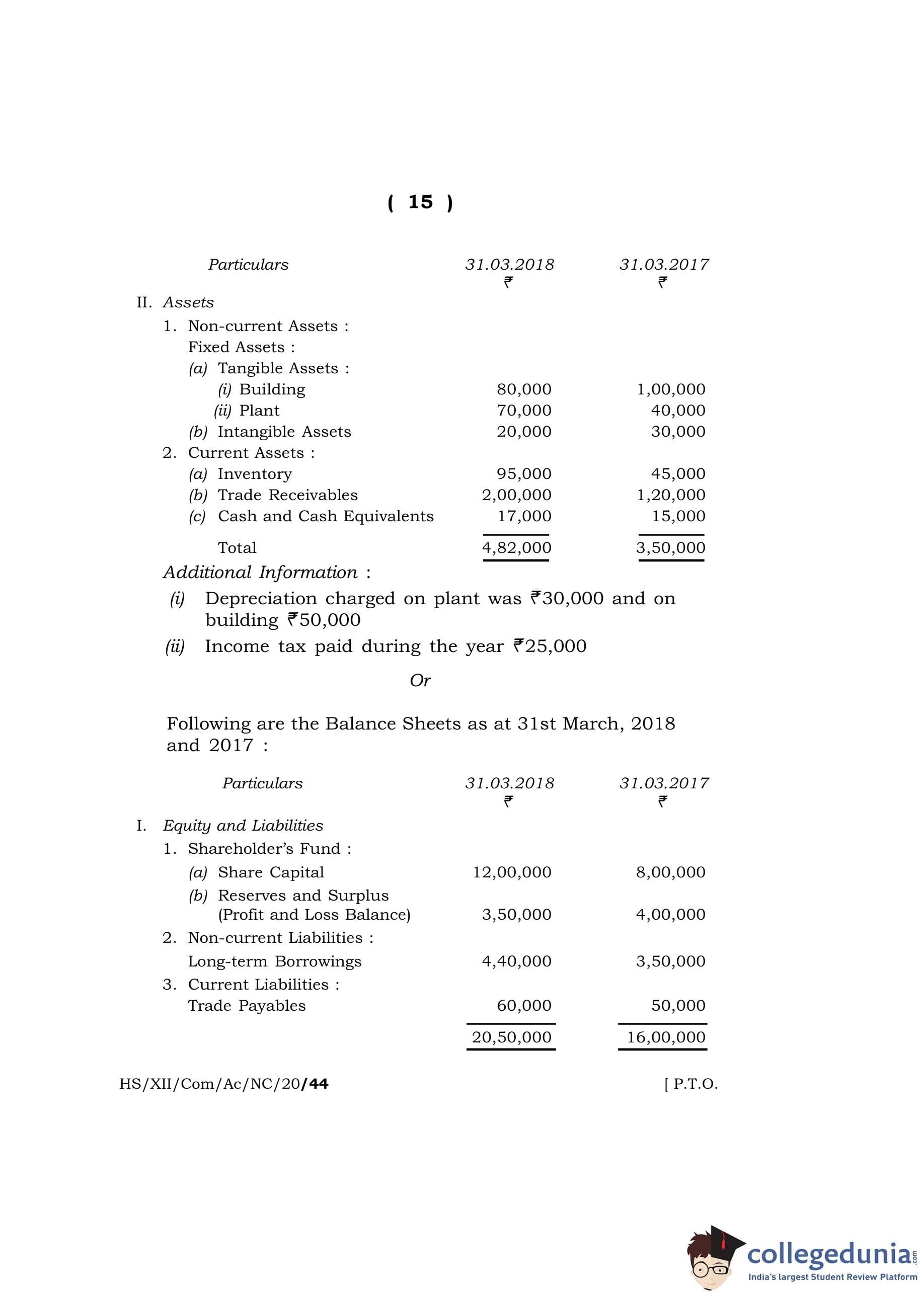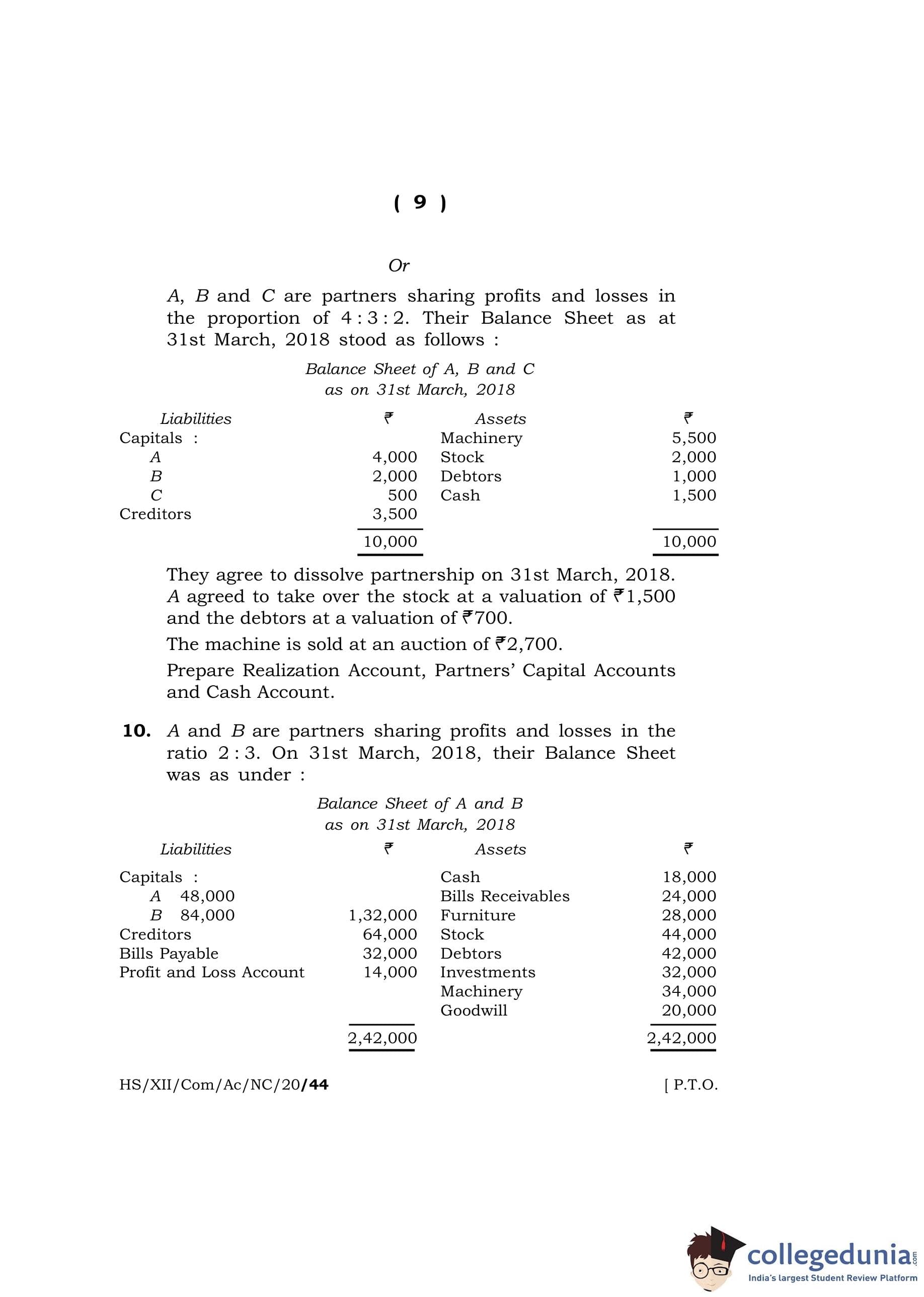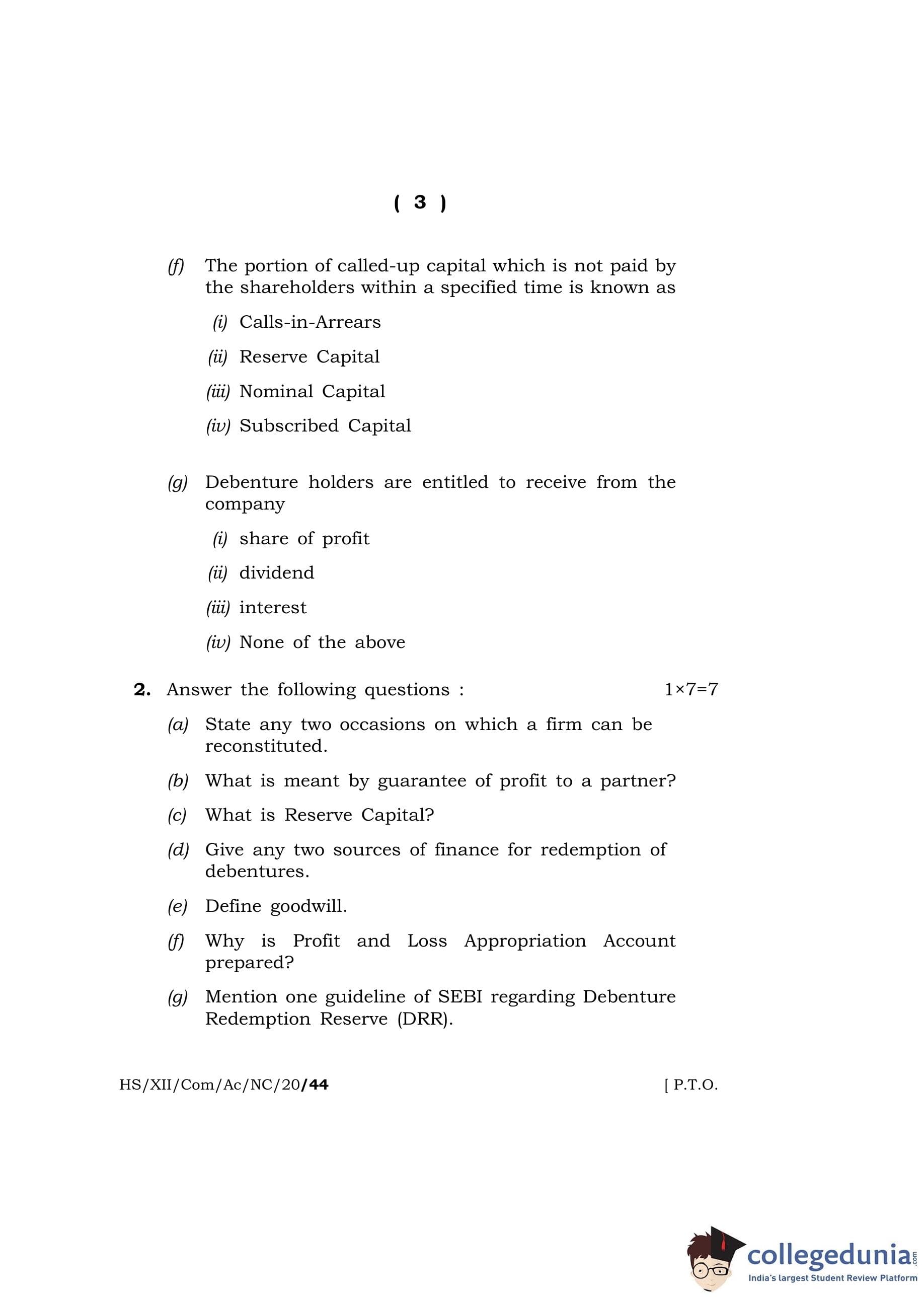 MBOSE Class 12 Accountancy Question Paper 2020