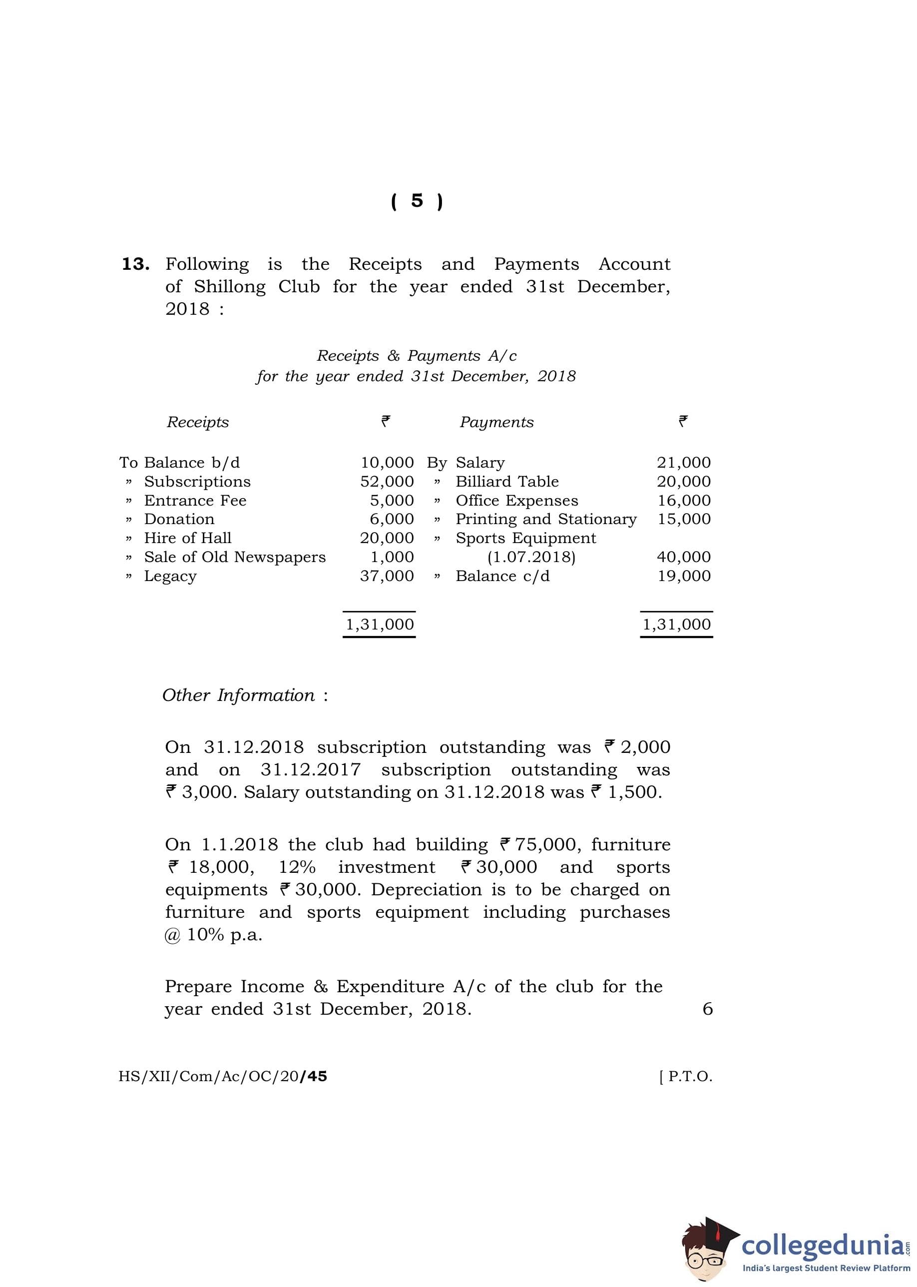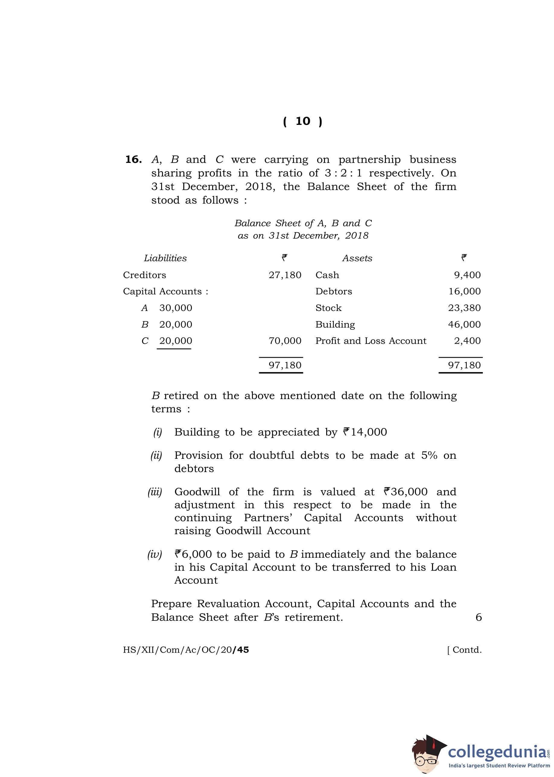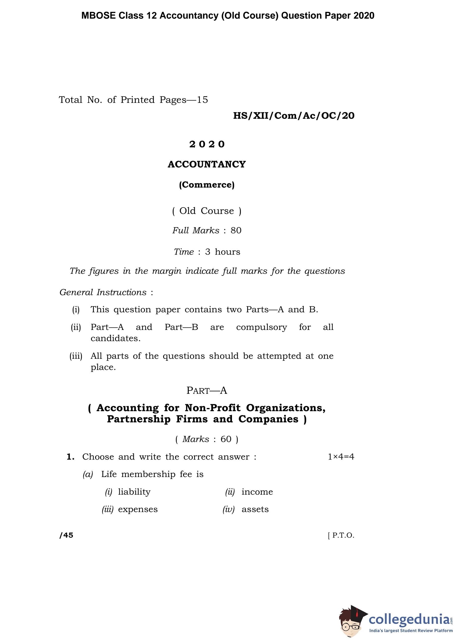 MBOSE Class 12 Accountancy (Old Course) Question Paper 2020 with Answer Key pdf is available for download here. The exam was conducted by Meghalaya Board of School Education on March 6, 2020 in the Morning Session 10 AM to 1 PM. The question paper comprised a total of 22 questions divided among 2 sections.